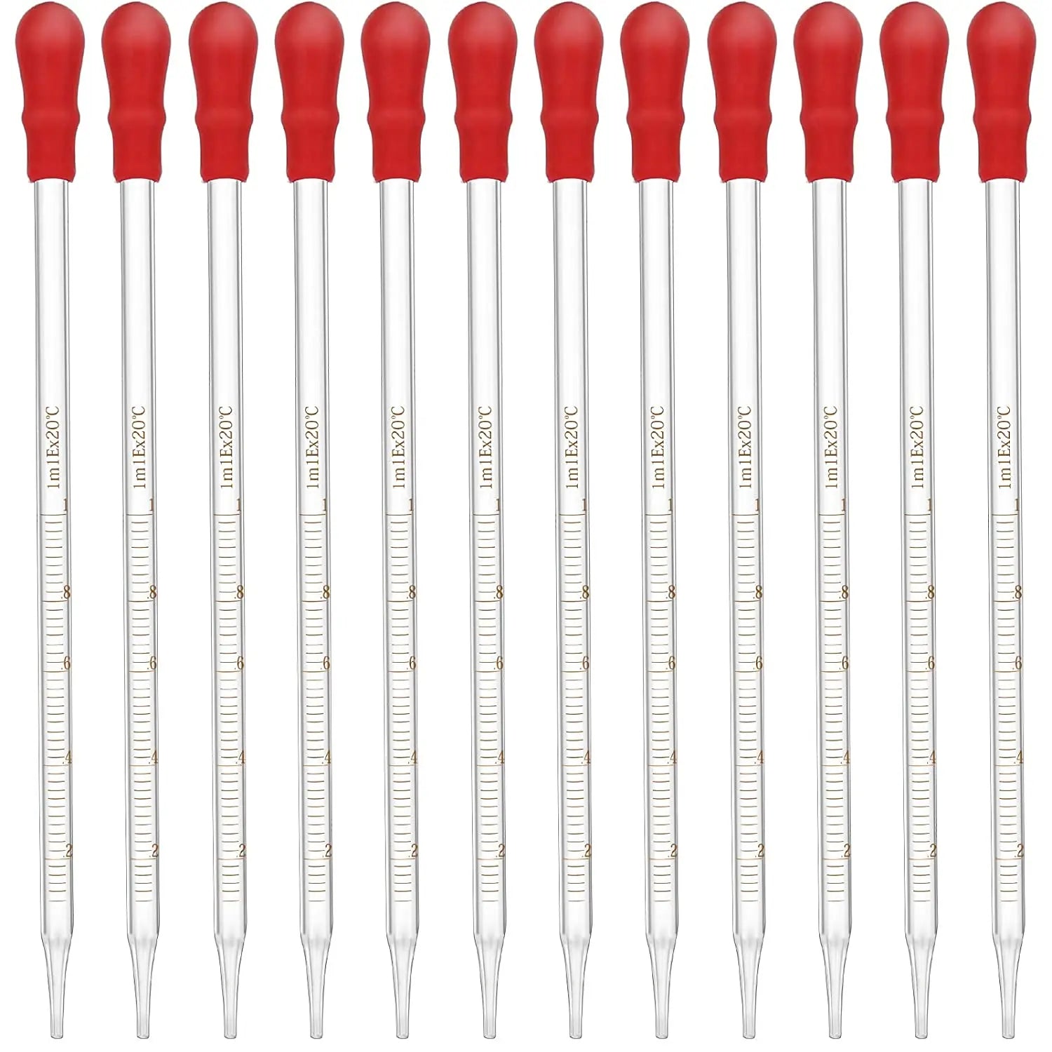 0.5ml 1ml 2ml 3ml Glass Graduated Scale Dropper Pipette Lab Transfer Pipettes Red Rubber Head Chemistry Pipette