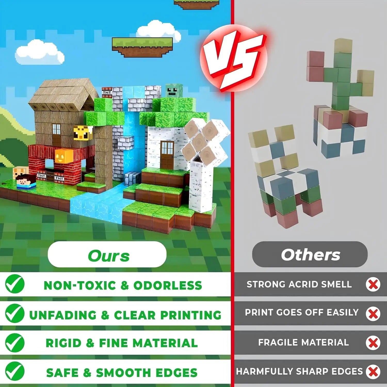 【Build, Play, Learn】Every set of our magnetic blocks and magnetic cubes is an adventure waiting to happen.   Perfect for kids' toys,these magnetic toys make construction fun and easy.   Parents and teachers alike will love the educational value, as children learn through play, it helps to promote kids’creative thinking, concentration and patience, hand-eye coordination motor skills, cooperative skills, spatial and motor skills!