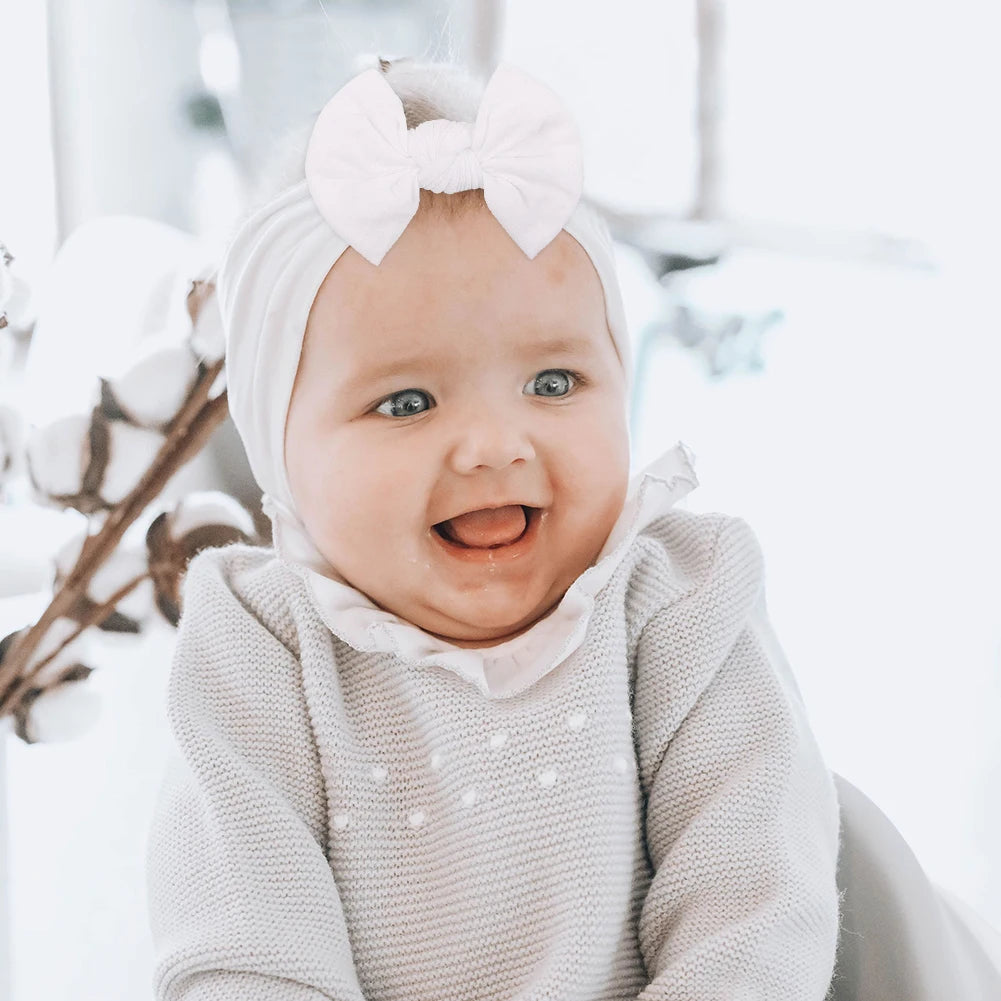 12Pcs Spring Solid Color Baby Headbands Soft Nylon Bowknot Casual Hair Accessories 3.5inch Bowties Protect Headdress for Kids