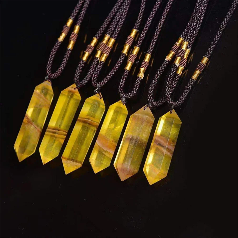 1Pc Natural Amethyst Citrine Malachite Pink Crystal Pendant Double Pointed Hexagonal Necklace Gemstone Reiki Healing Crystals