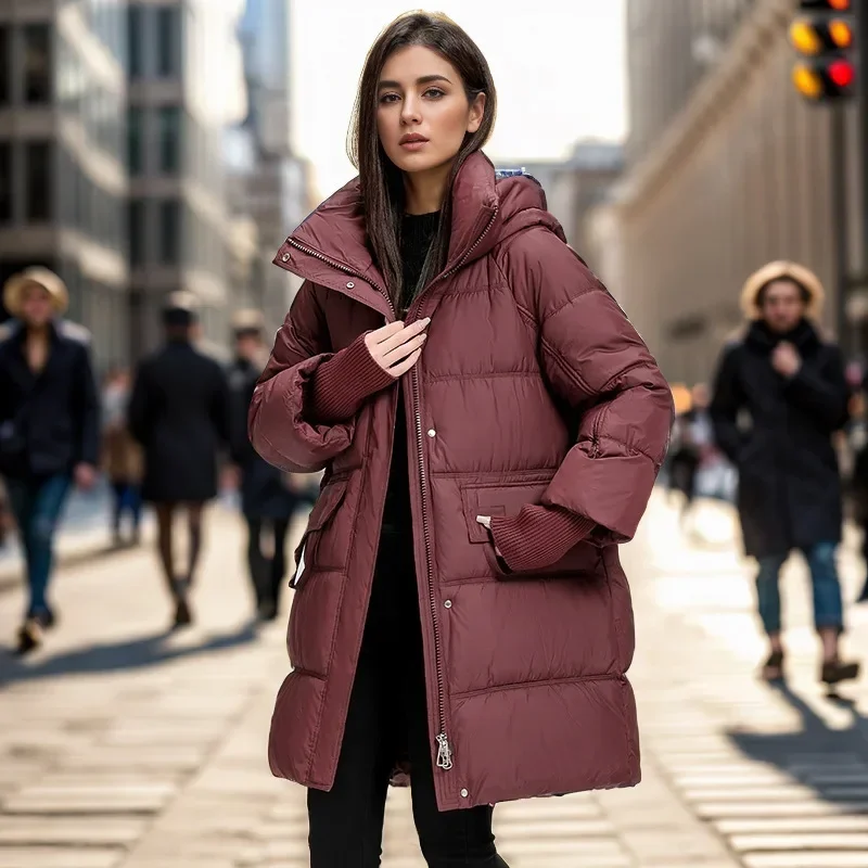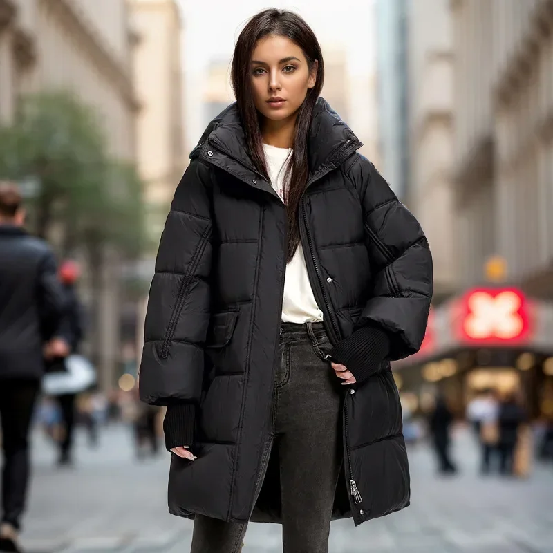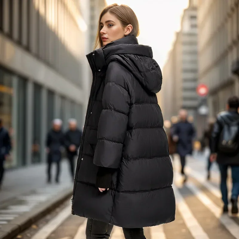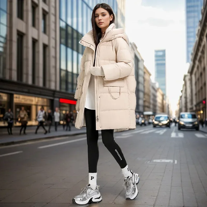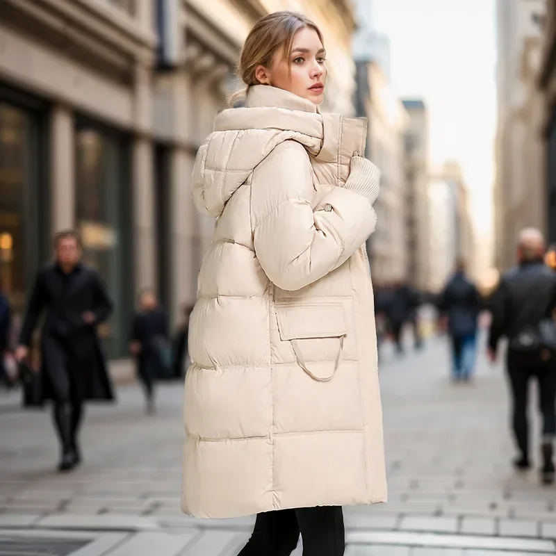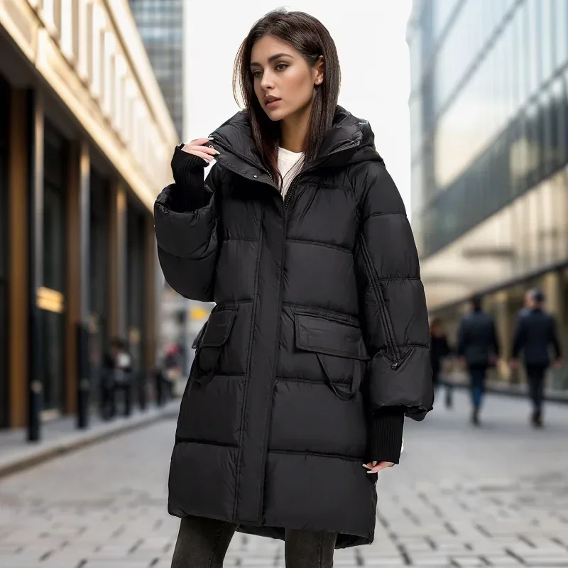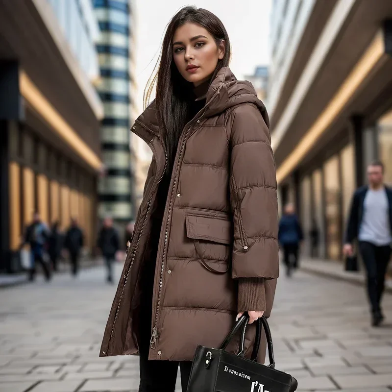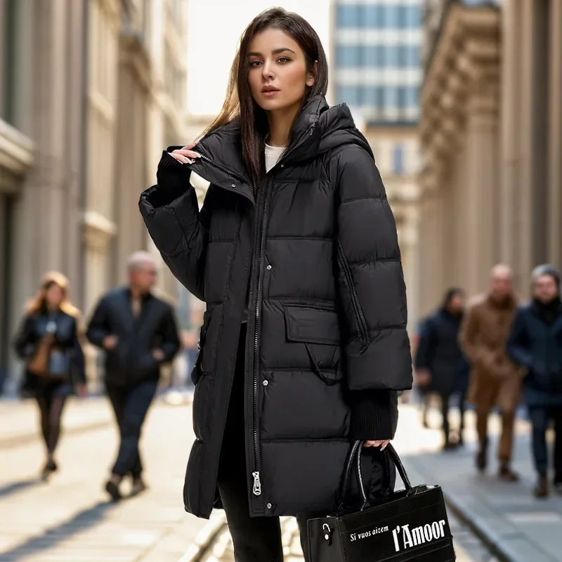 2024 Winter Long Women's Down Cotton Jacket Female Stand Collar Hooded Parkas Pockets Coats Women Knee Length Thick Warm Jacket