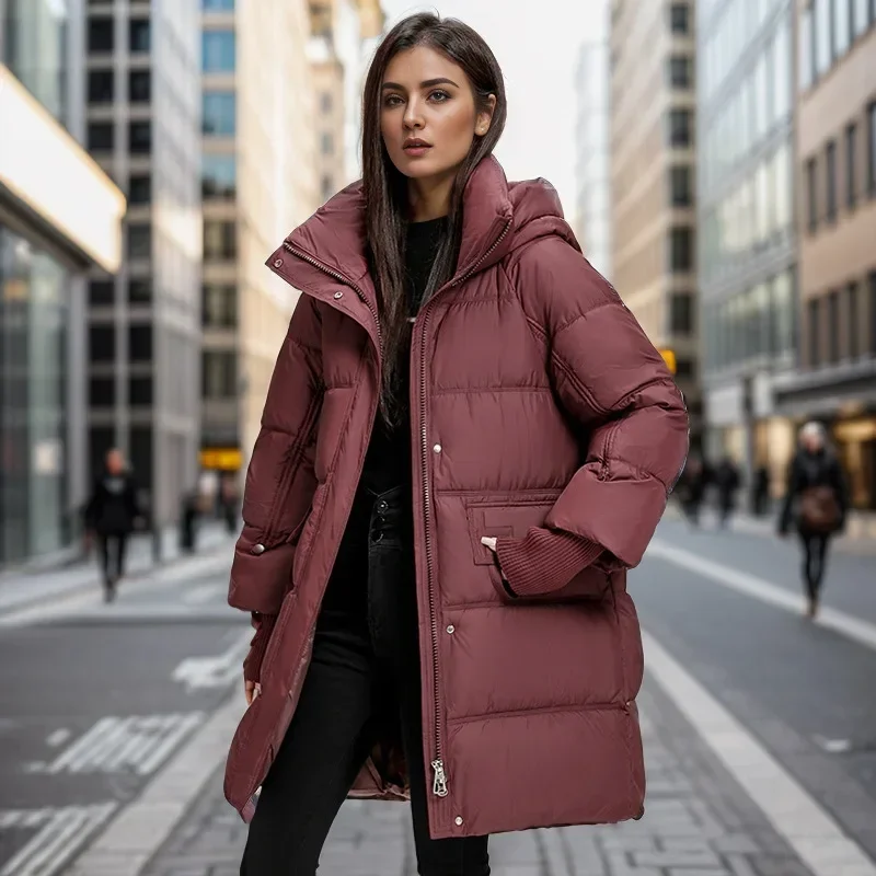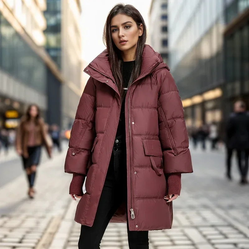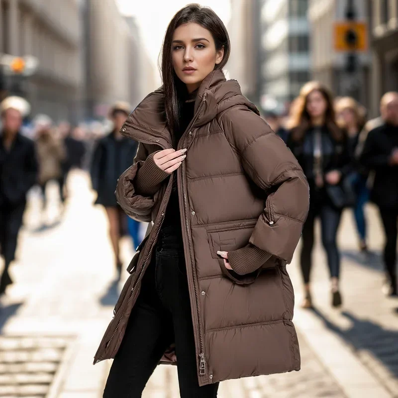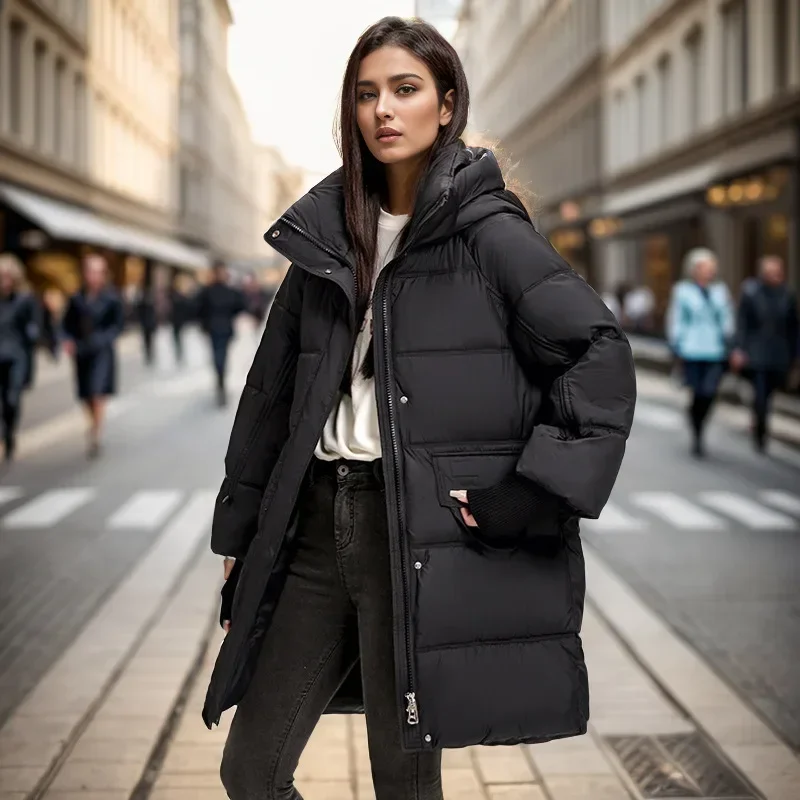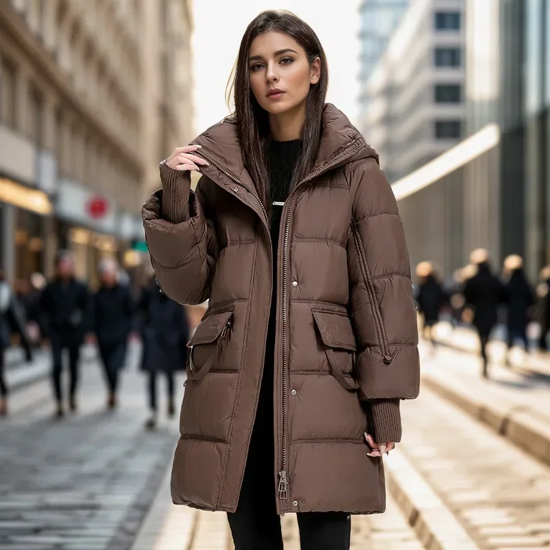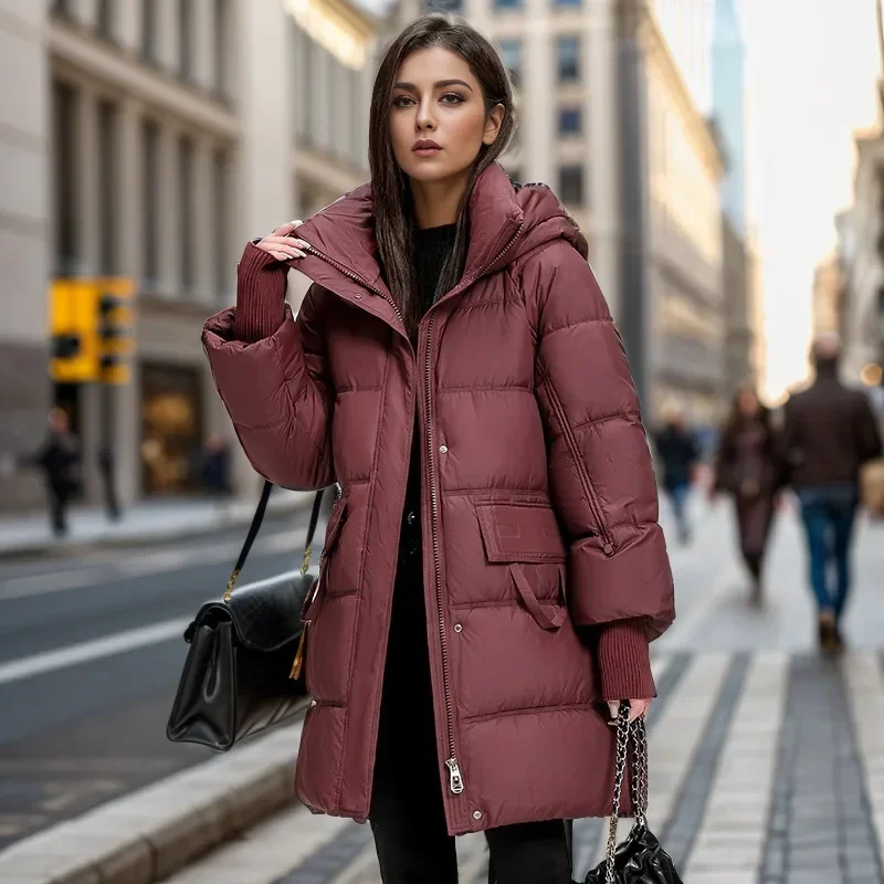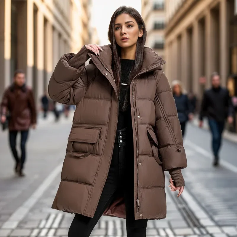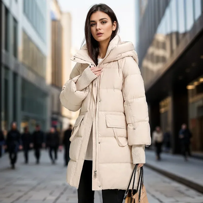 2024 Winter Long Women's Down Cotton Jacket Female Stand Collar Hooded Parkas Pockets Coats Women Knee Length Thick Warm Jacket