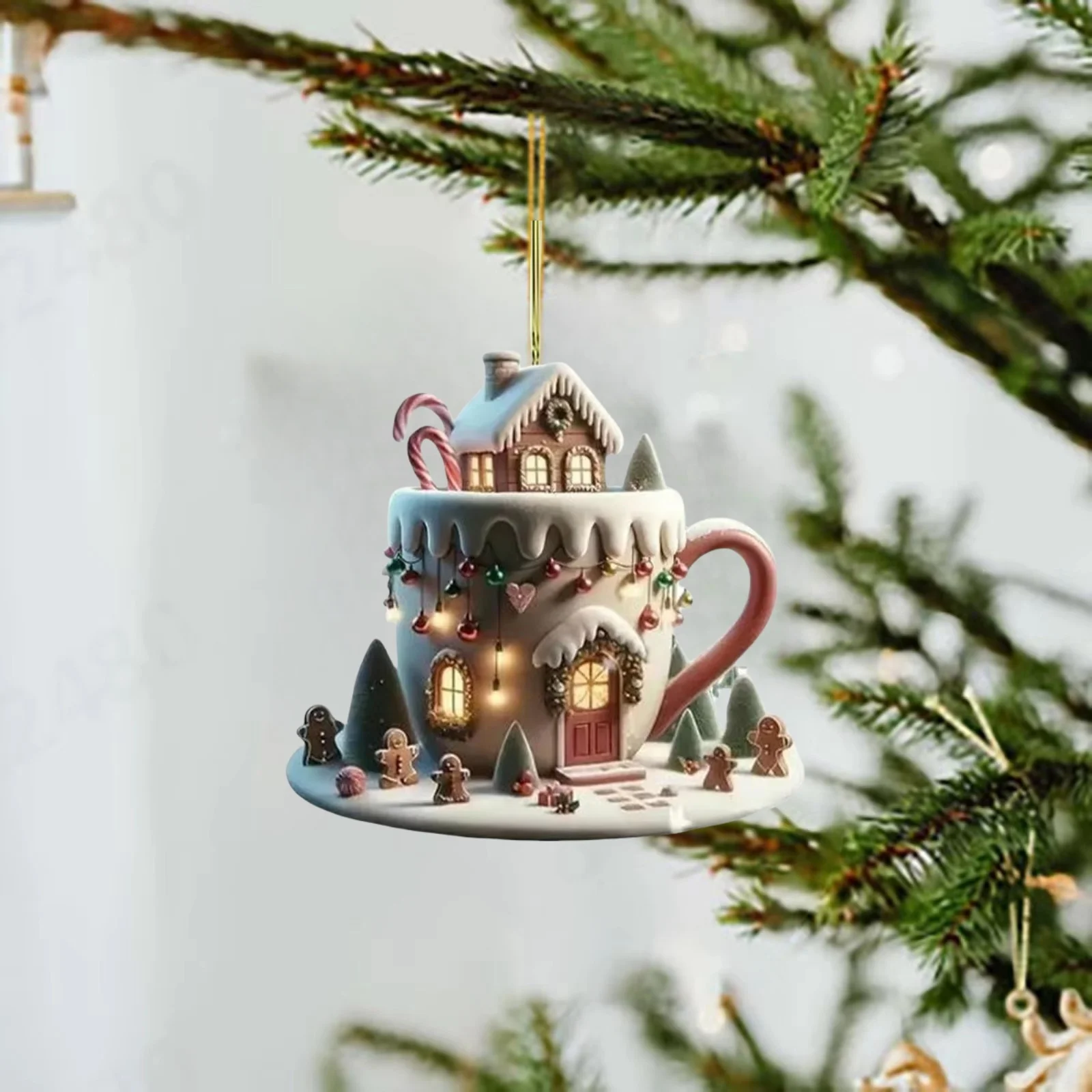 Add a unique touch to your holiday decor with bright and creative Coffee Christmas Tree Ornament! Featuring a coffee cup and snow house design, it combines style and practicality for long-lasting use. Perfect for store window decoration and adding a festive landscape to your home.