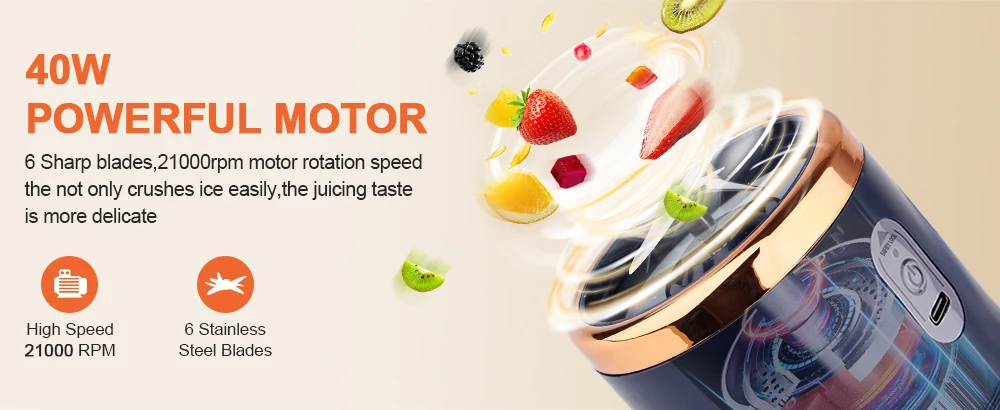 A: With a 40W motor and 21,000 RPM, it easily blends soft fruits (e.g., bananas, berries). For hard ingredients (e.g., ice,