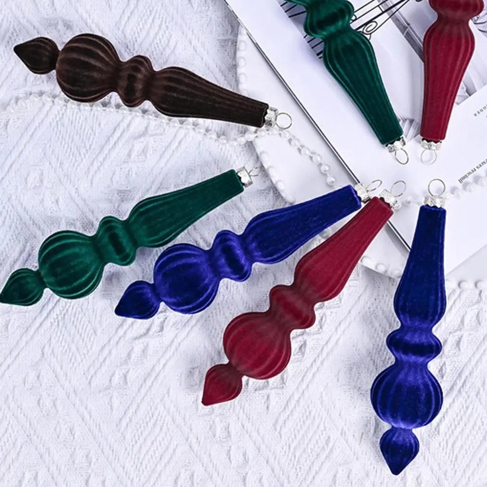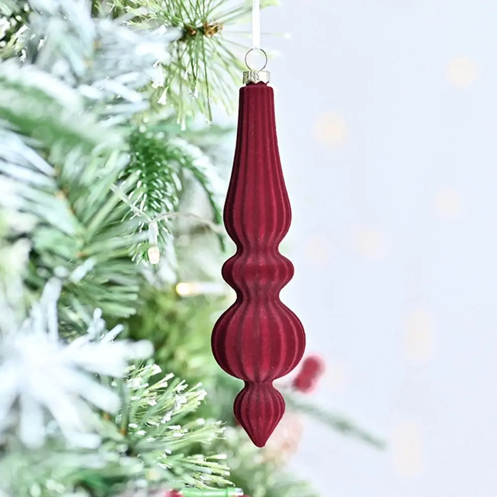 6pcs Flocked Velvet Christmas Gourd Pendant Plastic Shatterproof Christmas Cone Ball Set Reusable Xmas Tree Hanging Ornaments