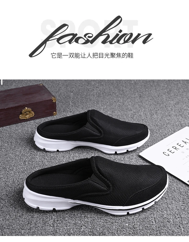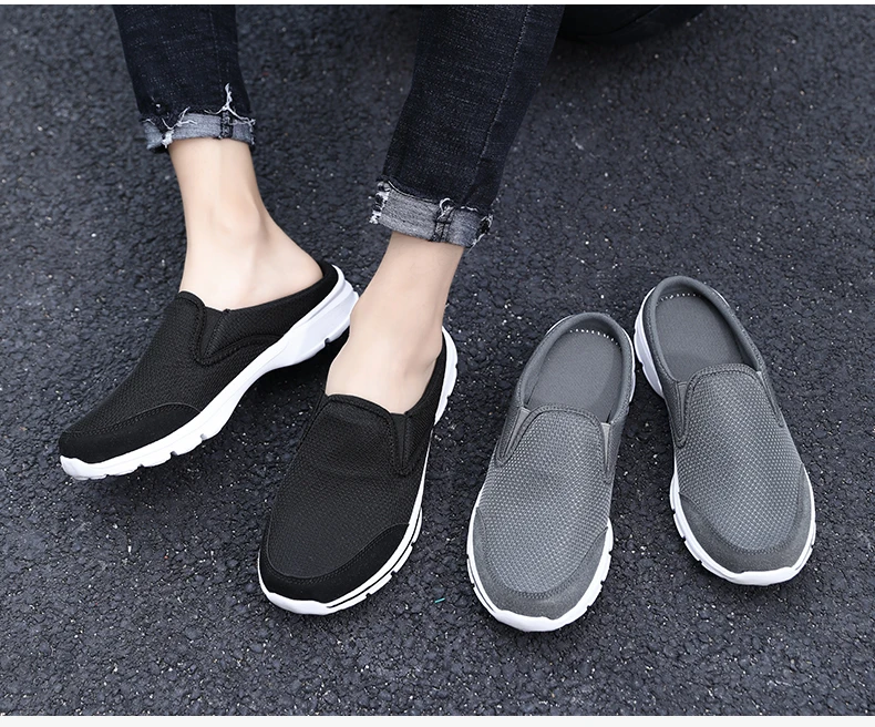 Big Size Men Casual Mules Super Light Mesh Slippers Closed Toe Half Slipper Breathable Male Flats Shoes Outdoor Slip-on Footwear