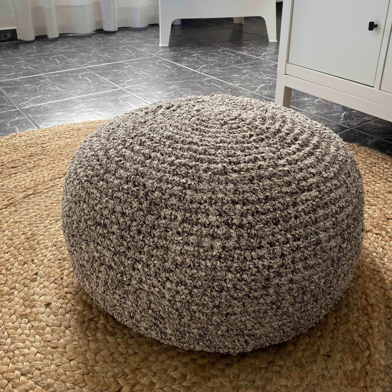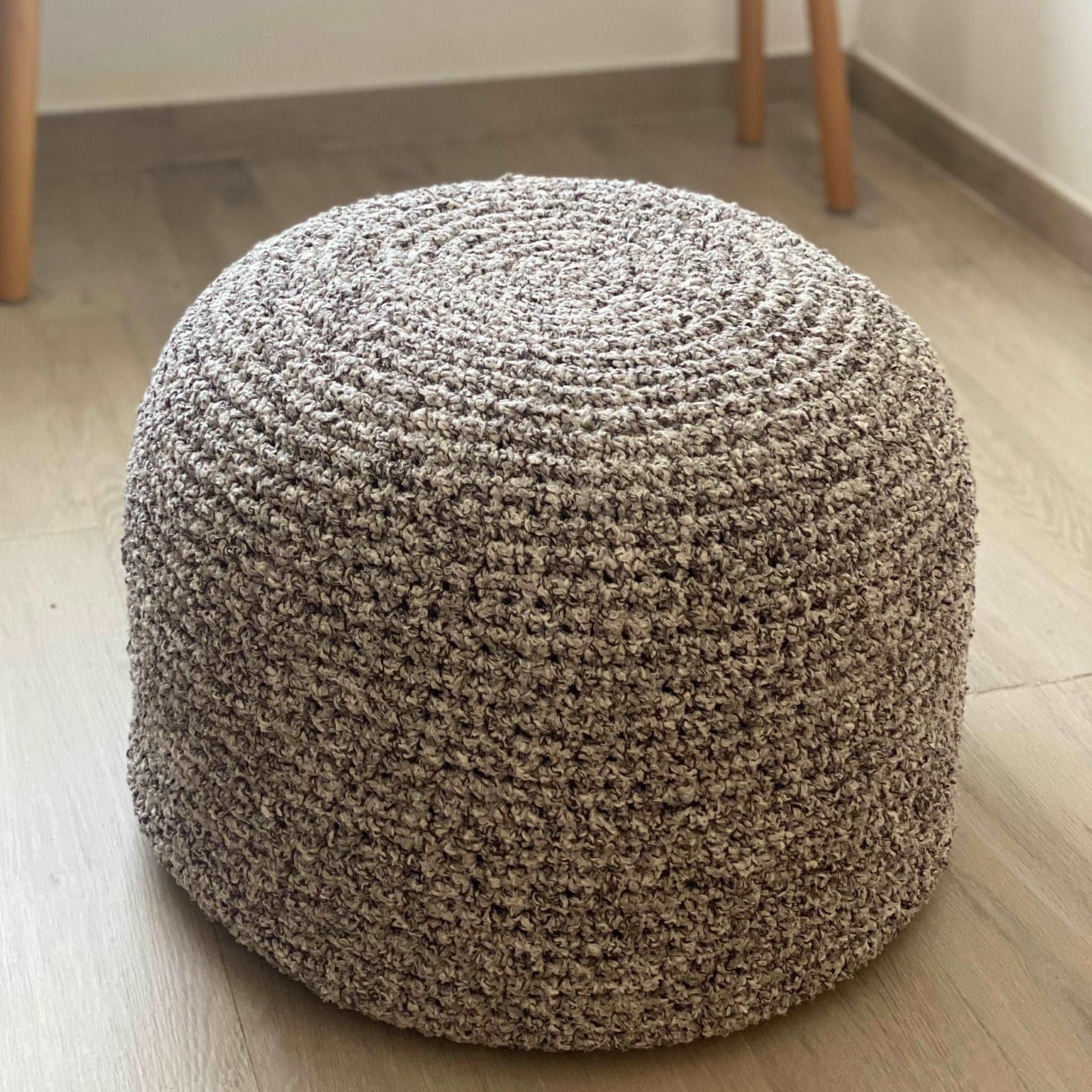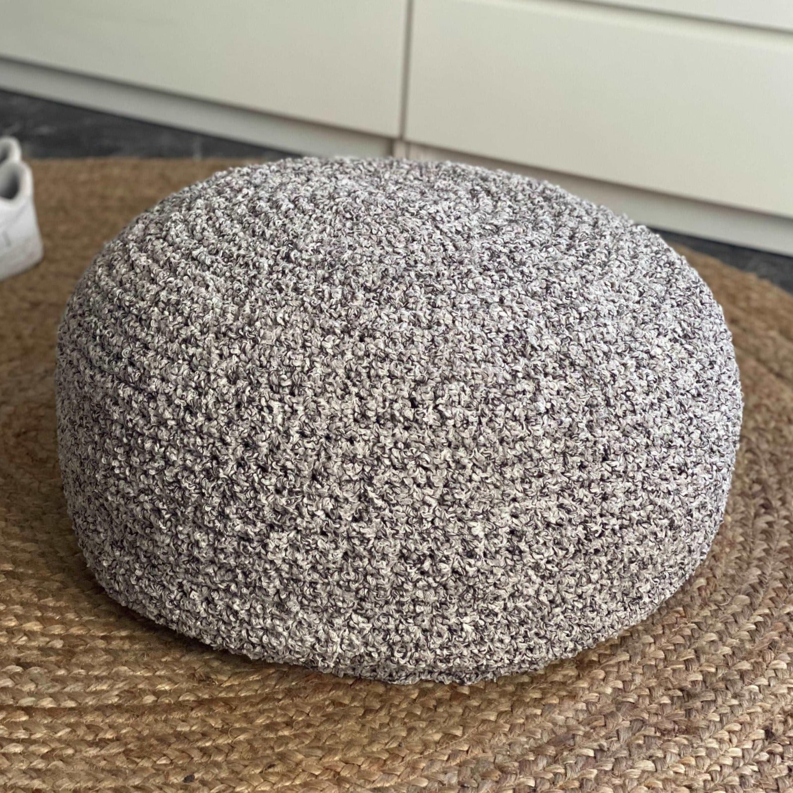 Handmade from a thick blended boucle cotton yarn for a beautiful chunky and textured look, this round pouf is also extra soft, durable e machine washable for your convenience.