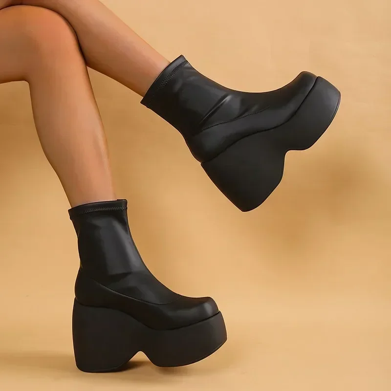 Brand New Gothic Style Sexy Elegant Chunky Platform Women Ankle Boots Big Size 43 Walking Comfy Woman Shoes Platform Shoes