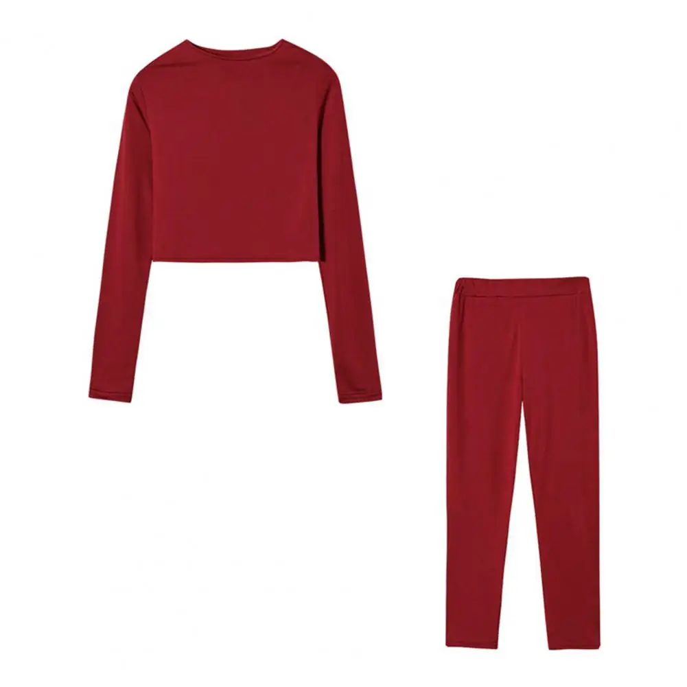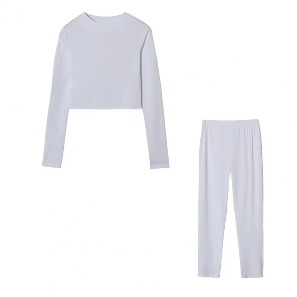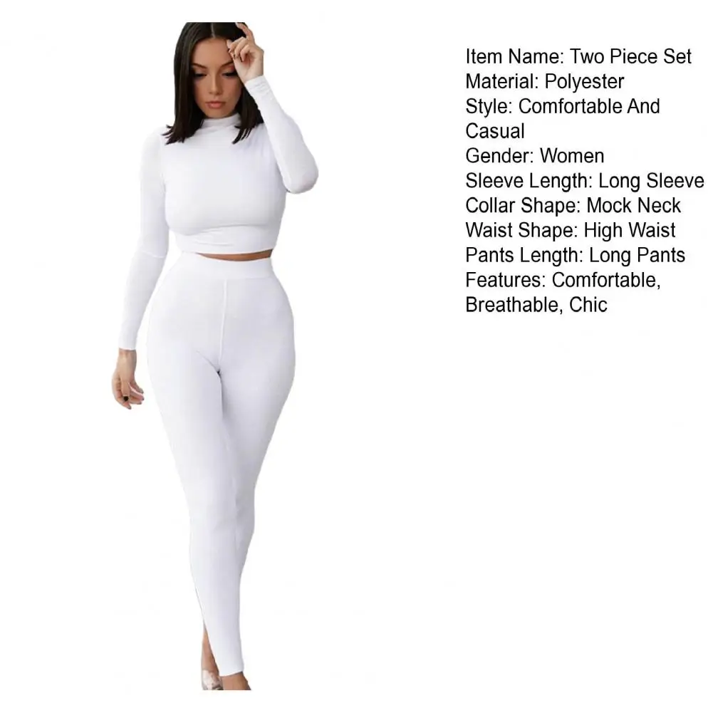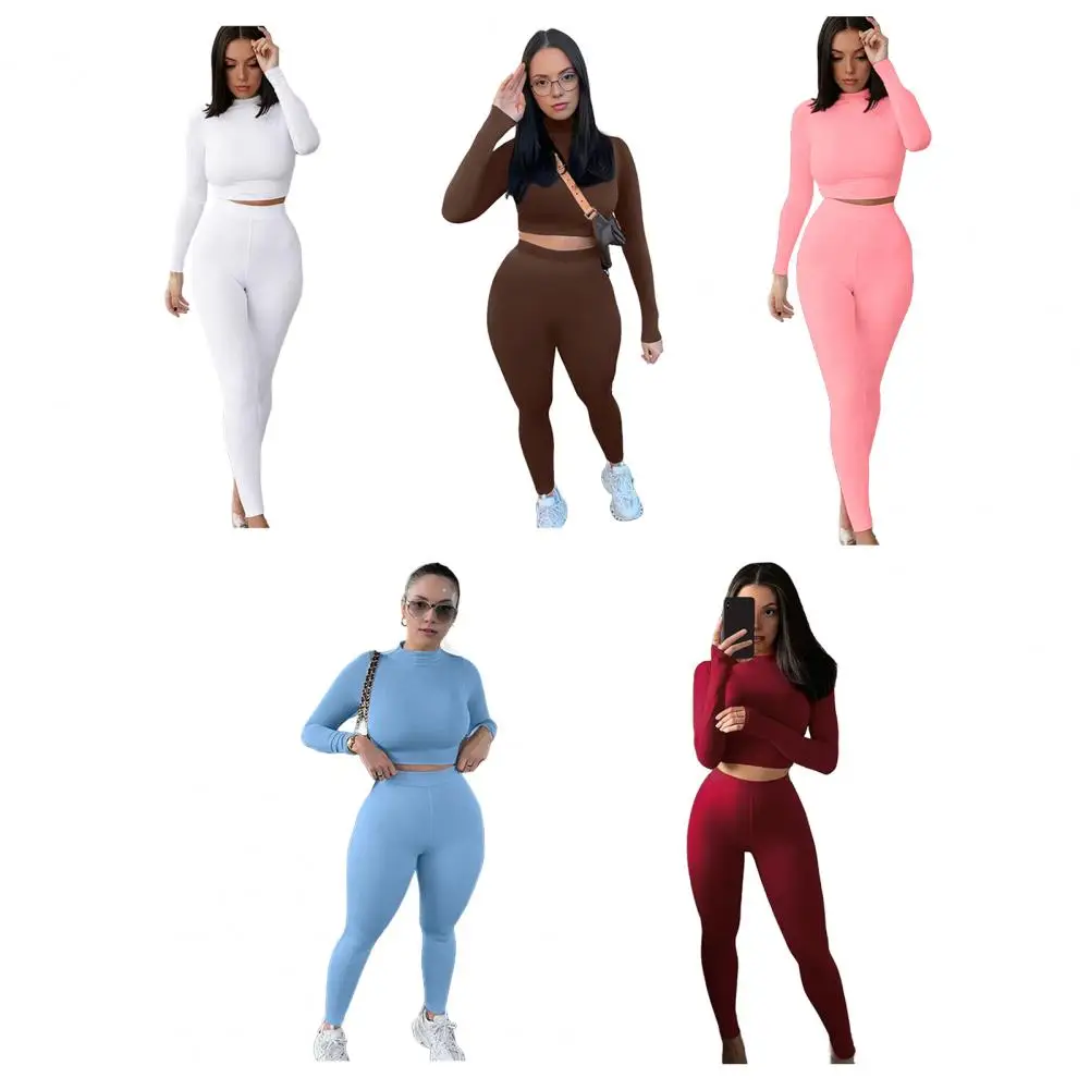 Casual Workout Two Piece Outfits for Women Long Sleeve Crop Top High Waisted Legging Pants Set Slim Jogger Track Suits
