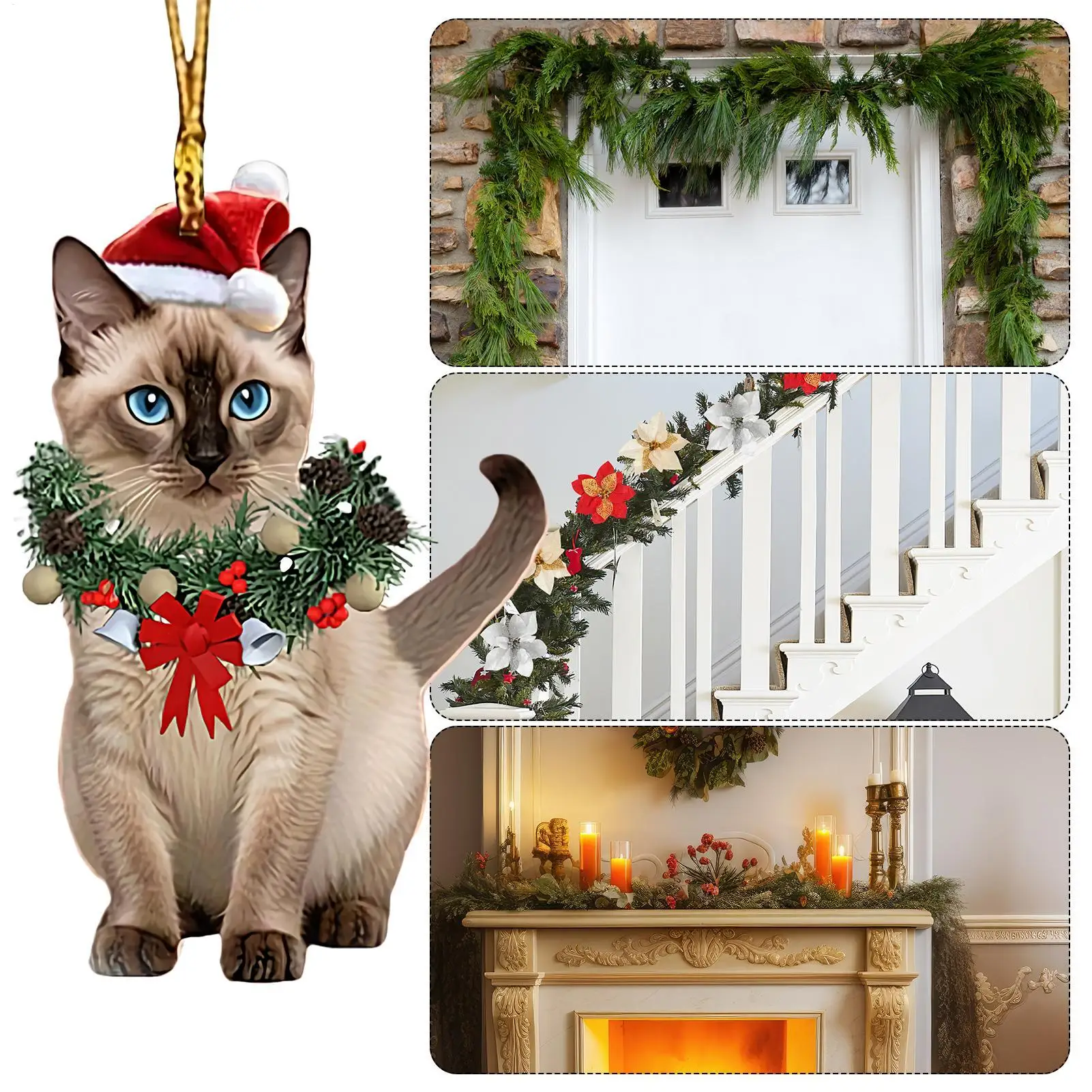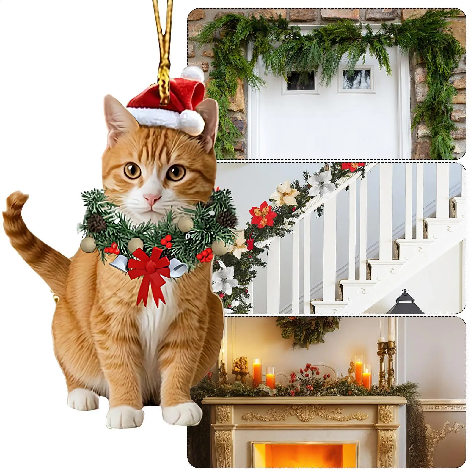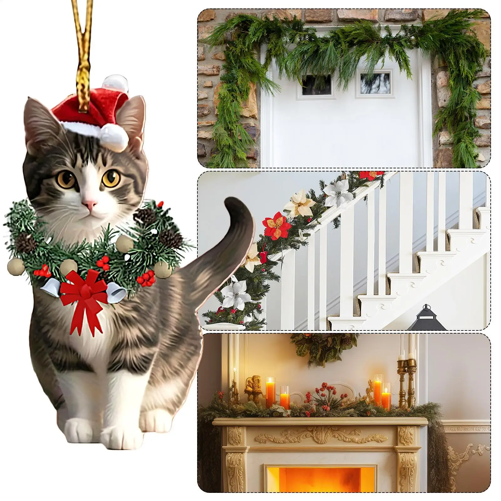 Cat Ornaments for Christmas Tree 2D Acrylic Pendant Cute Christmas Animal Ornaments for Home Fireplace Garden Workplace