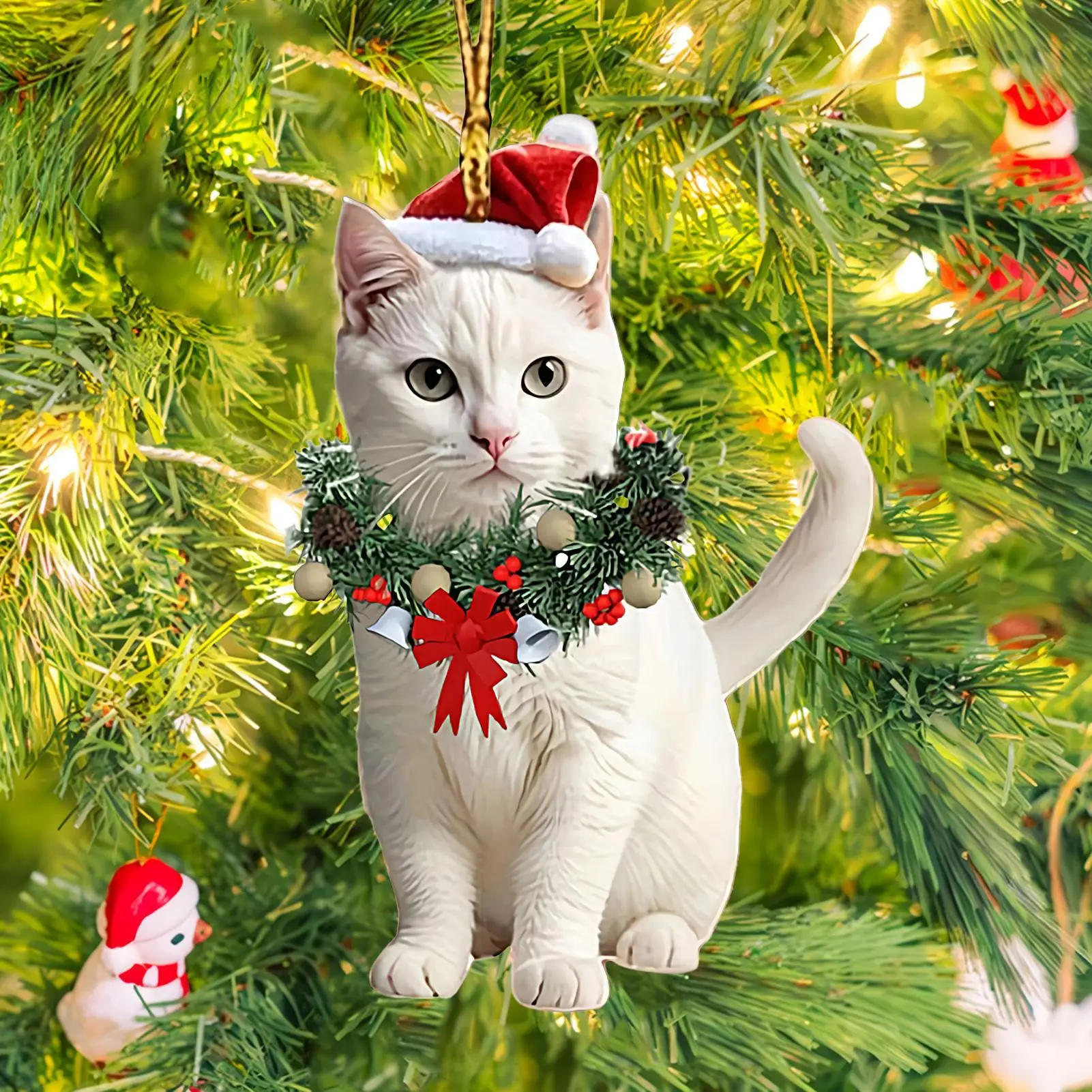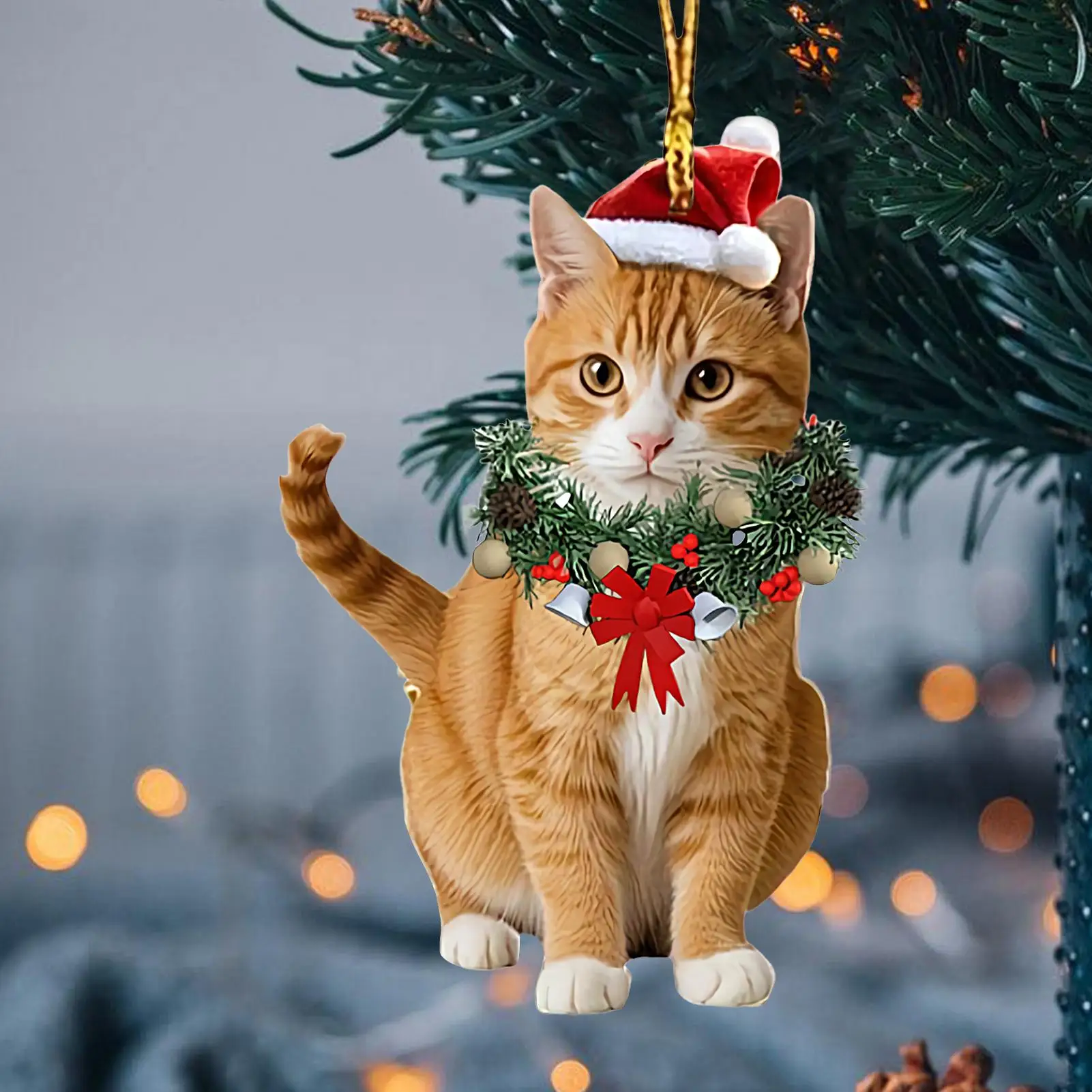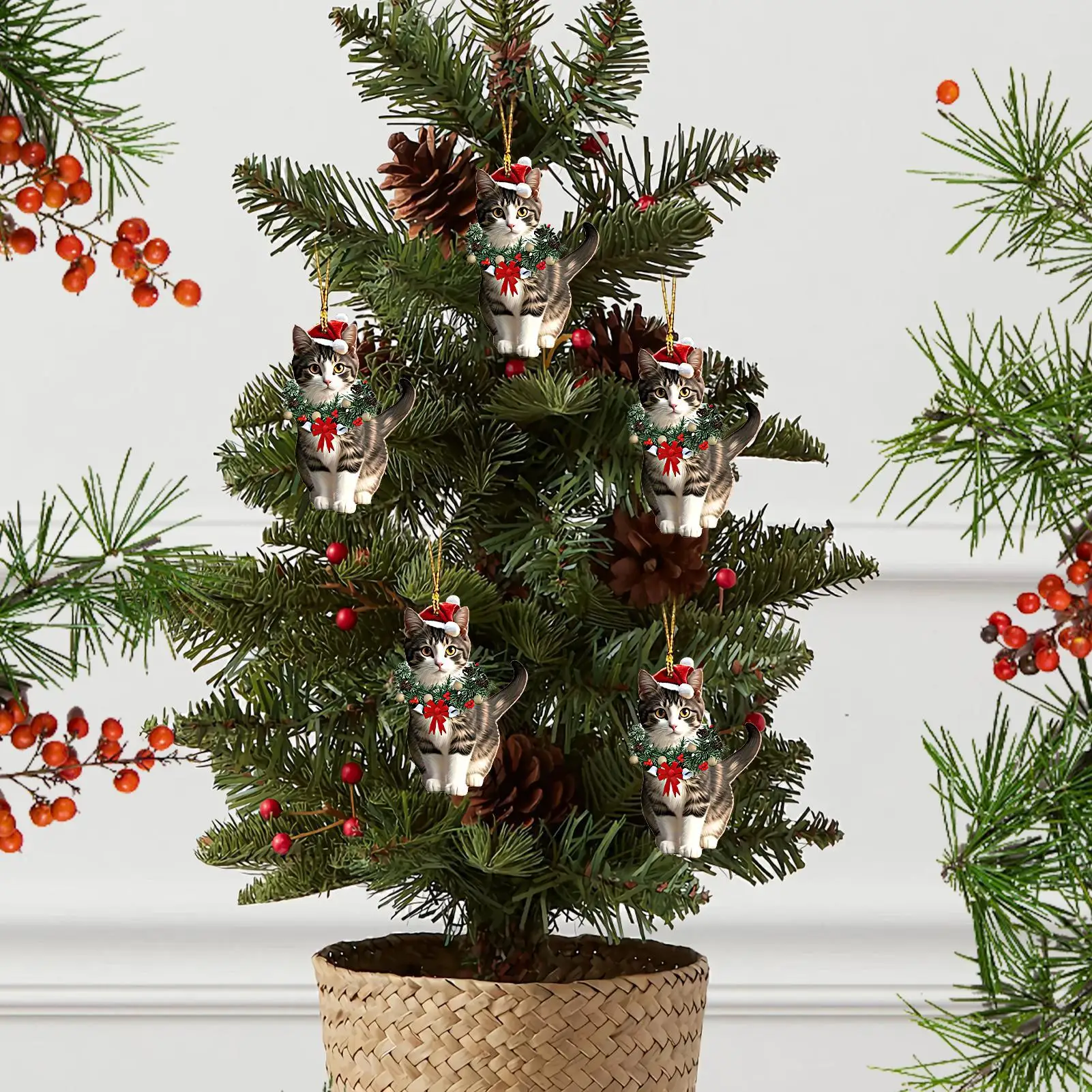 Cat Ornaments for Christmas Tree 2D Acrylic Pendant Cute Christmas Animal Ornaments for Home Fireplace Garden Workplace