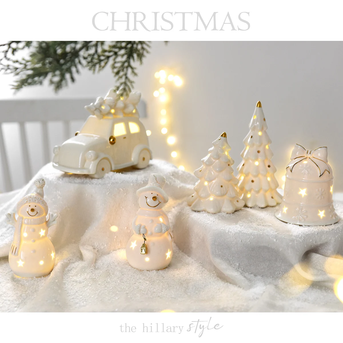 Christmas ceramic glowing Christmas tree snowman decorative ornaments Christmas home decoration Thanksgiving Christmas gift