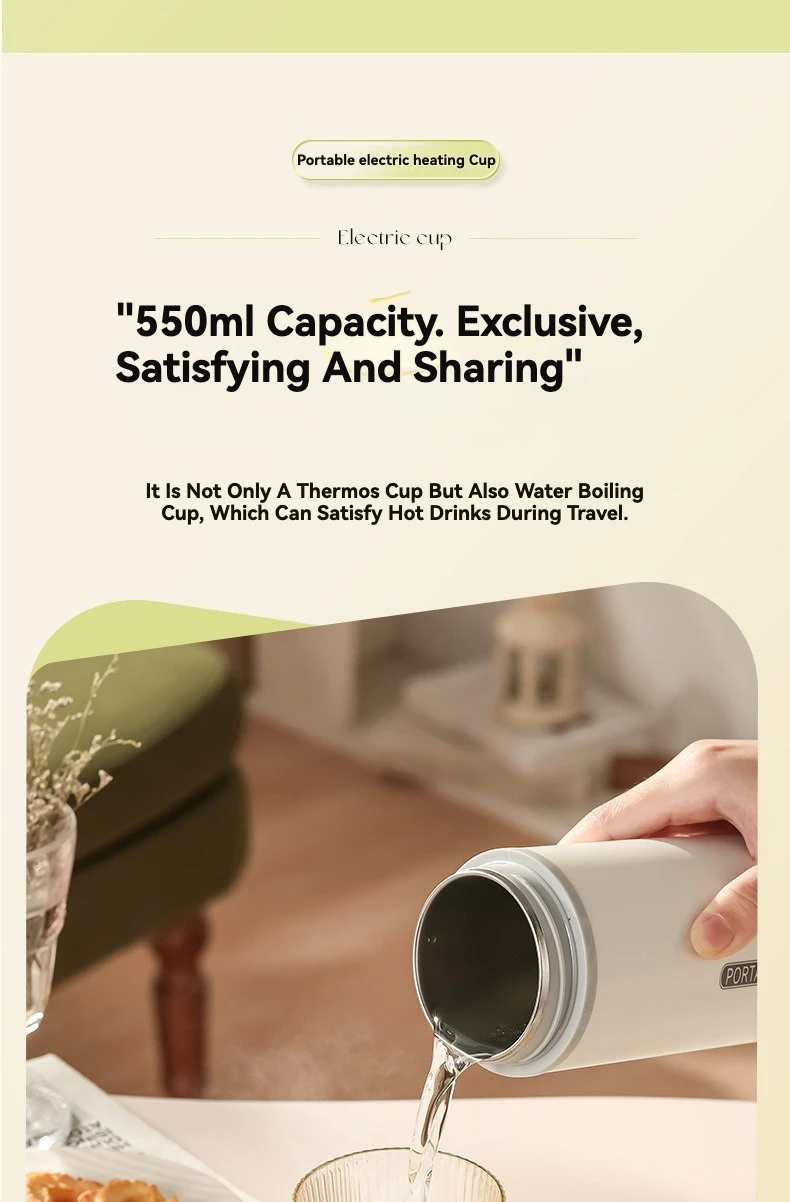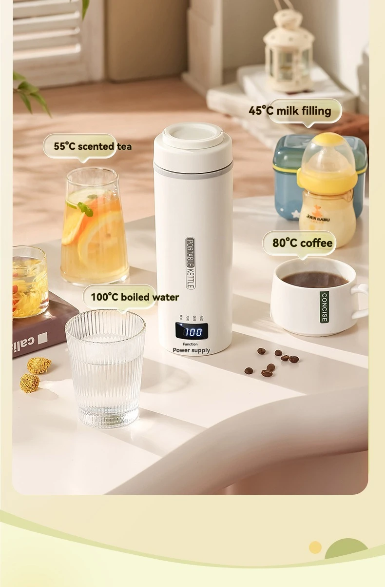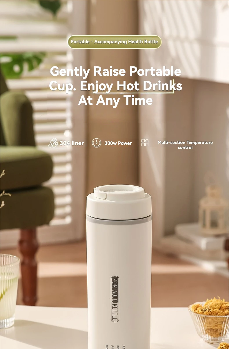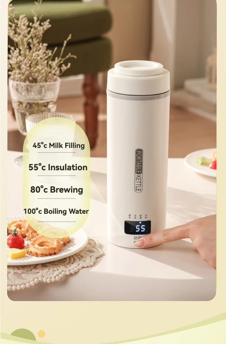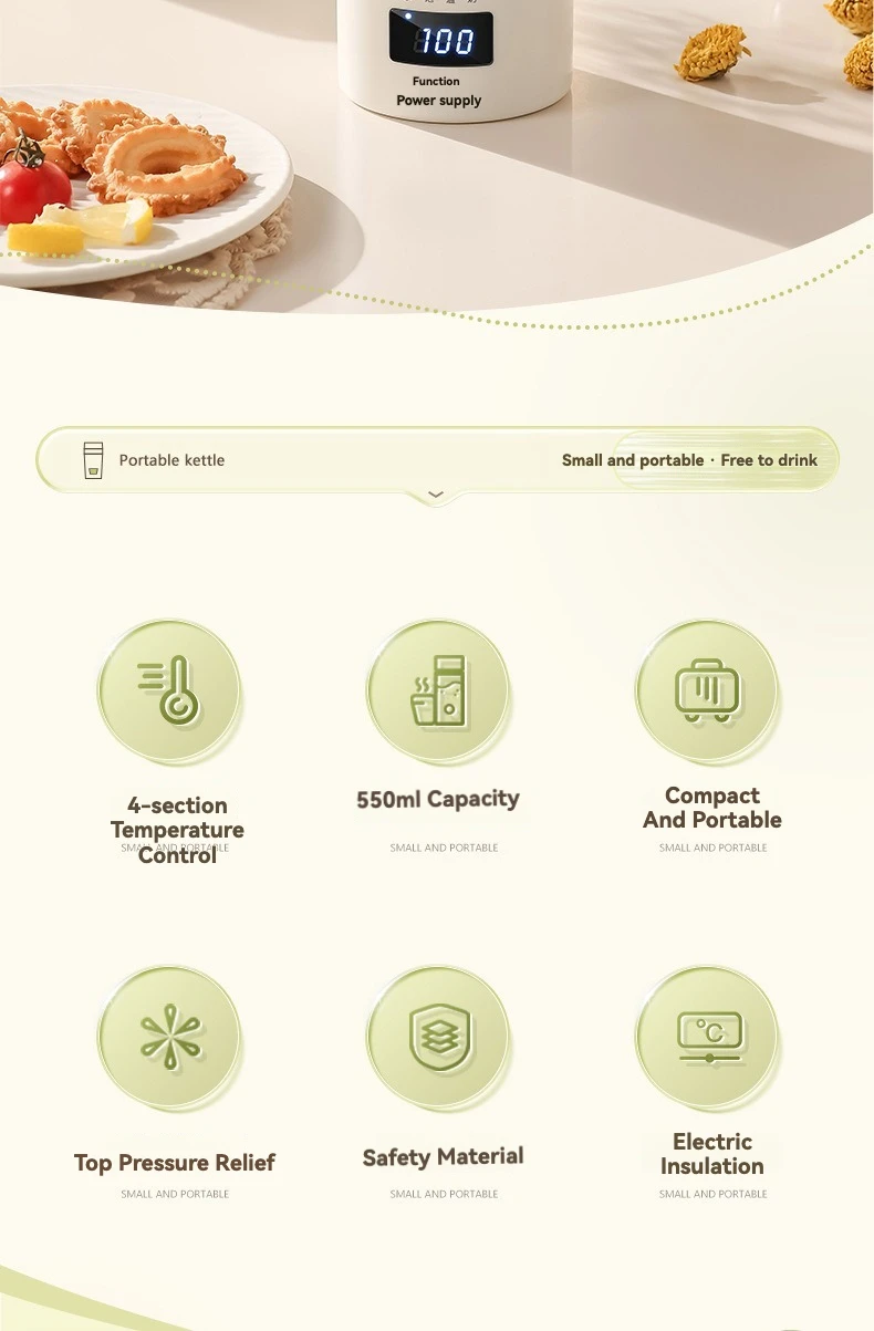 Compact Travel Kettle 550ml 300W Fast Boiling 4 Precise Temperature Settings 316 Stainless Steel Interior Portable Hot Water Cup