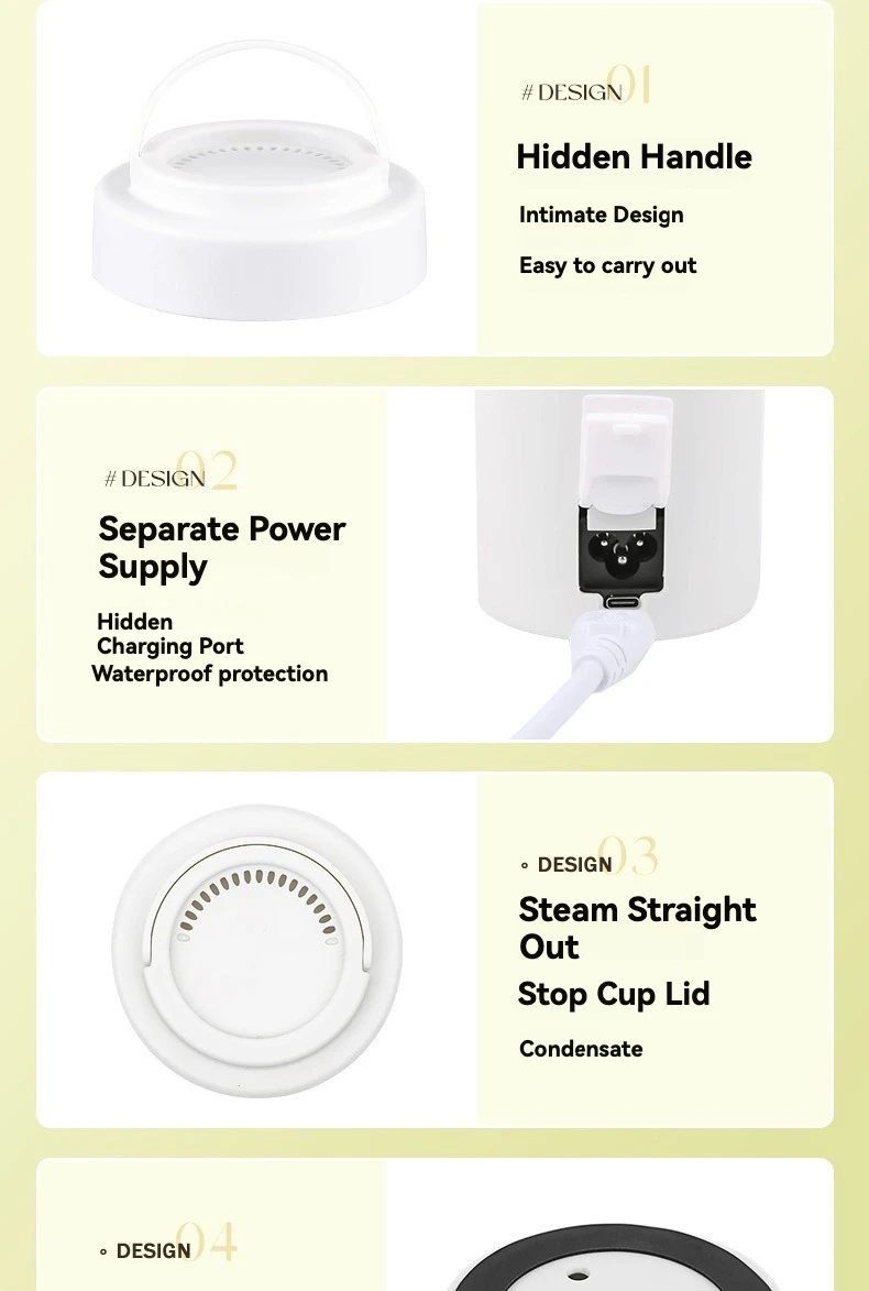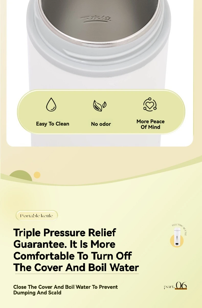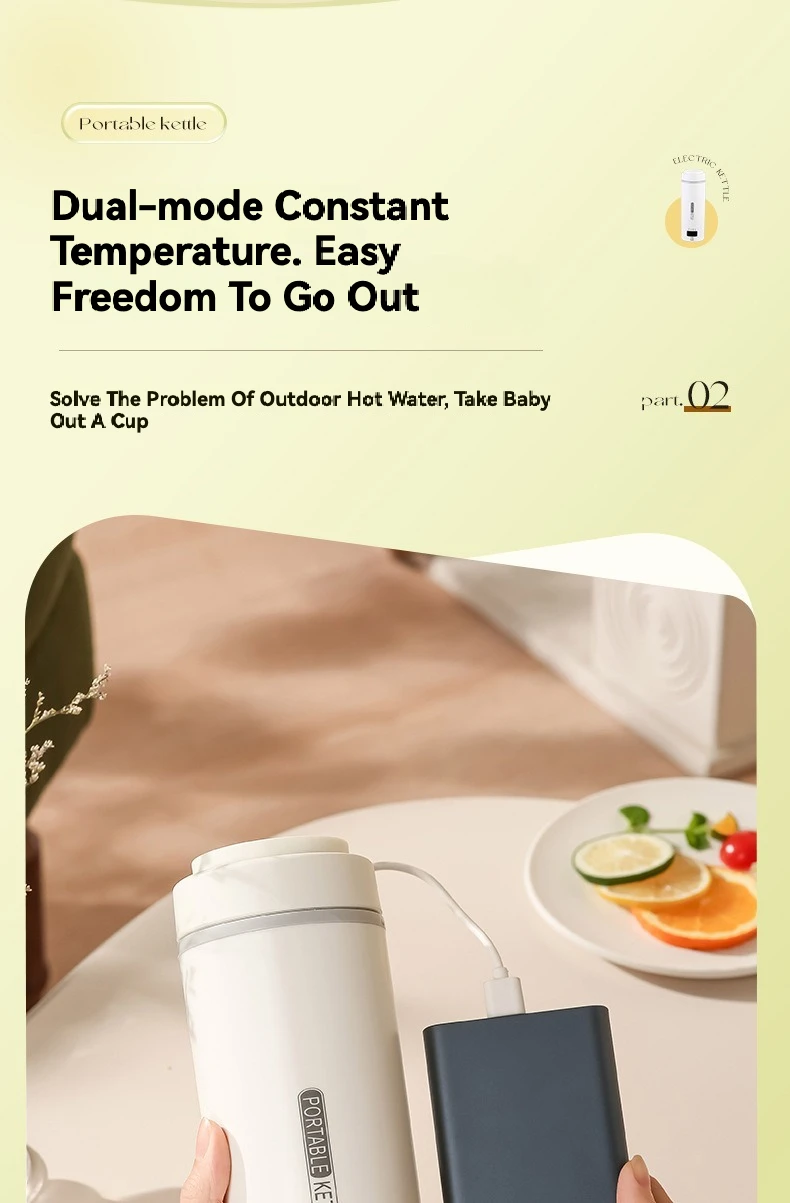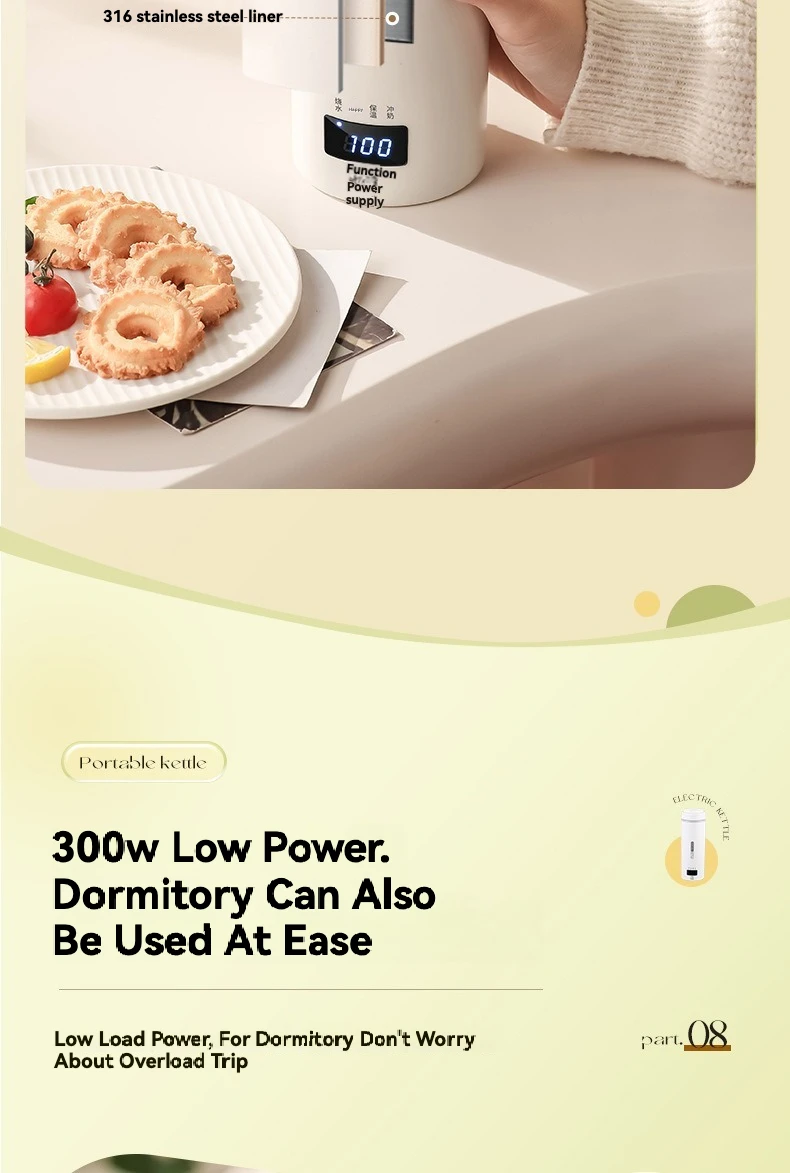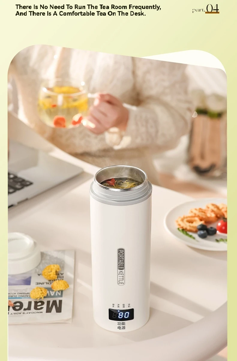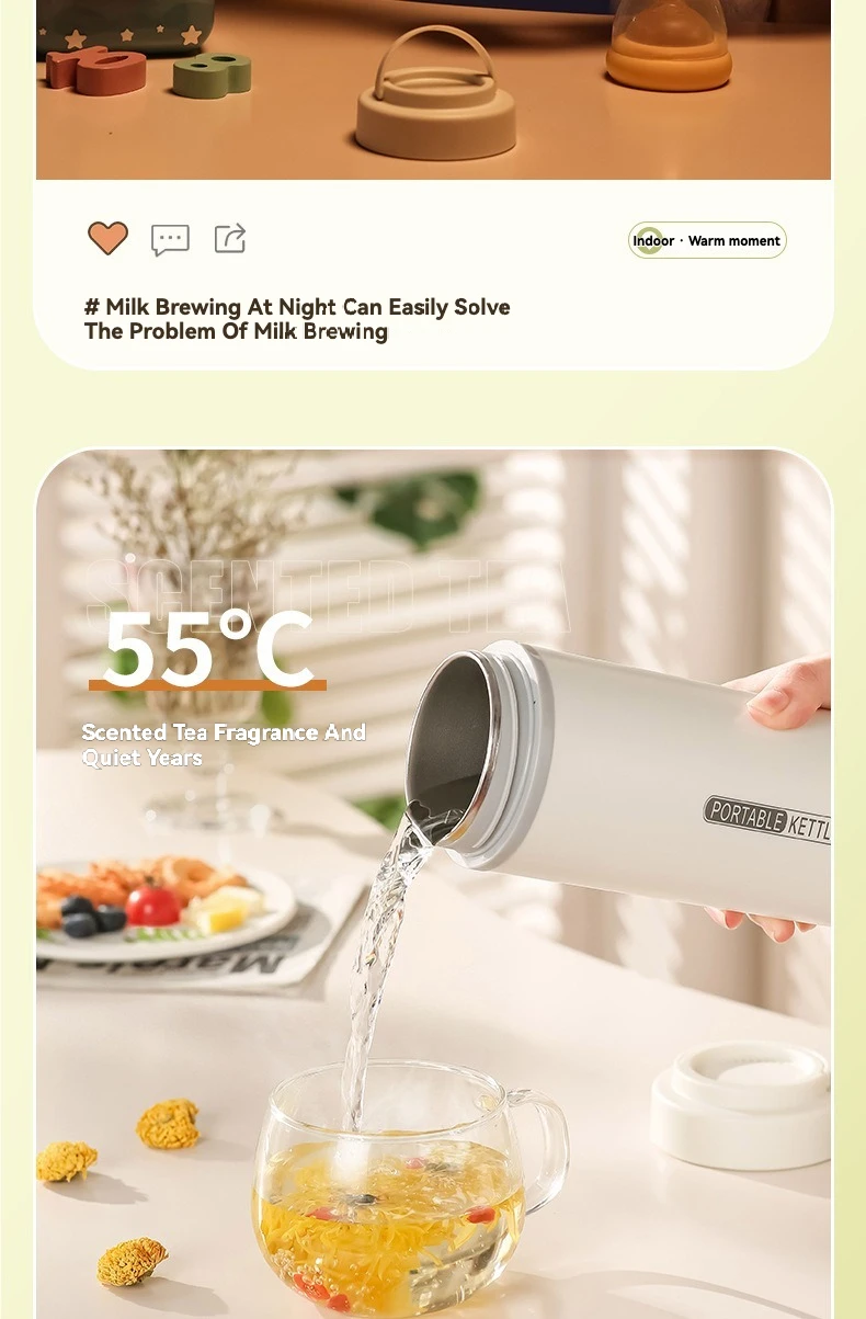 Compact Travel Kettle 550ml 300W Fast Boiling 4 Precise Temperature Settings 316 Stainless Steel Interior Portable Hot Water Cup