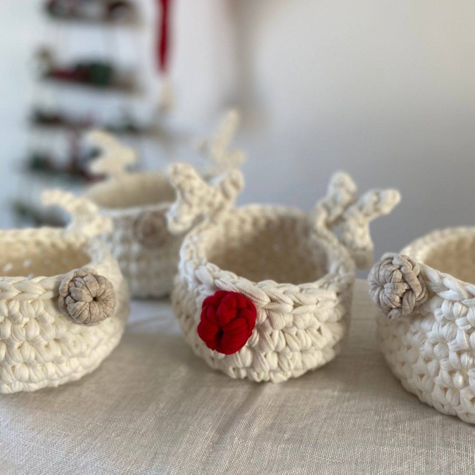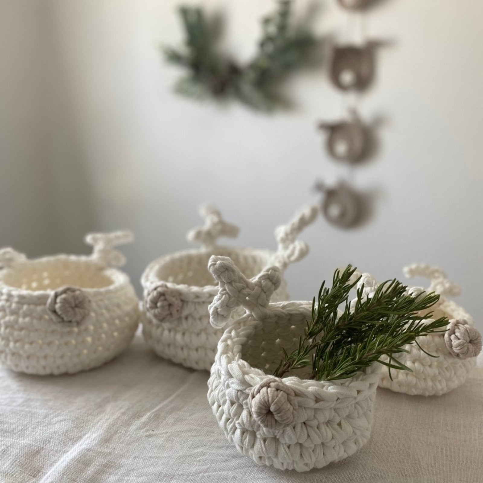 Crocheted with a recycled and eco friendly cotton yarn, these minimalist deer baskets are great Christmas gifts for your lovers. Two sizes available  to choose from.