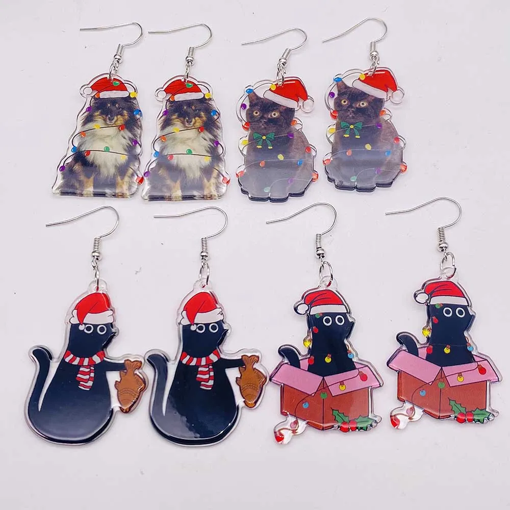 Cute Christmas Earrings Colorful Lights Christmas Tree Cat Acrylic Earrings for Women Holiday Jewelry Accessories Gifts