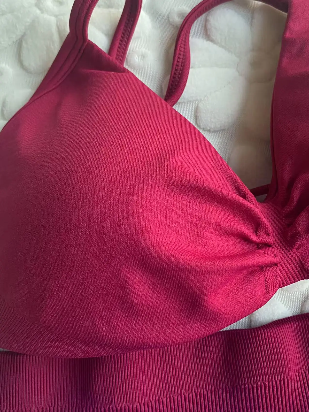 DFYIVE Yoga Gym Set 2 Piece Women Strappy Yoga Bra Top Workout Scrunch Shorts Sports Suit Fitness Clothes Seamless Yoga Set