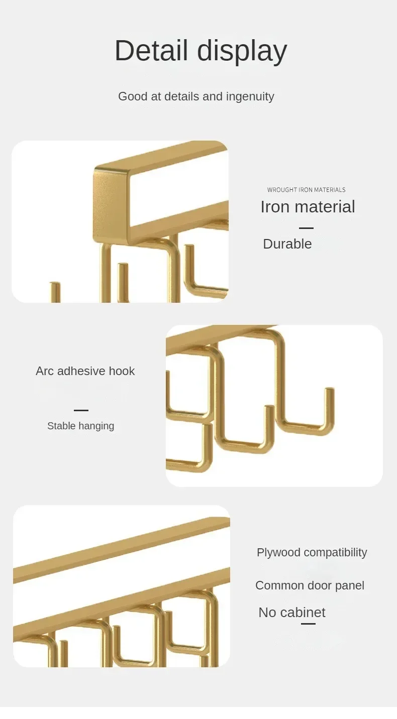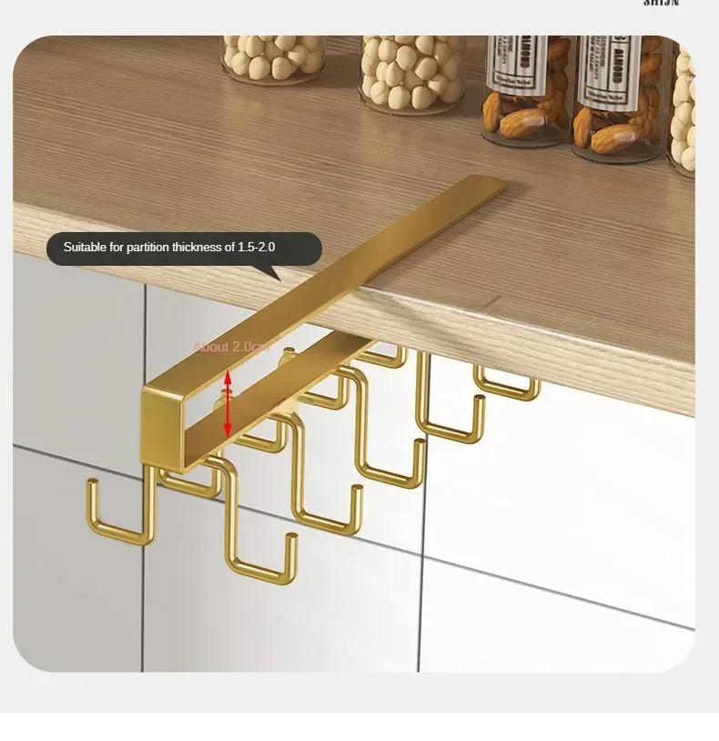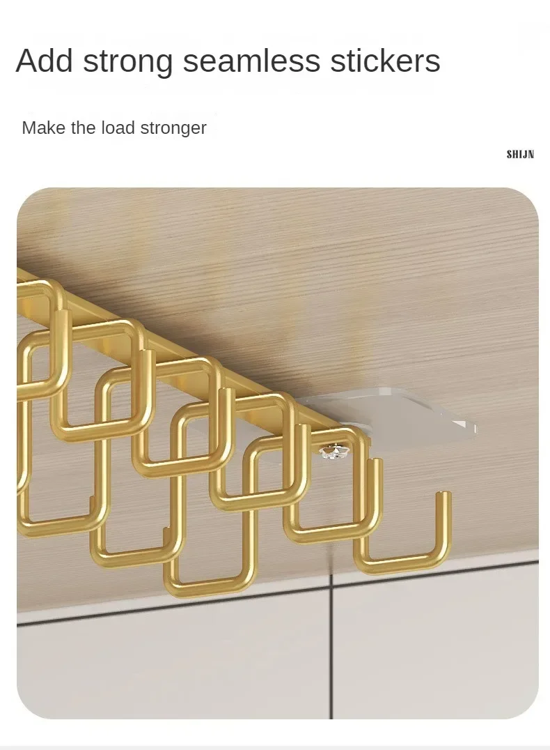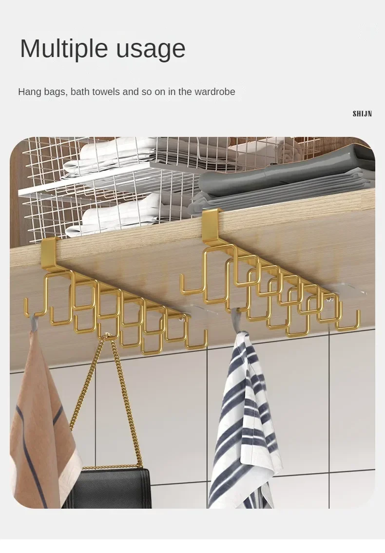 Double-row Hooks Punch-free Kitchen Cupboard Under Shelf Mug Cup Hanger Hook Iron Hanging Rack Holder Kitchen Cabinet Organizer