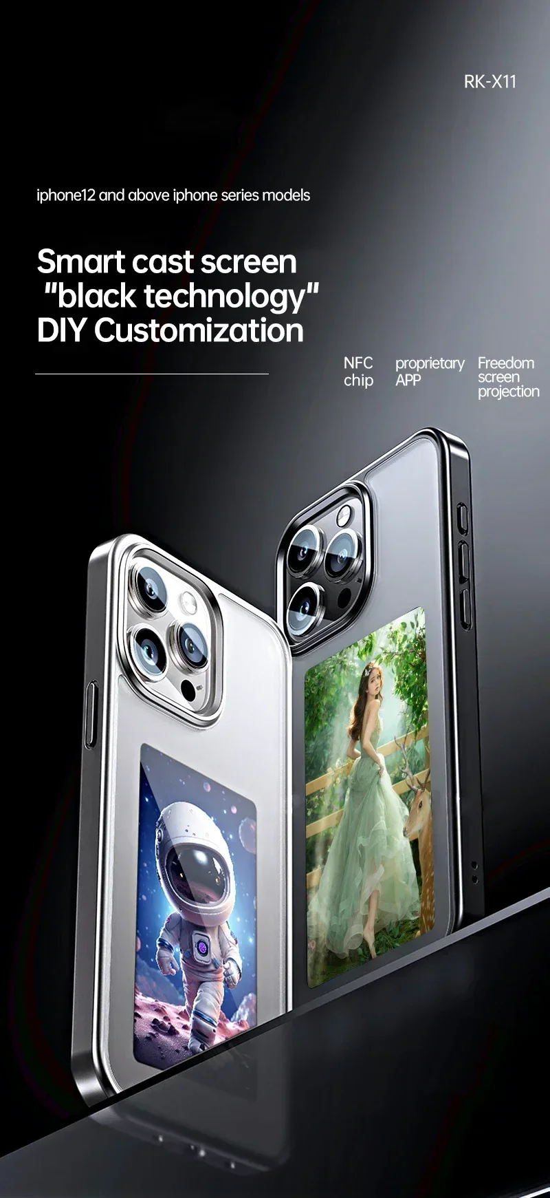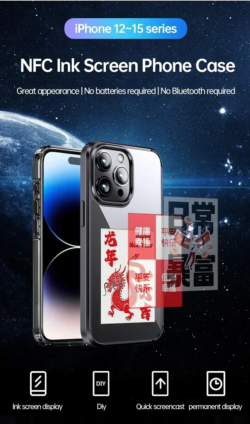 Eink Screen Smart NFC Refesh Phone Case for IPhone 16 15 14 13 Pro Max DIY Eink Back Display Protection Case Battery Free