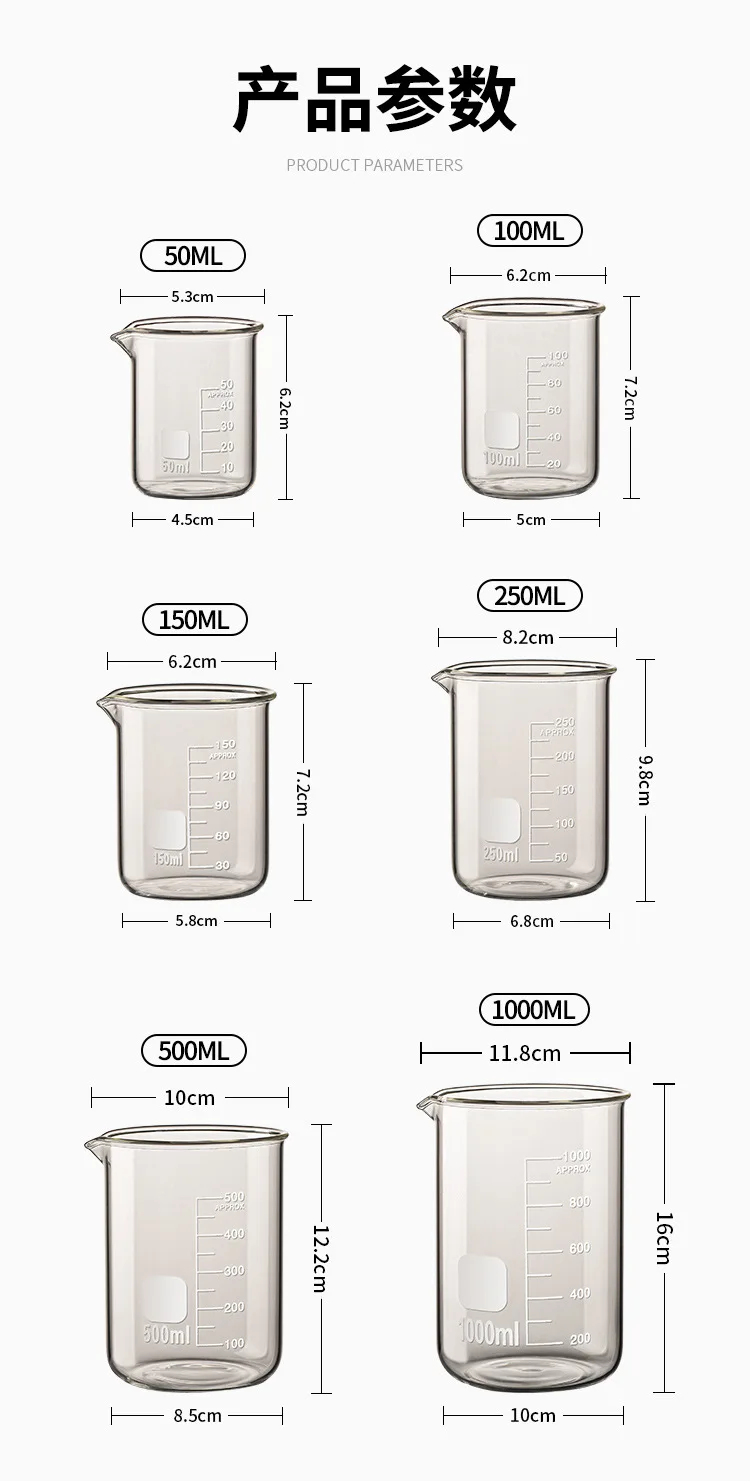 Glass Measuring Cup High Borosilicate Clear Scale Cup Heat-resisting Laboratory Beaker Kitchen Baking 50/100/150/250/500/1000ml