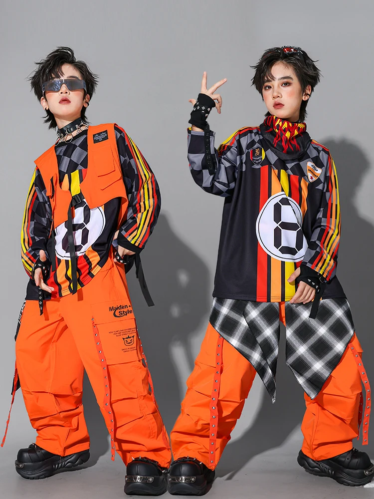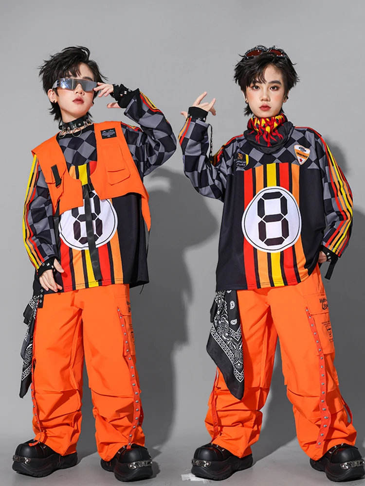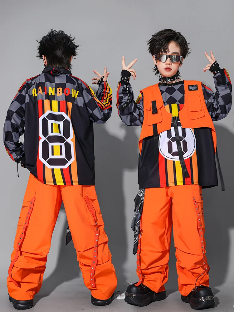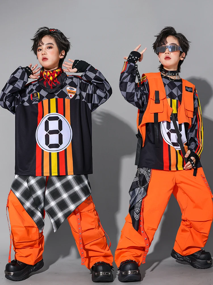 Hip Hop Children Cool Numbers Sweatshirt Vest Street Dance Cargo Pants Girls K-pop Jazz Costume Boys Clothes Set Kids Streetwear