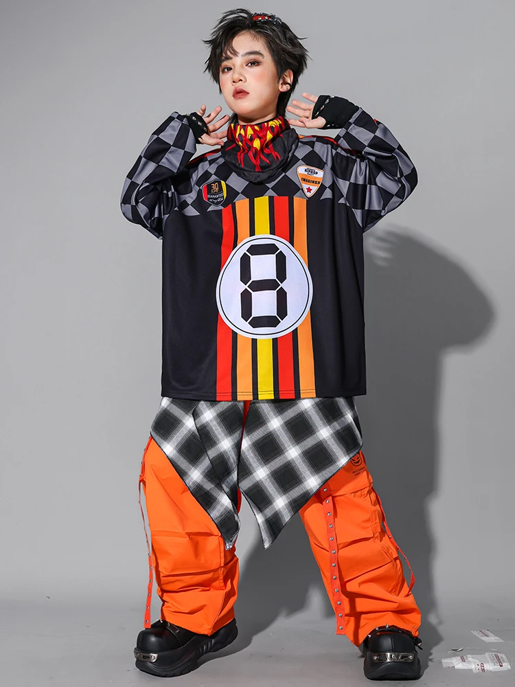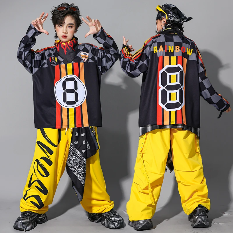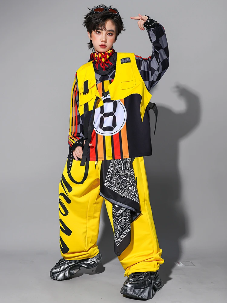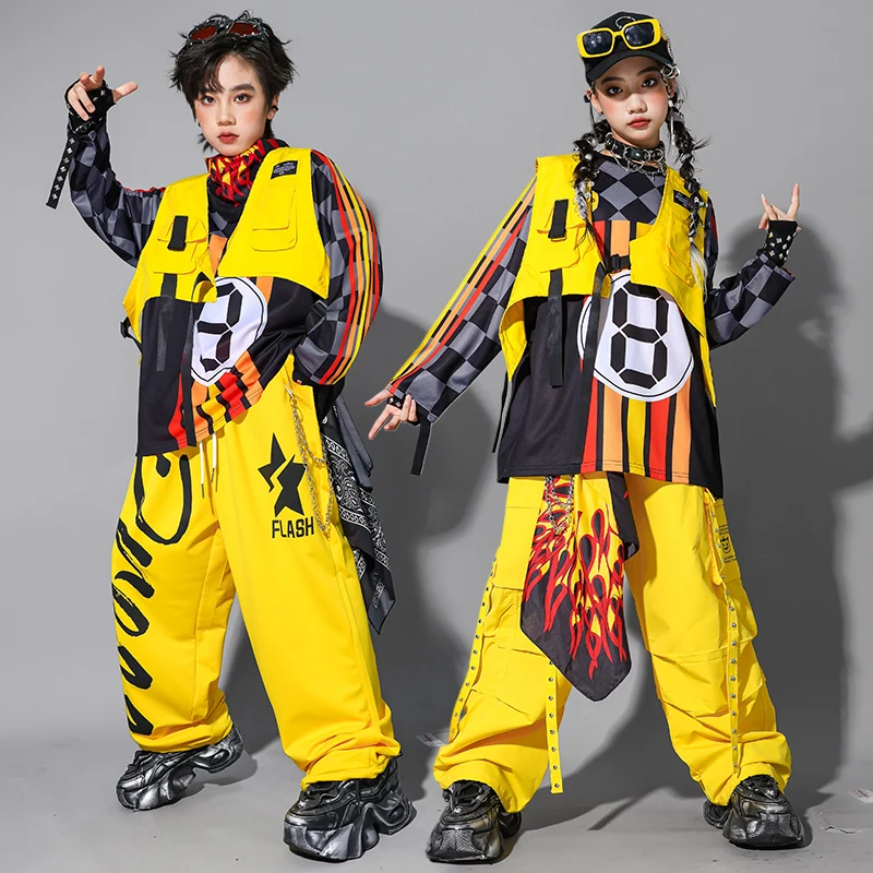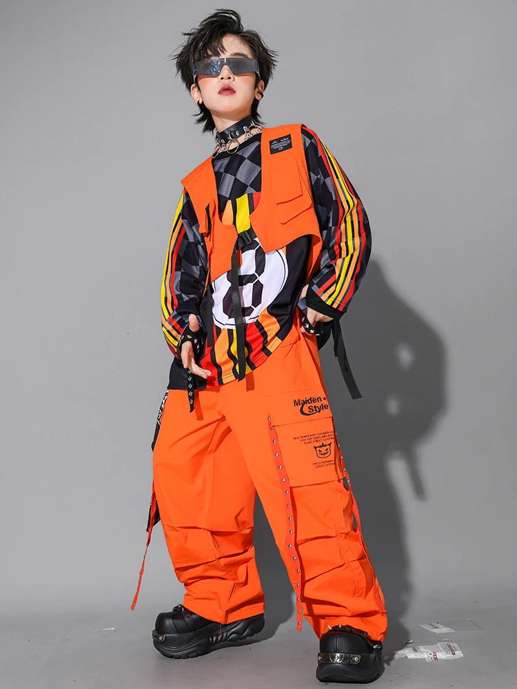 Hip Hop Children Cool Numbers Sweatshirt Vest Street Dance Cargo Pants Girls K-pop Jazz Costume Boys Clothes Set Kids Streetwear