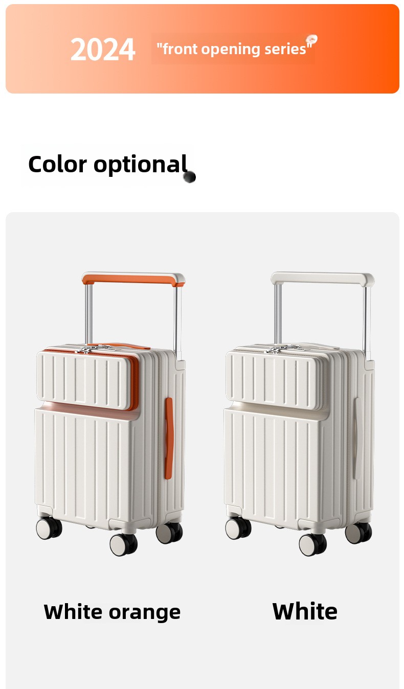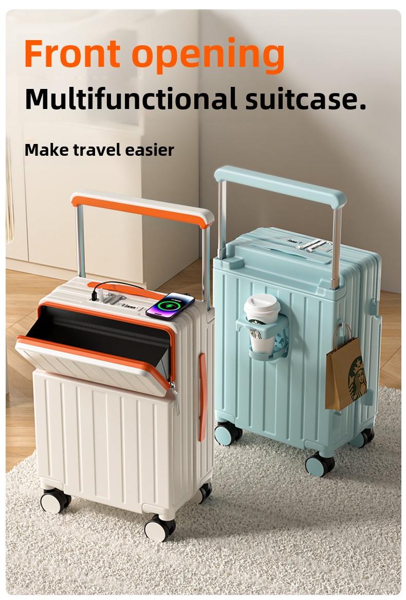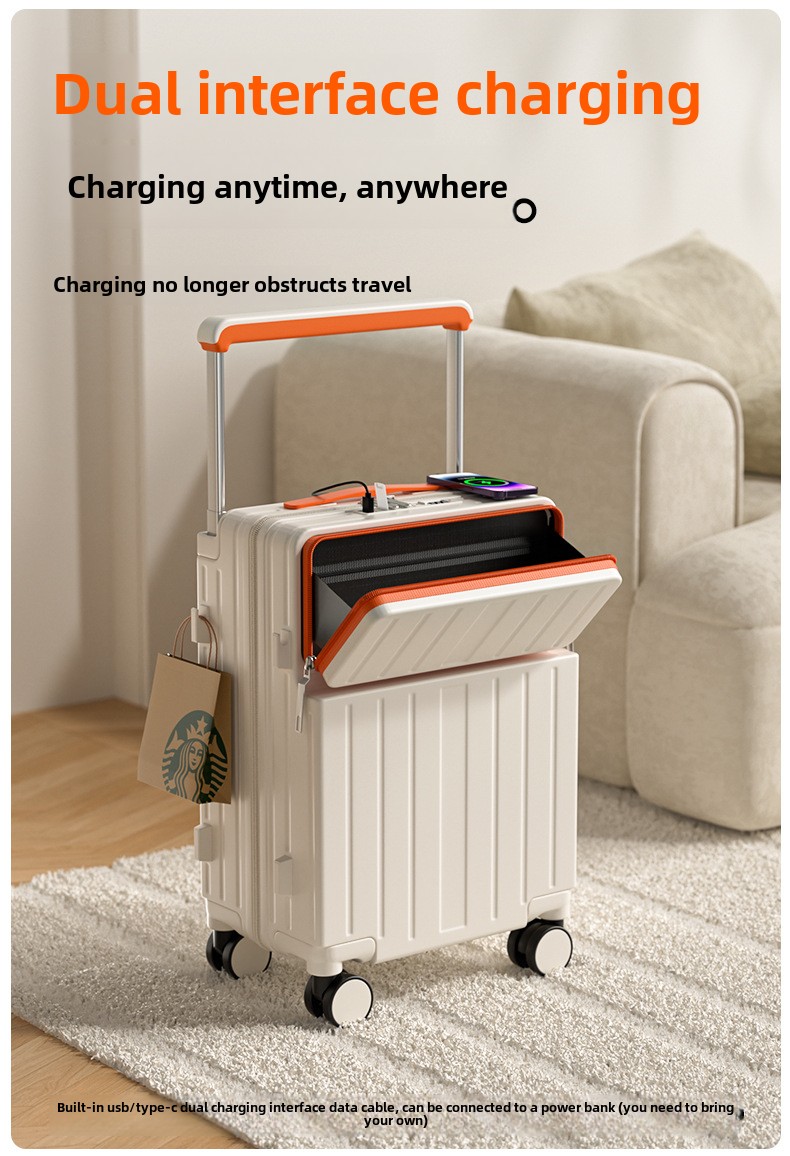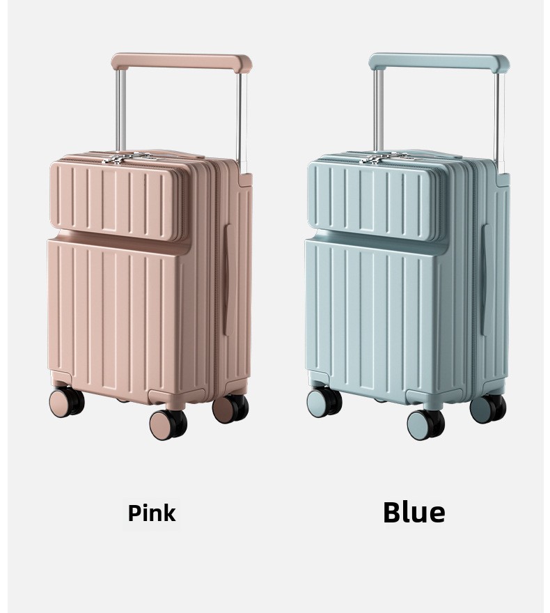 KLQDZMS Cabin Suitcase Front Laptop Boarding Case USB Charging Trolley Case 20"22"24"26 Inch Multifunctional Women's Luggage