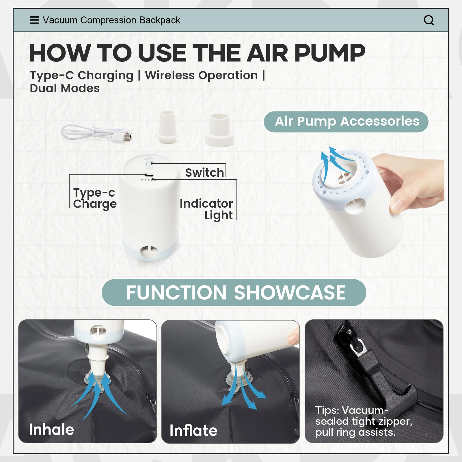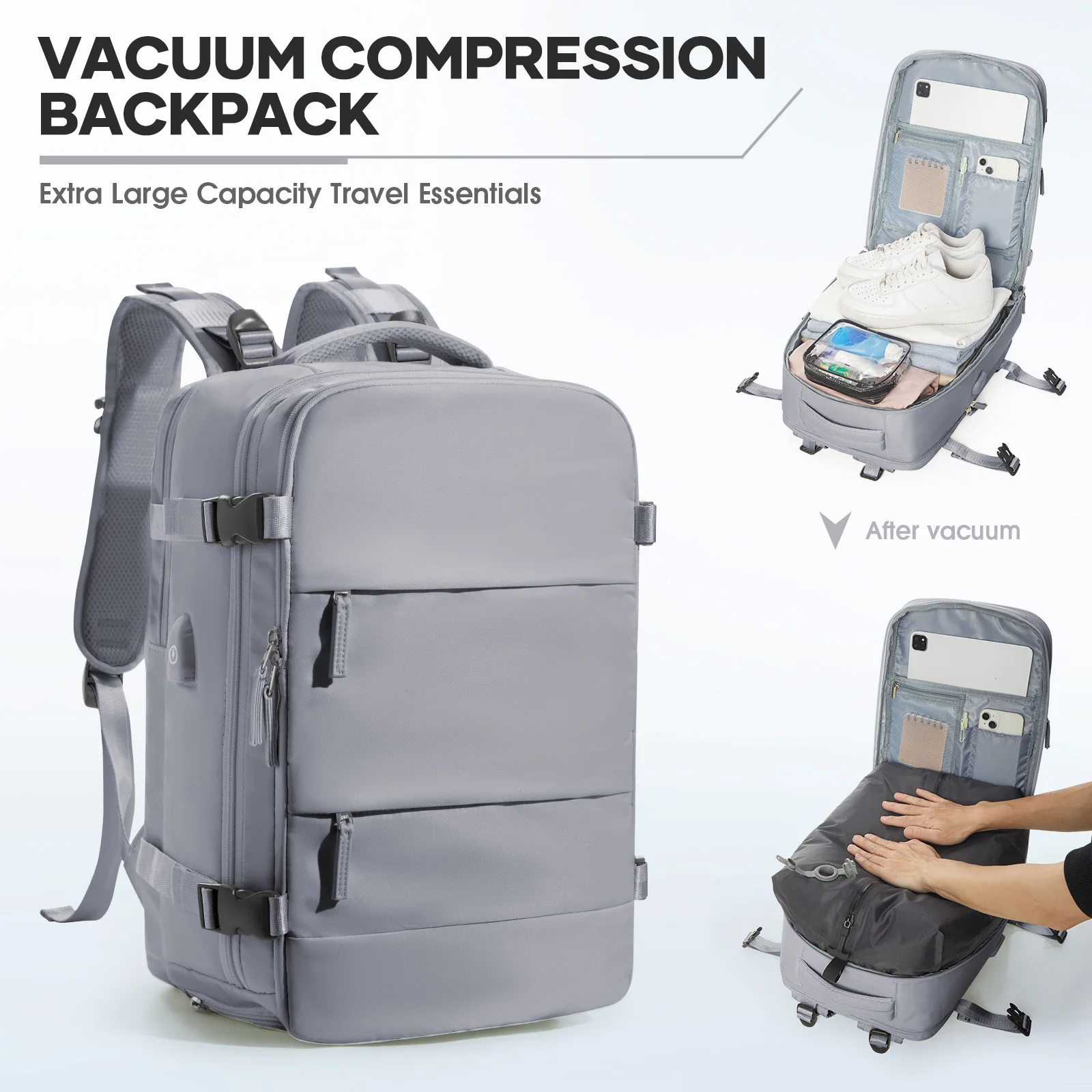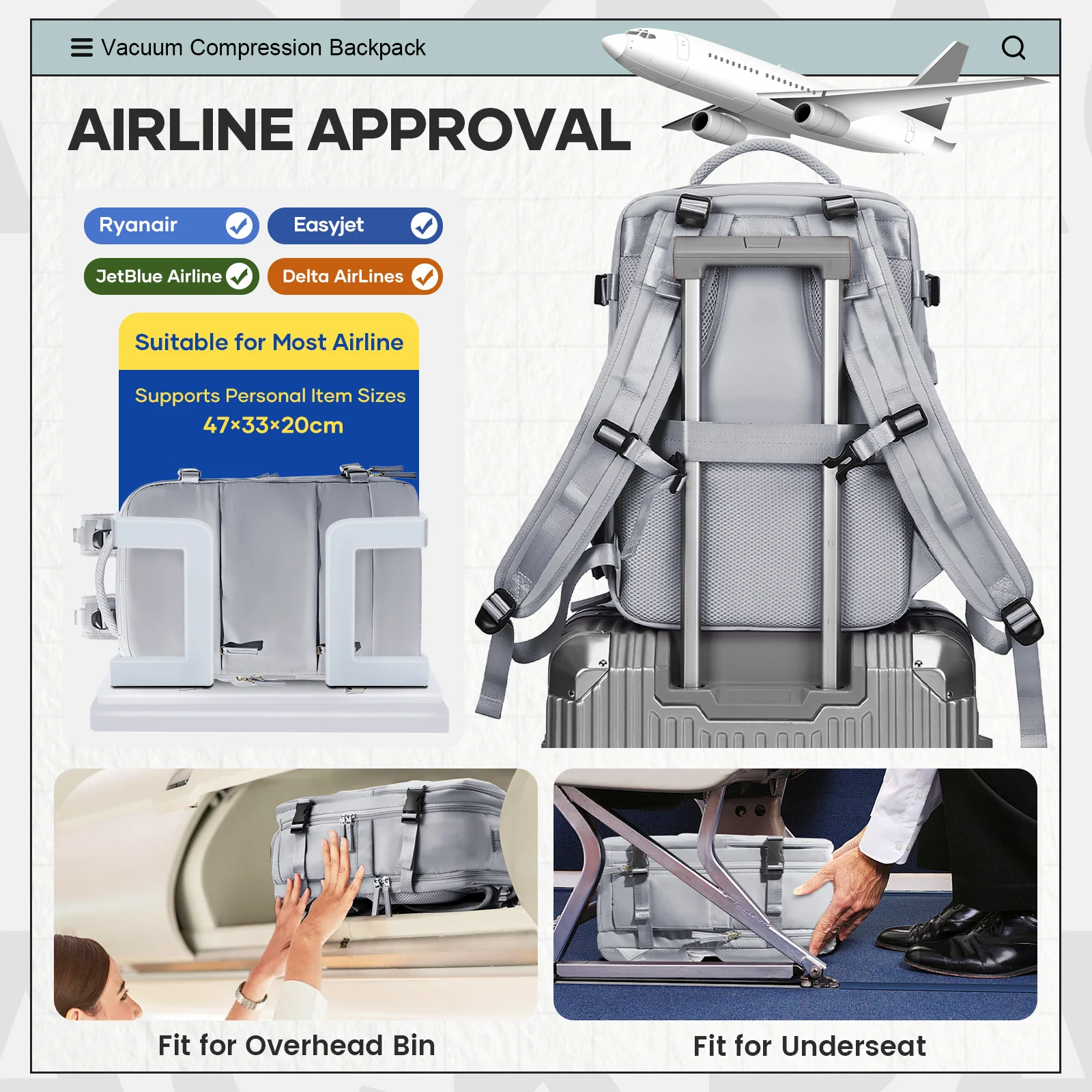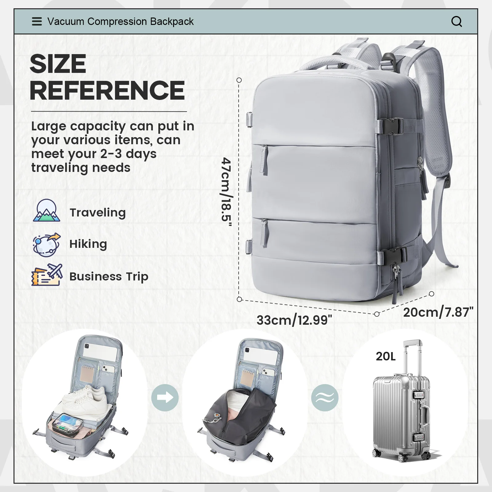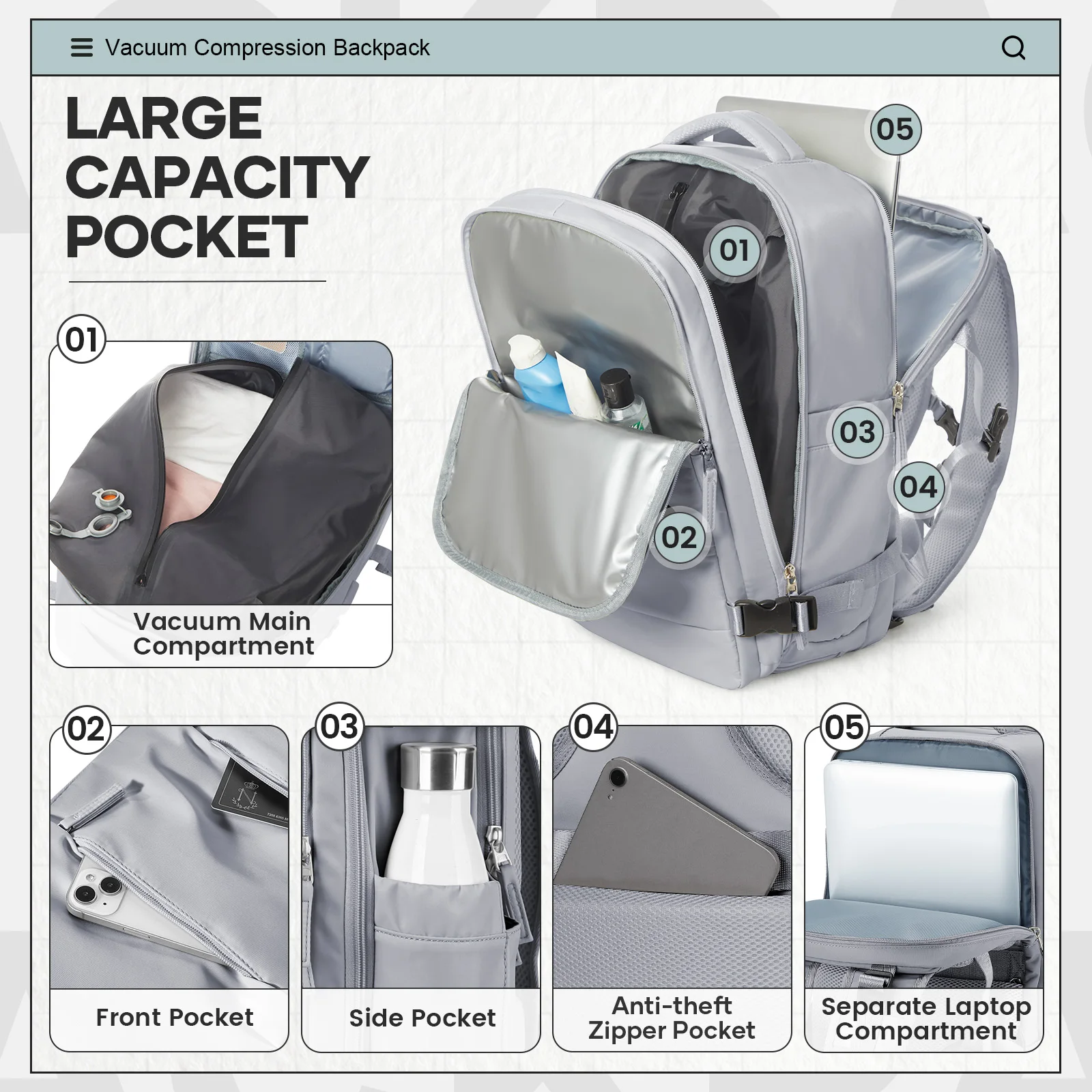 Large Vacuum Travel Backpack with Pump for Women Men, Personal Effects Carry-on Luggage Backpack 47x33x20cm, Laptop School Bag