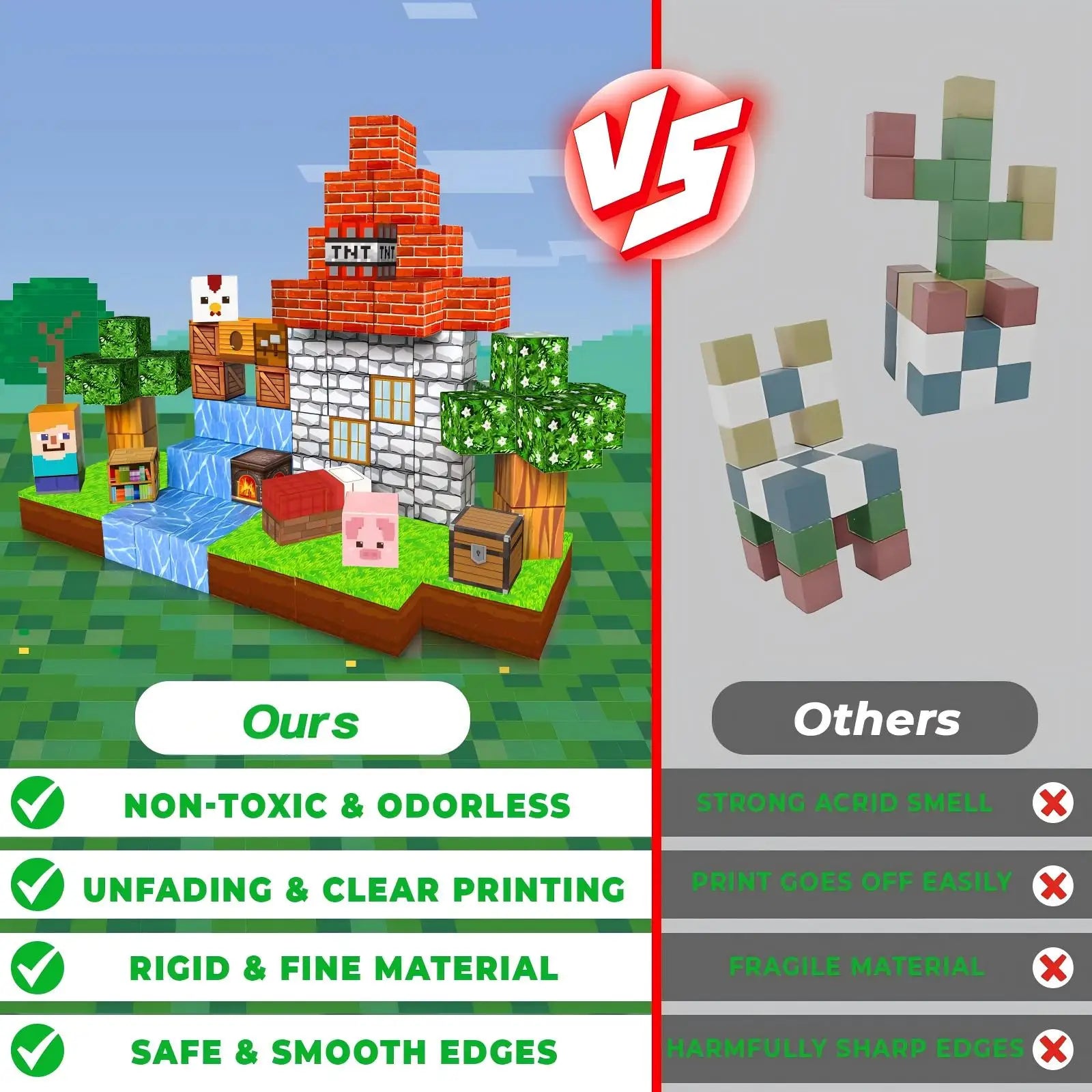 【UNLEASH CREATIVITY】Each cube boasts strong magnetic that ensure your child's creations remain steadfast and stable. No more frustrating collapses; these magnetic cubes empower confident building