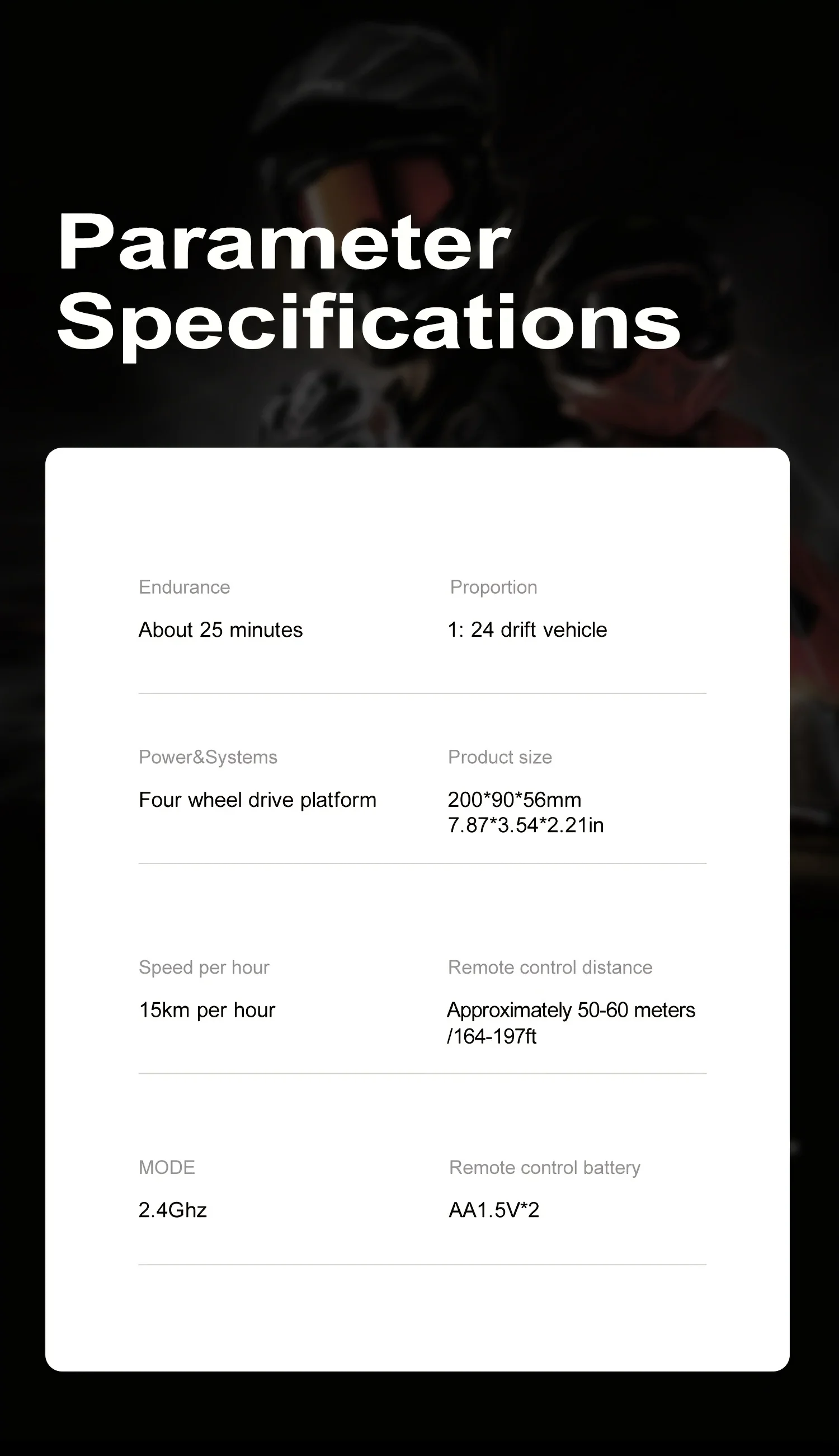 Powered by a rechargeable lithium-ion battery (18650 series, 500mAh capacity), this remote control car ensures extended play sessions, quick charging, and cost-efficient operation, enabling uninterrupted high-adrenaline racing excitement. The easy-to-use wireless remote features ergonomic controls for intuitive handling and precision maneuvering, suitable for all skill levels.