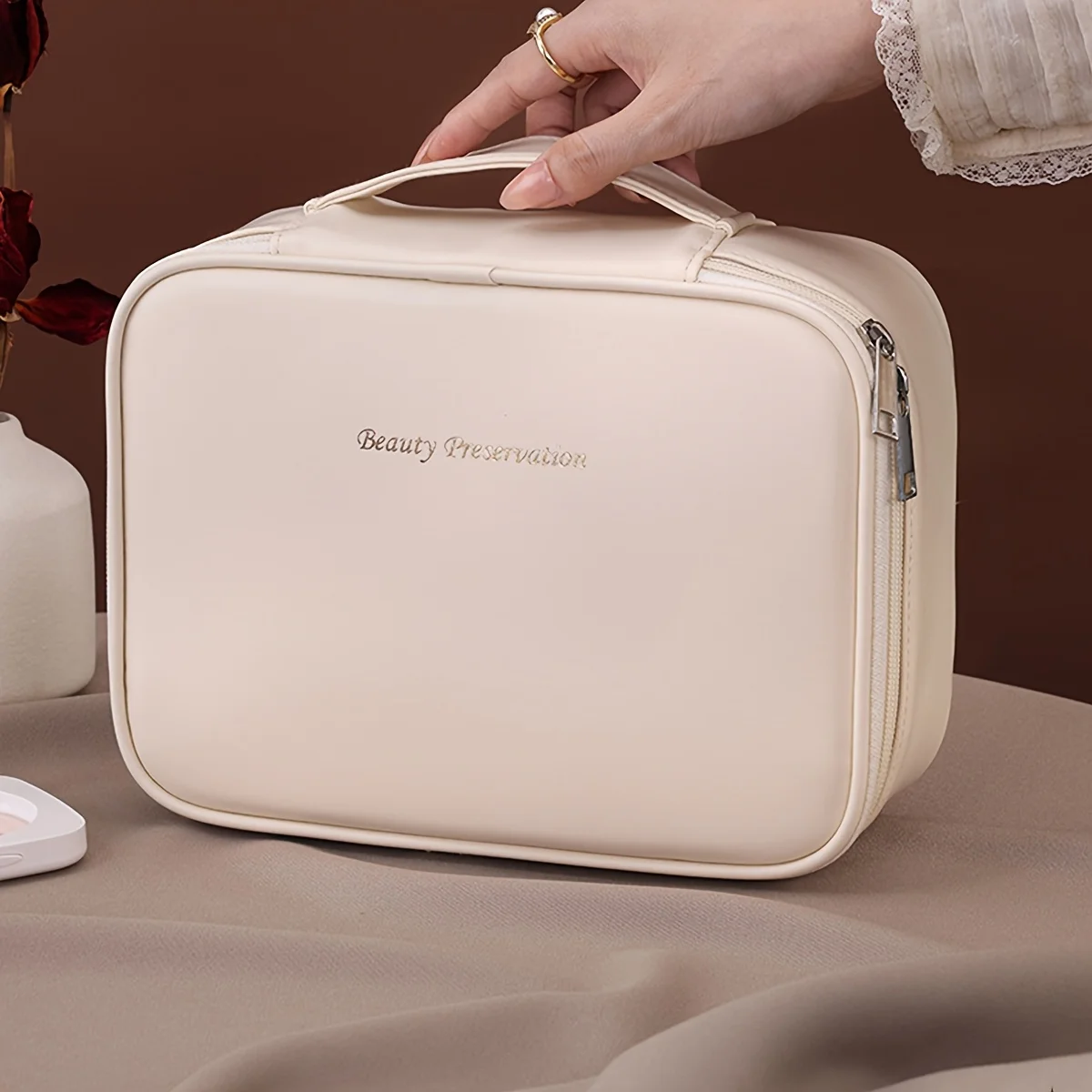 PU Leather Double Layer Makeup Bag Large Capacity Cosmetic Bags Luxury Cosmetics Organizer Women's Travel Essentials