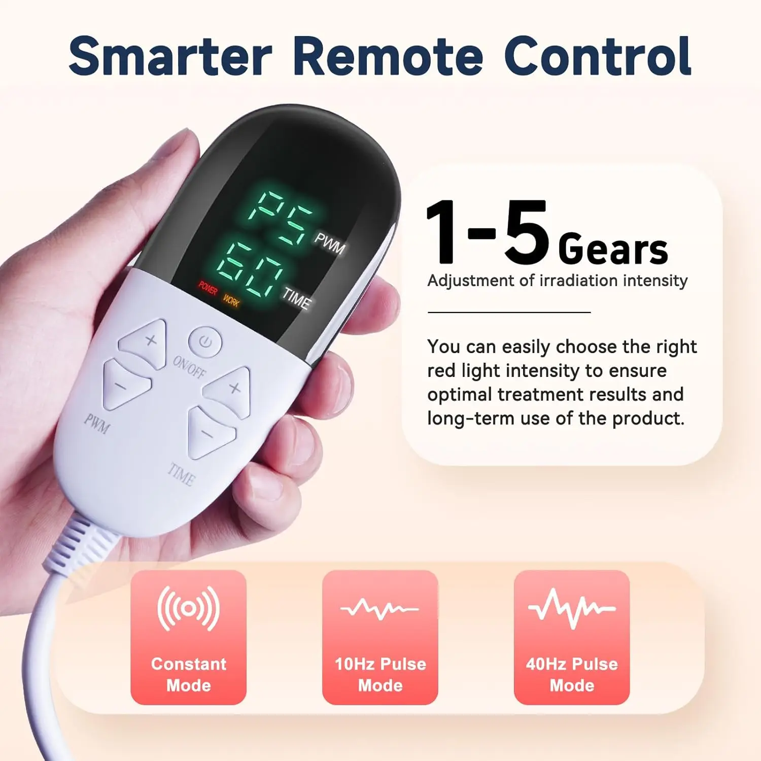 Intelligent adjustment: 5-level brightness can be freely adjusted, 9-level timer setting (10-90 minutes). The red light blanket is equipped with three phototherapy modes: constant light mode, stable illumination, and suitable for daily relaxation.