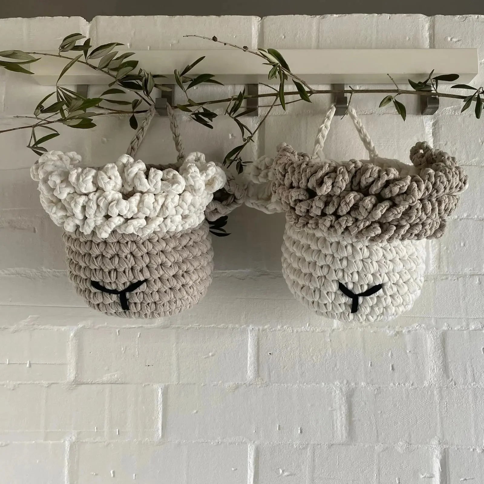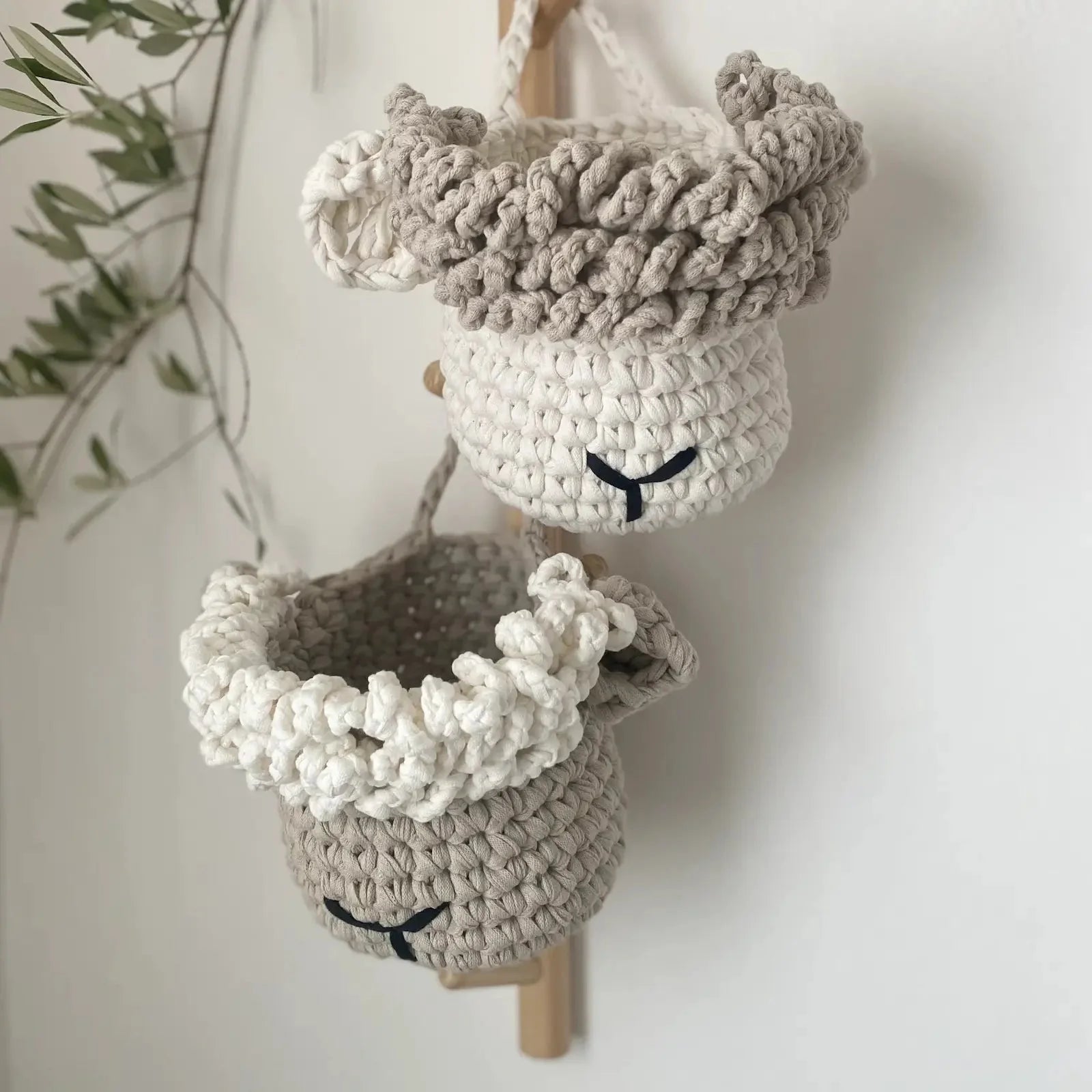 Unique sheep face crochet storage basket, very cute to hanging on your baby or kids room for storing toys, school materials, diapers and other baby essentials.