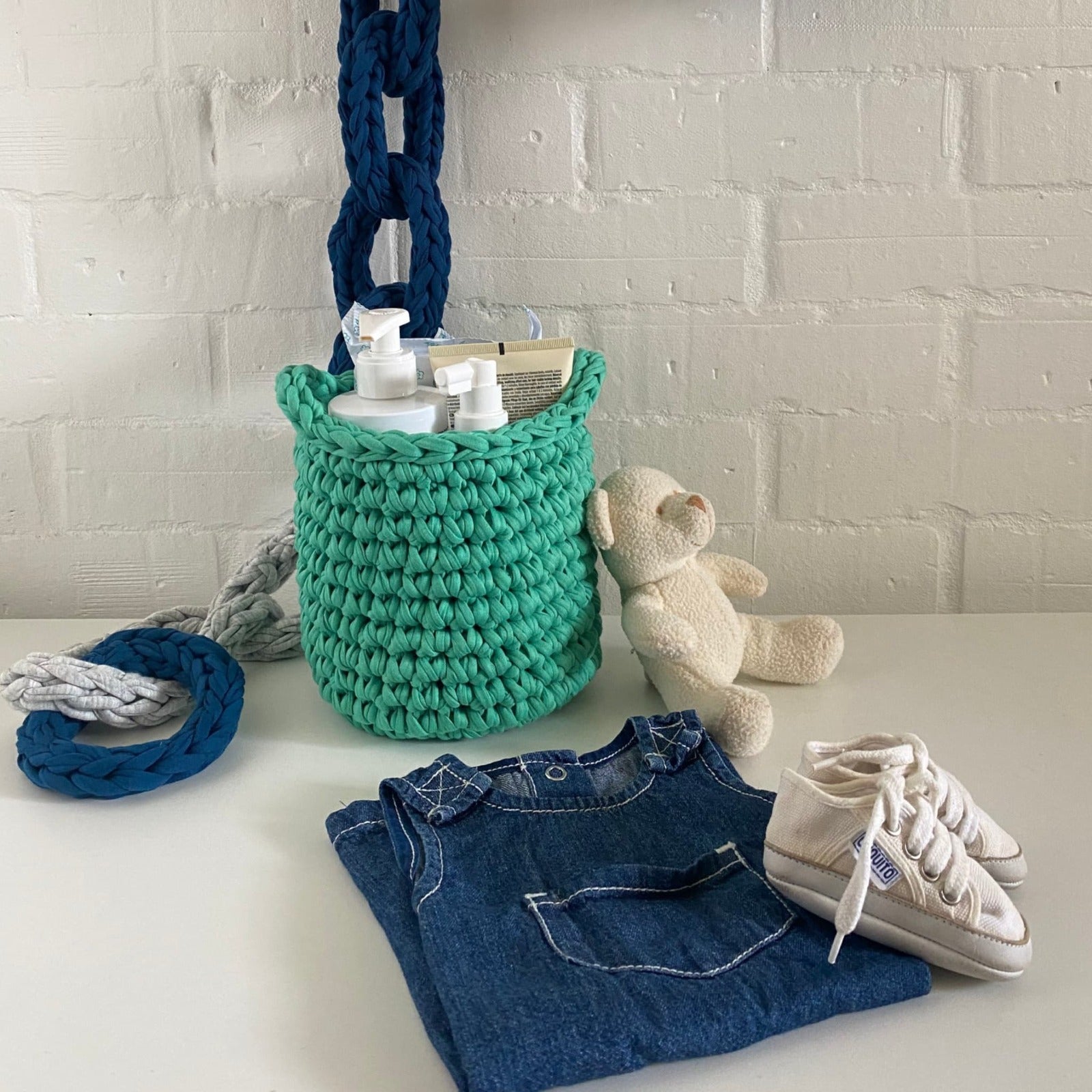 Perfect for organizing small items around the house or office, this crochet basket is a cute way to decorate your small entryway or office shelves.