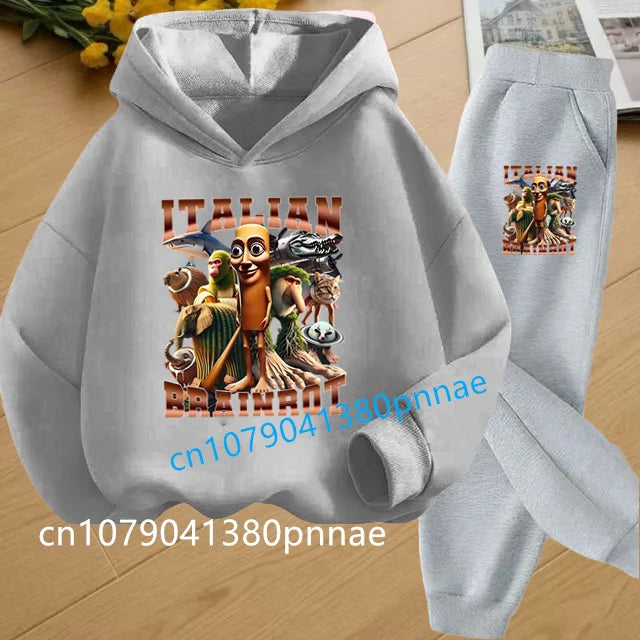 Tralalero Tralala Tung Tung Tung Funny Italian Brainrot Kids Clothes Boys Hoodie+Pants 2pcs Set Girls Tracksuit Children Outfits