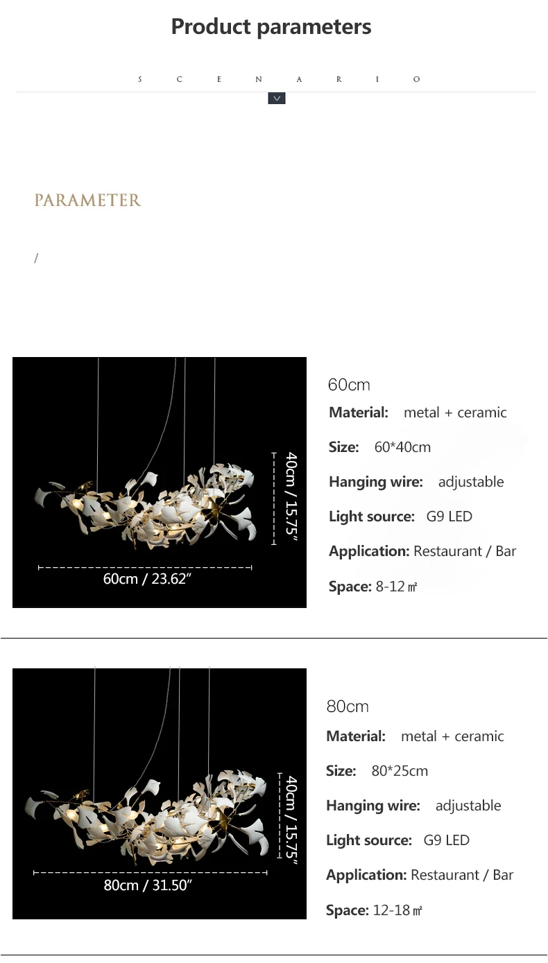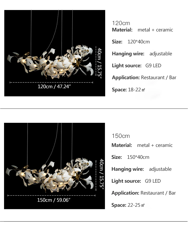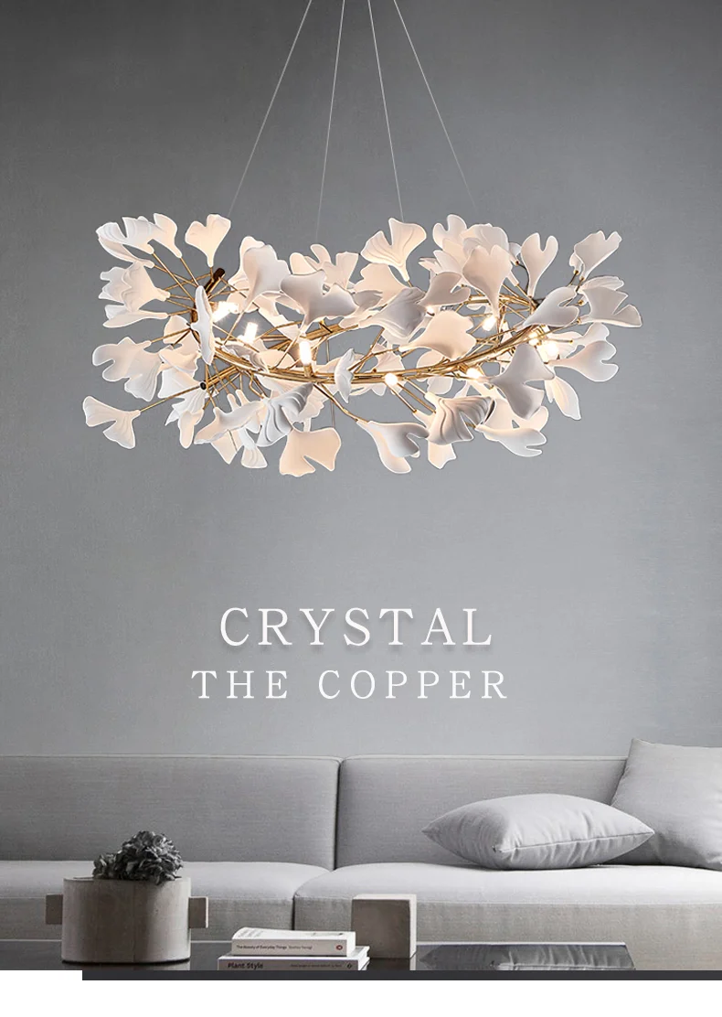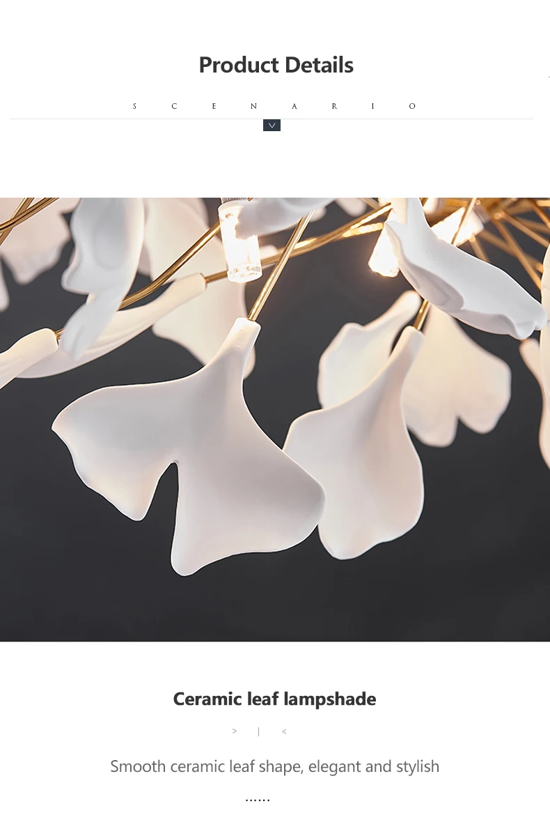 Tree branch chandelier Ceramic Ginkgo Leaves lamp luxury designer Living Room Bedroom Art Lobby Decoration restaurant bar lights