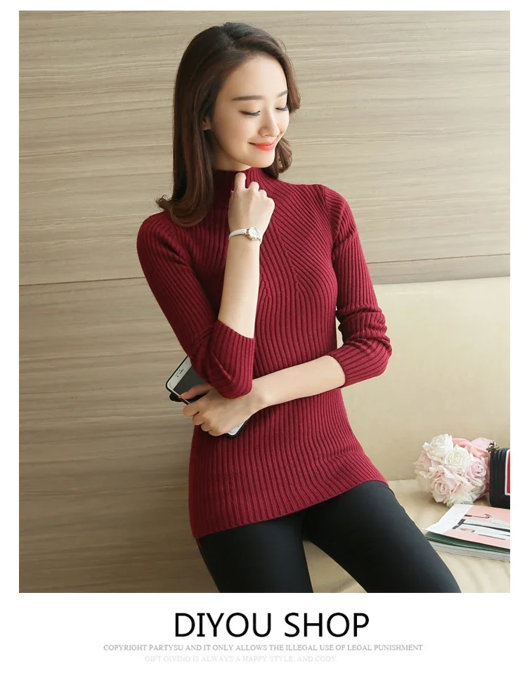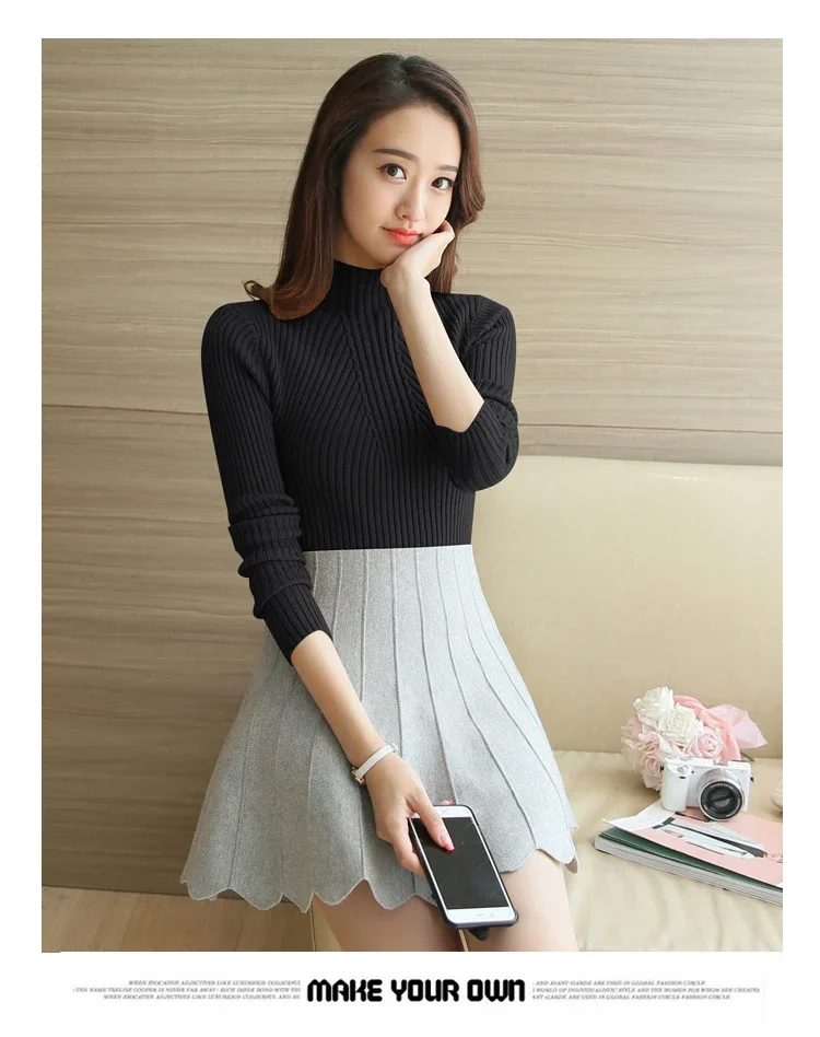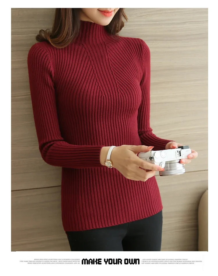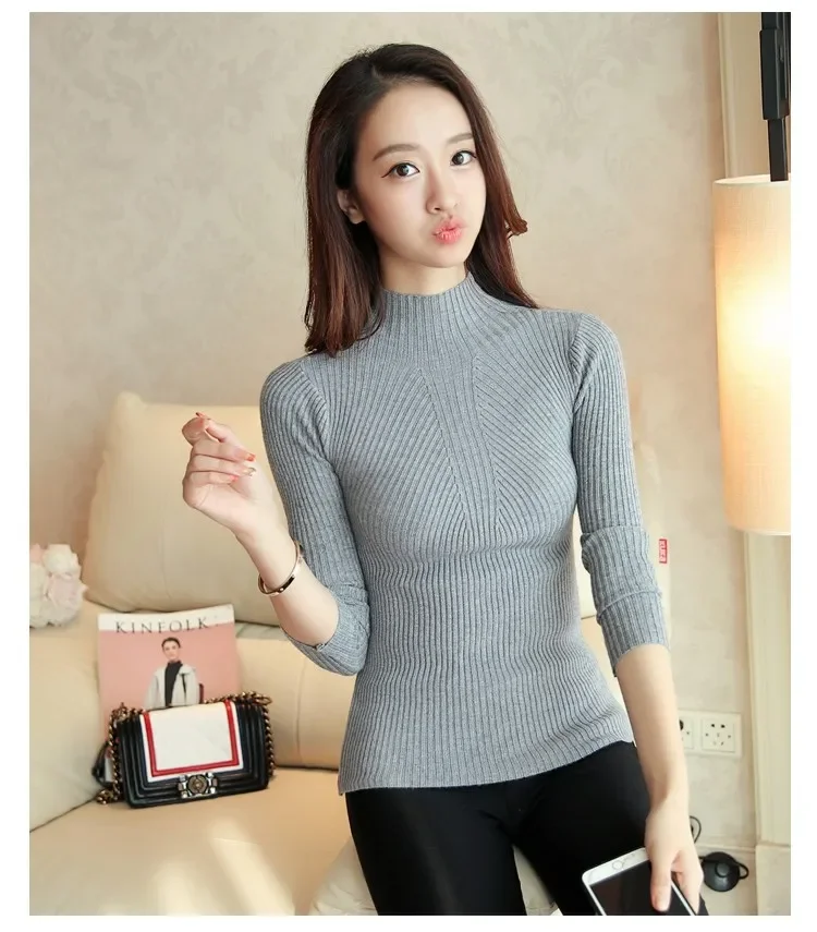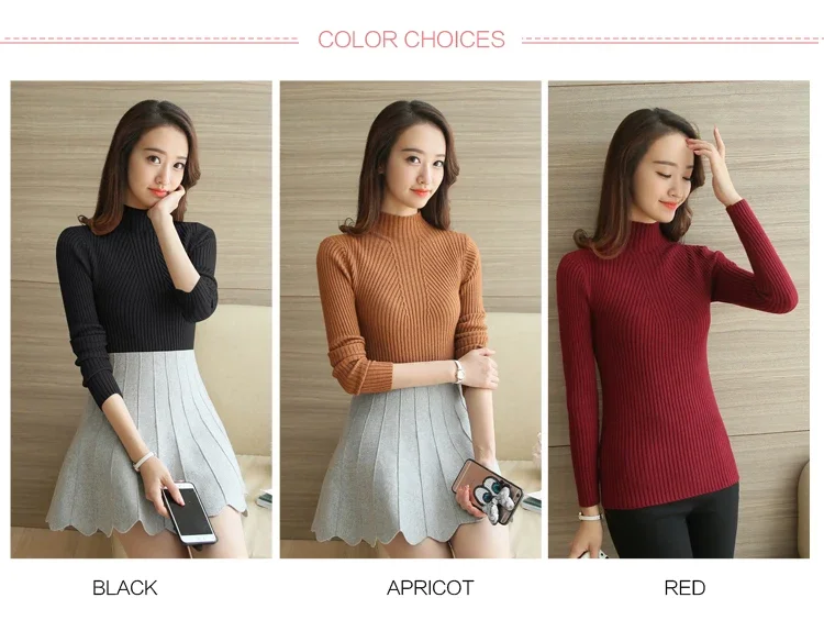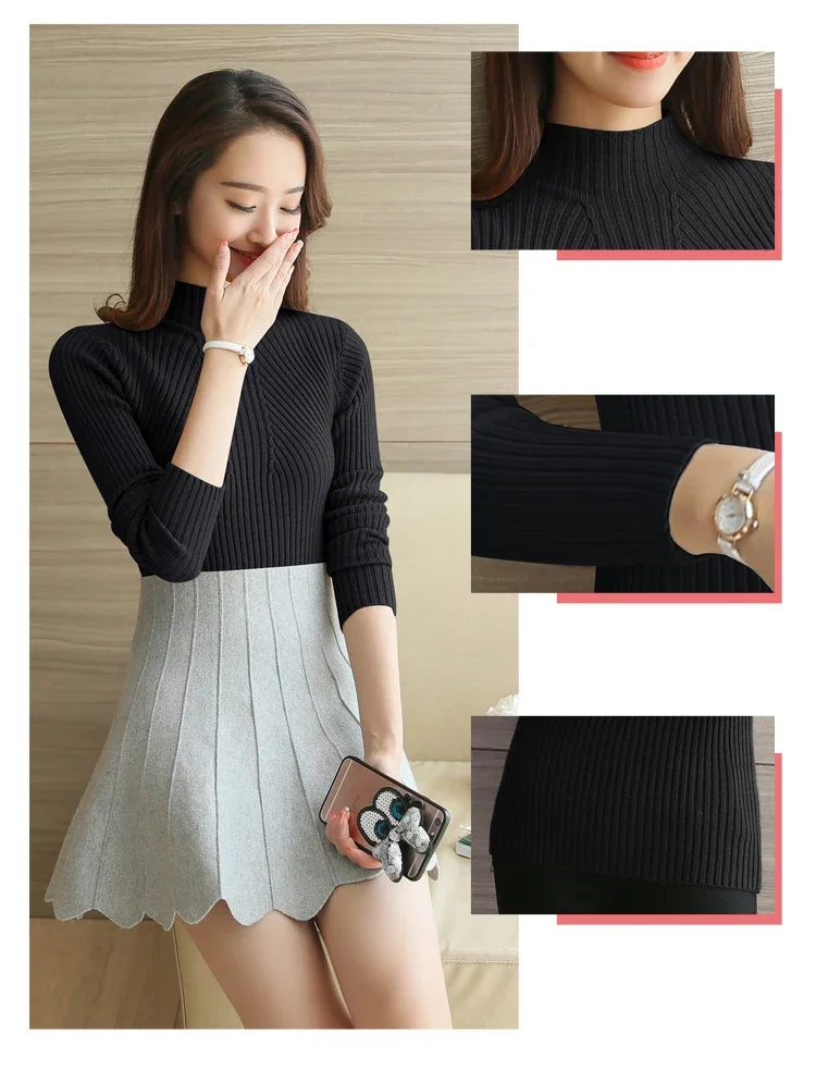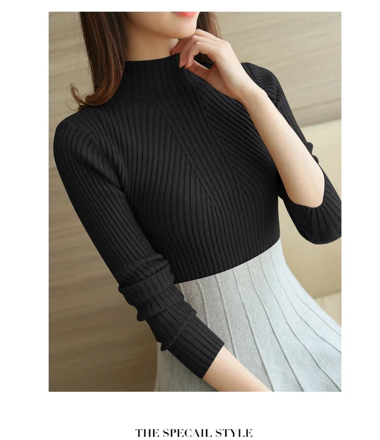 Turtleneck Sweater Women Fashion Korea Autumn Winter Black Tops Women Knitted Pullovers Long Sleeve Jumper Pull Femme Clothing