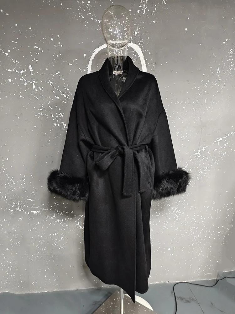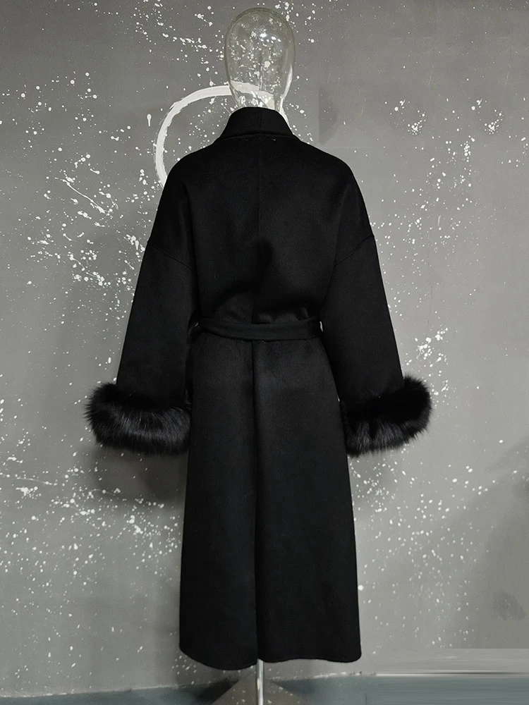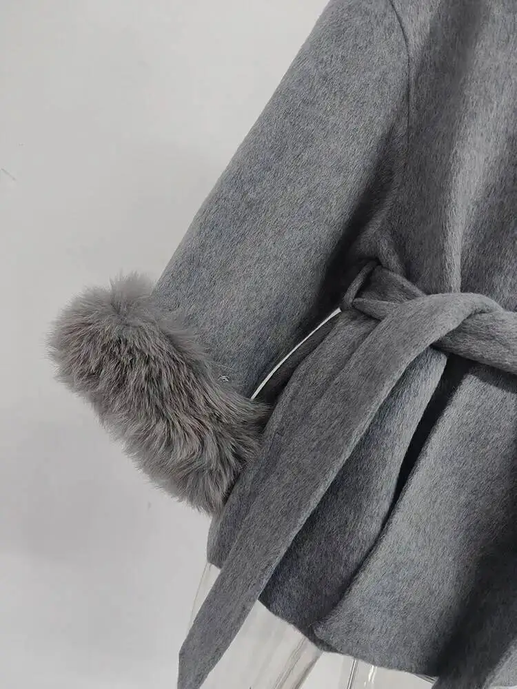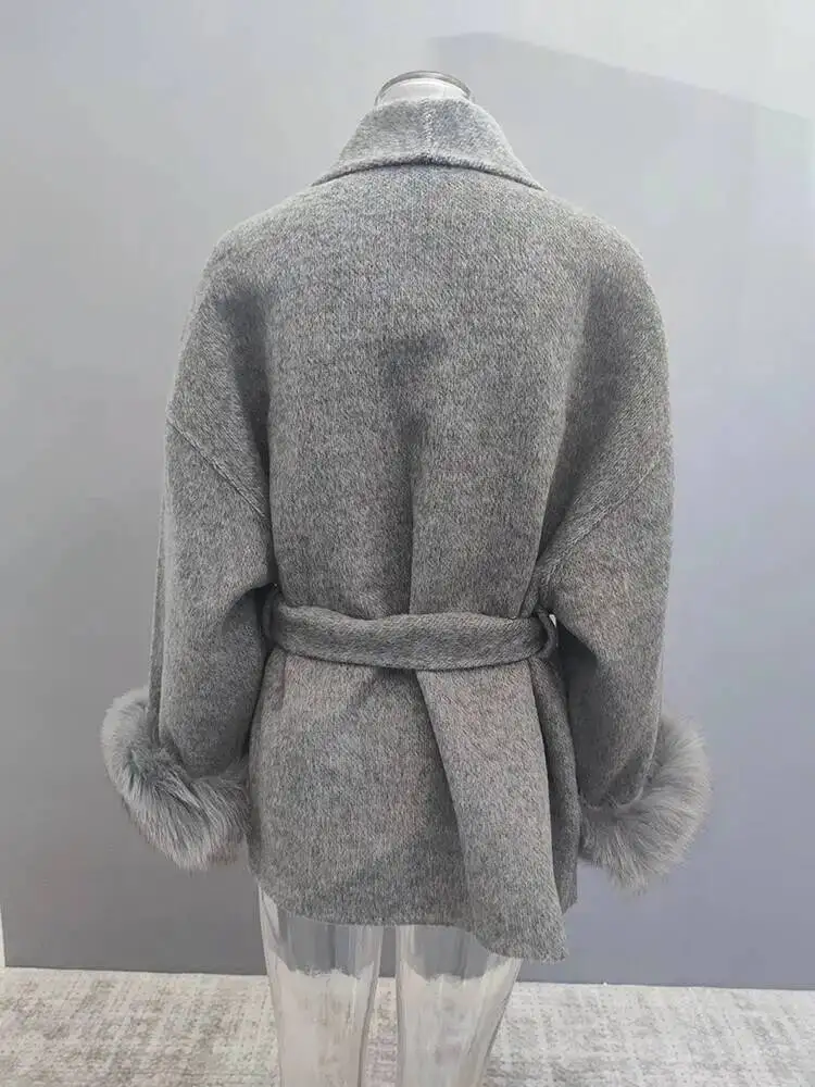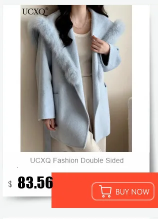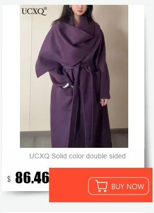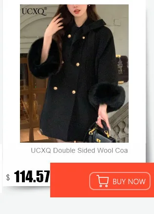 UCXQ Elegant OL Office Lady Overcoats Fur Patchwork Long Sleeve Woolen Coat Beautiful Women's Clothing Jacket Autumn 2025 Winter
