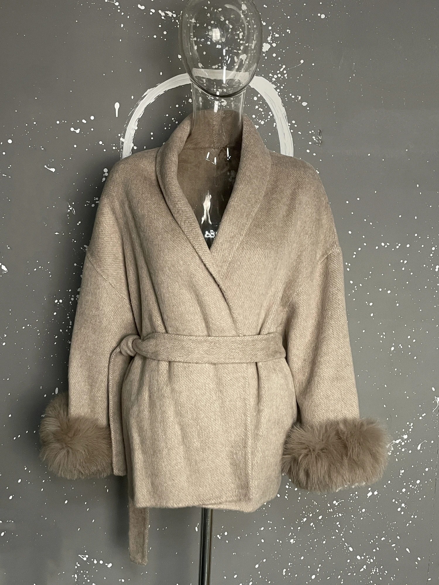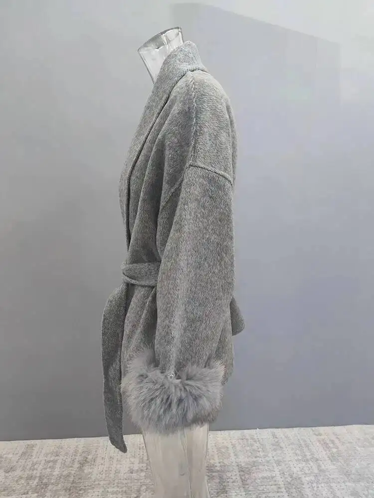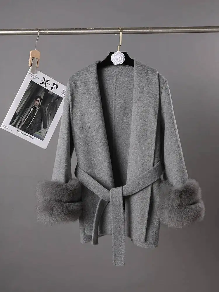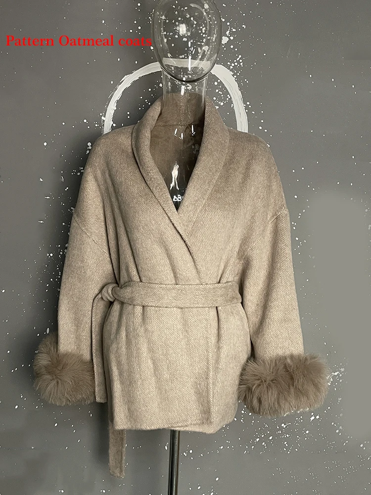 The last two pictures are long sleeved woolen jackets with two fox fur wool coats