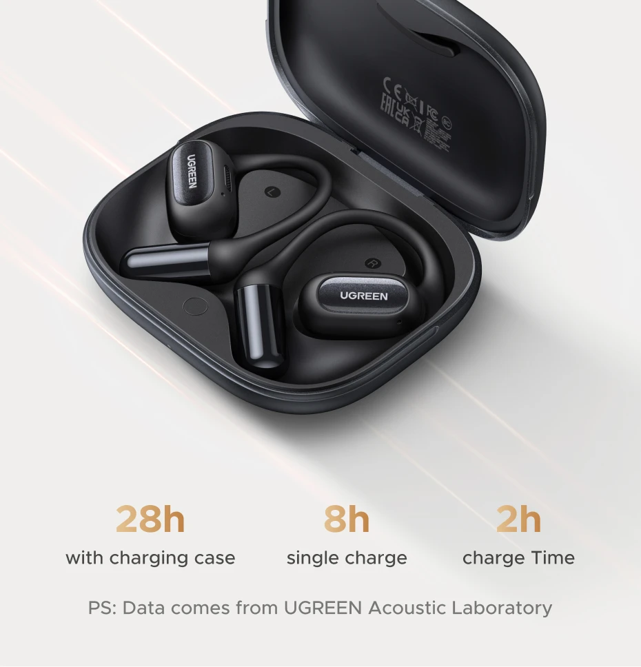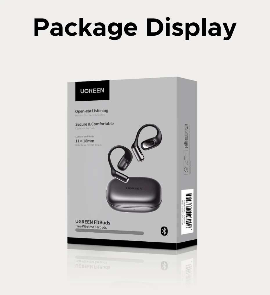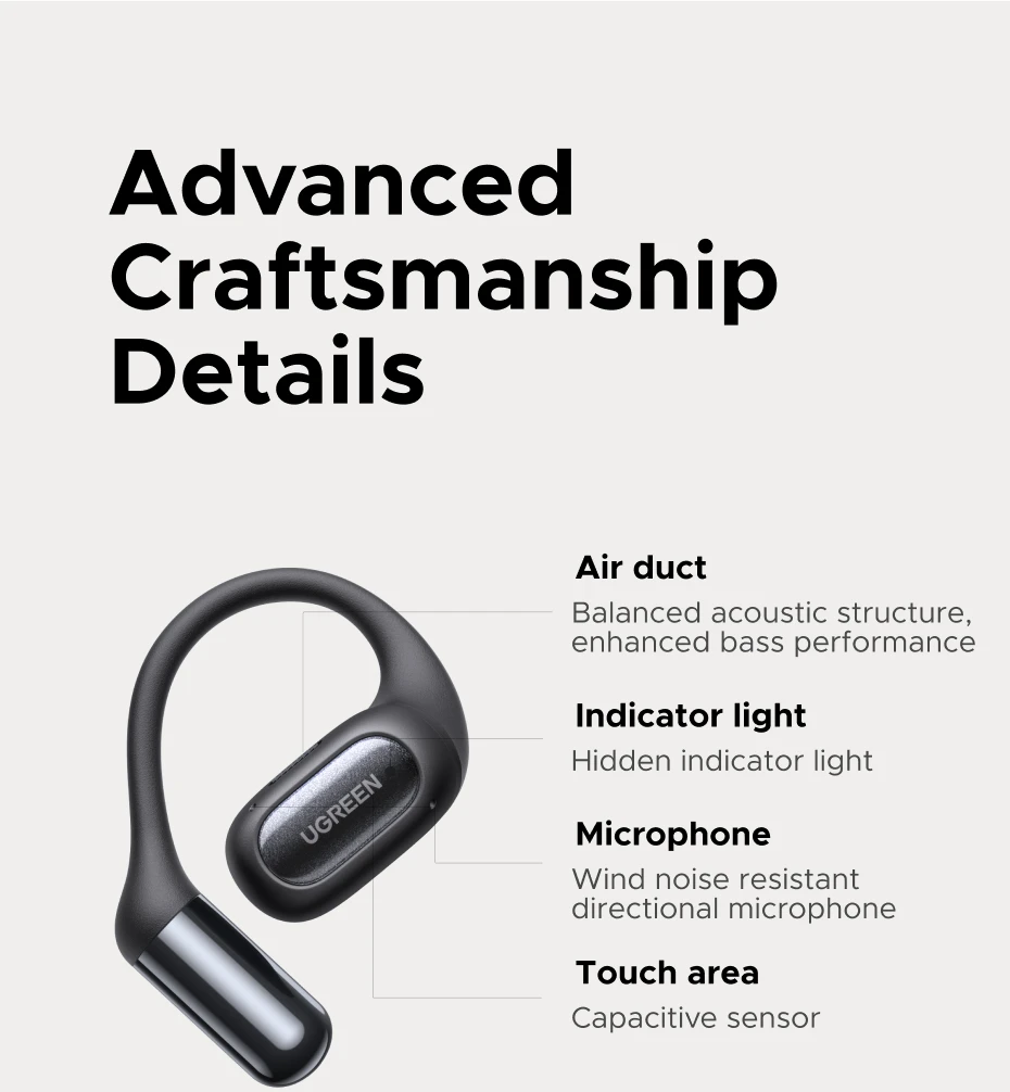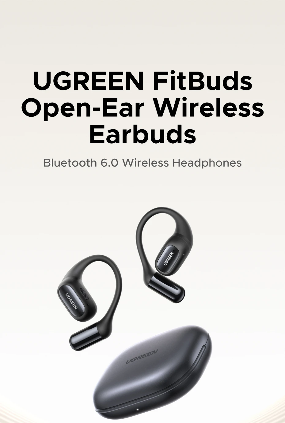 UGREEN FitBuds Open-Ear Headphones Earphones, Ear-hook TWS True-Wireless Bluetooth 6.0 Wireless Earbuds, Spatial Audio, 30H play