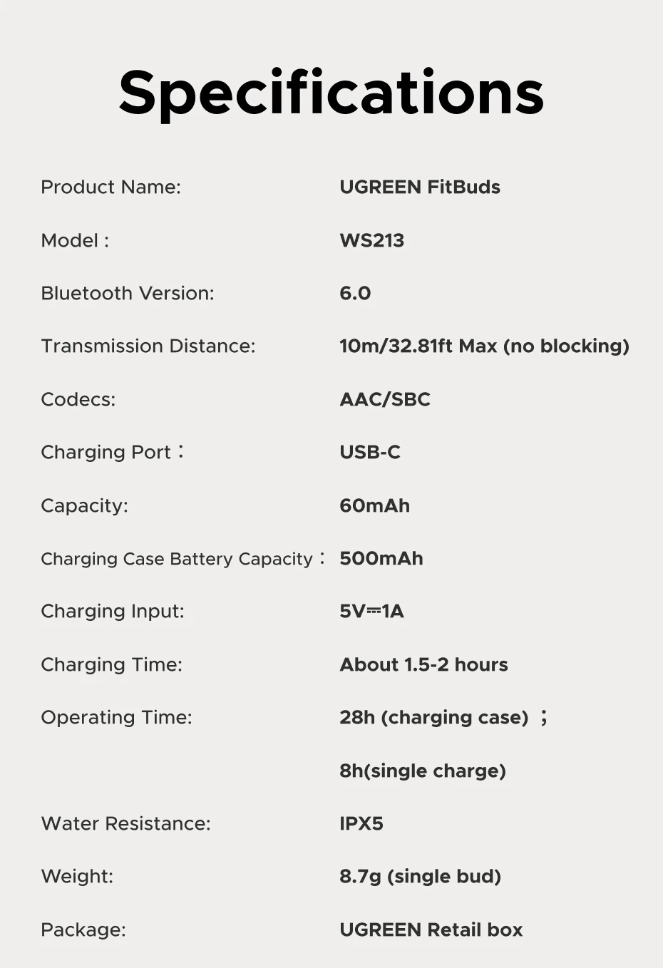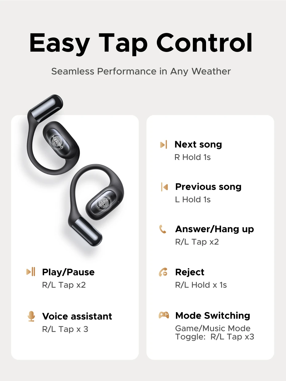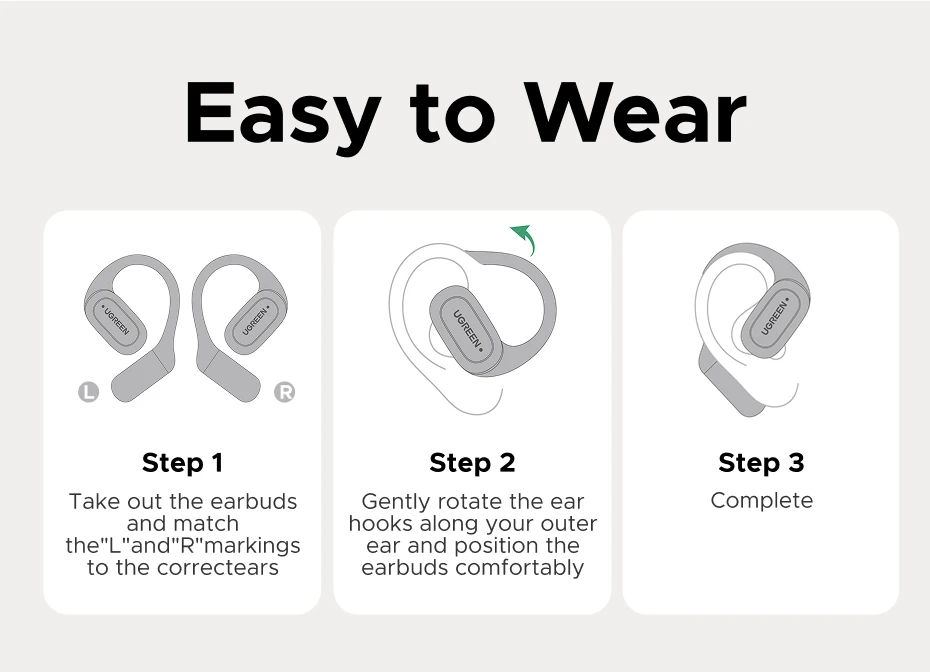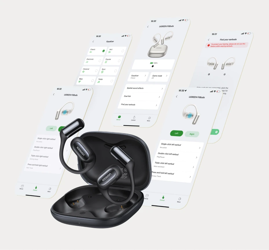 UGREEN FitBuds Open-Ear Headphones Earphones, Ear-hook TWS True-Wireless Bluetooth 6.0 Wireless Earbuds, Spatial Audio, 30H play