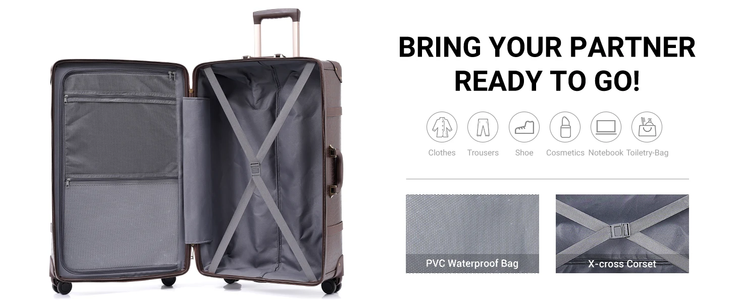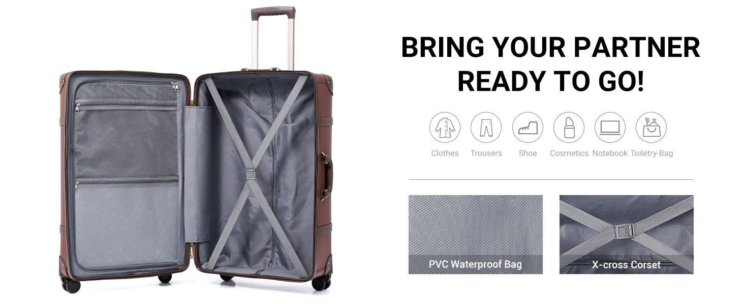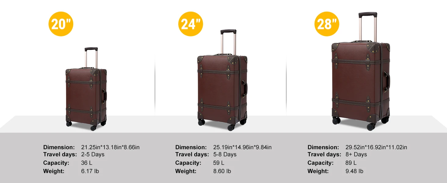 Urecity Vintage Luggage Set Retro Suitcase For Men&Women Business Luggage for Travel Rolling Suitcase With Handbag 14Inches