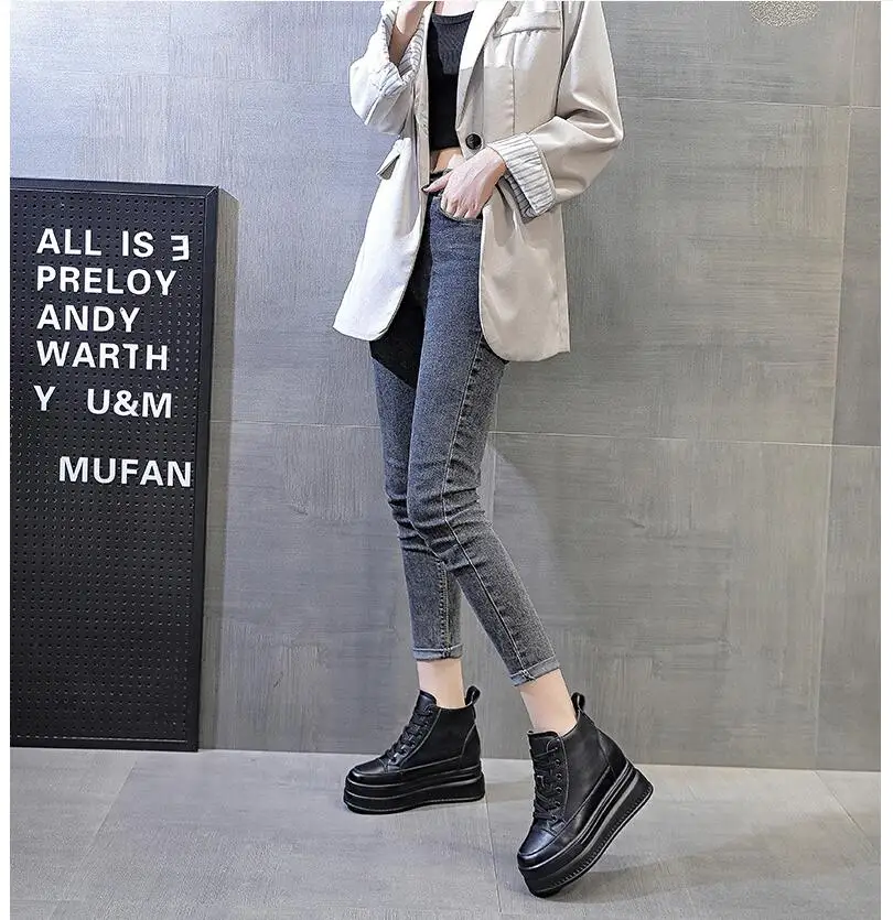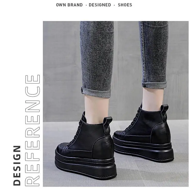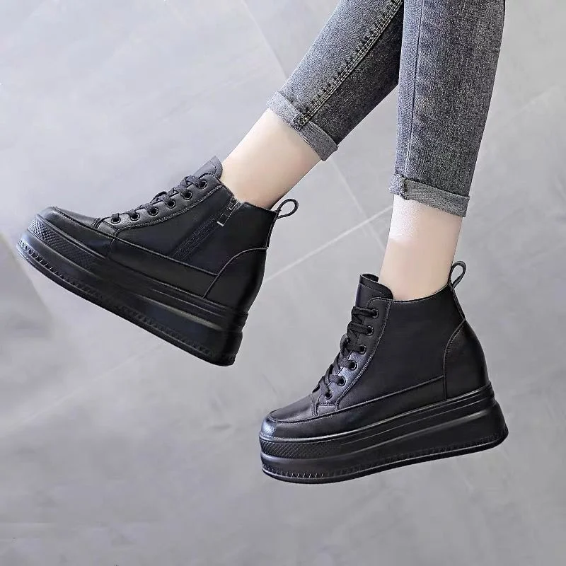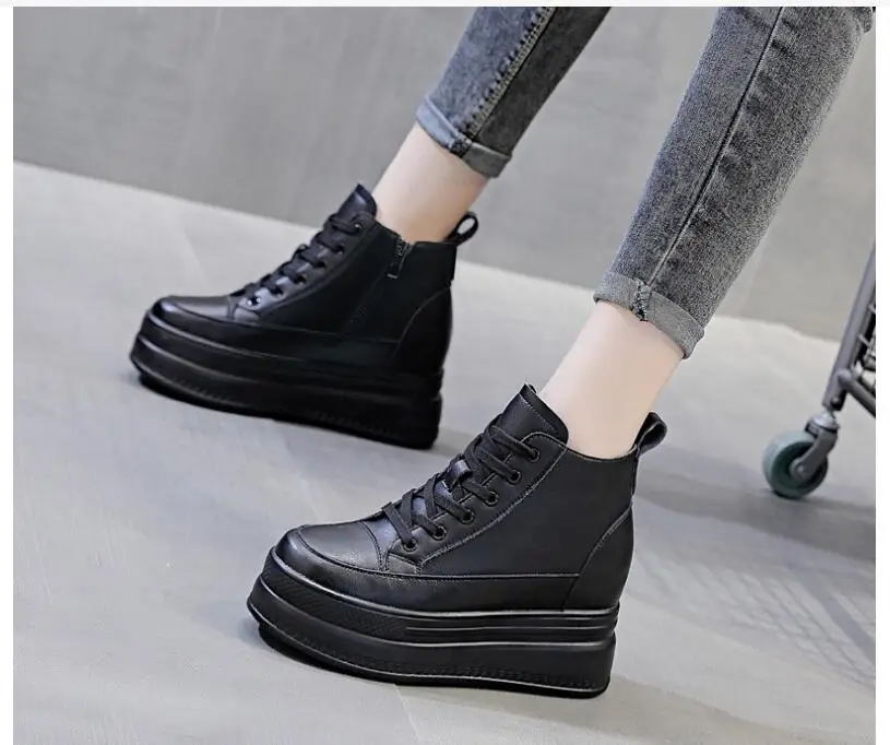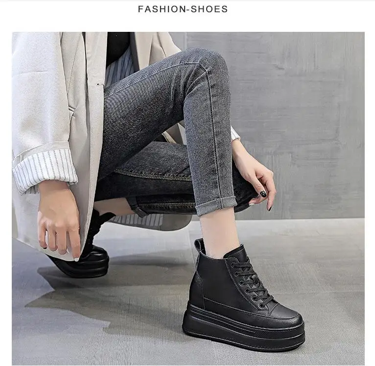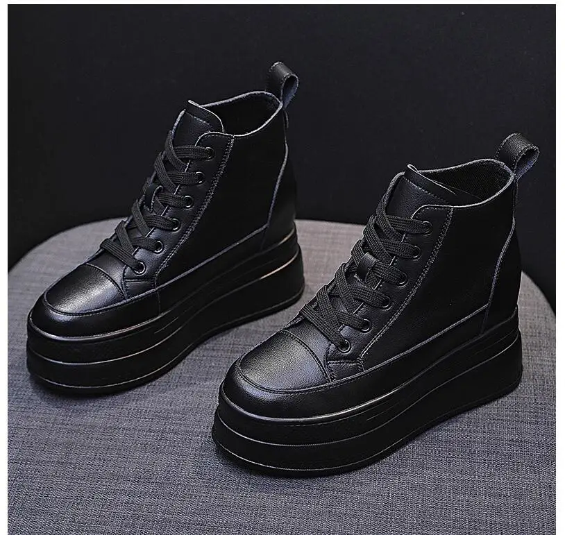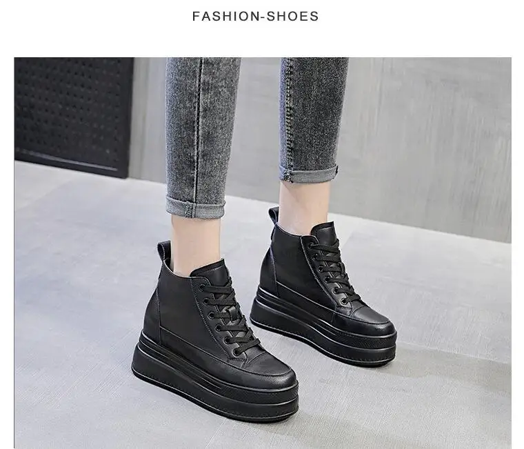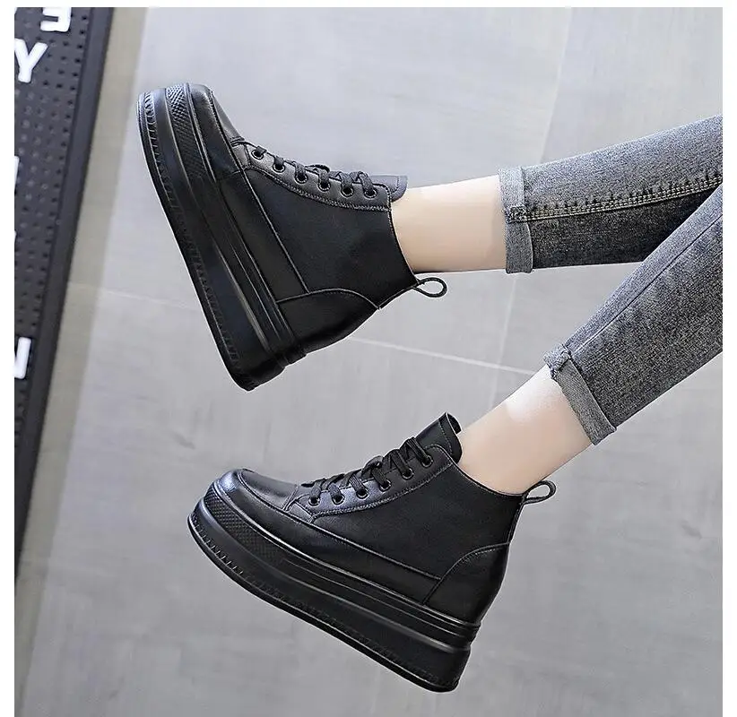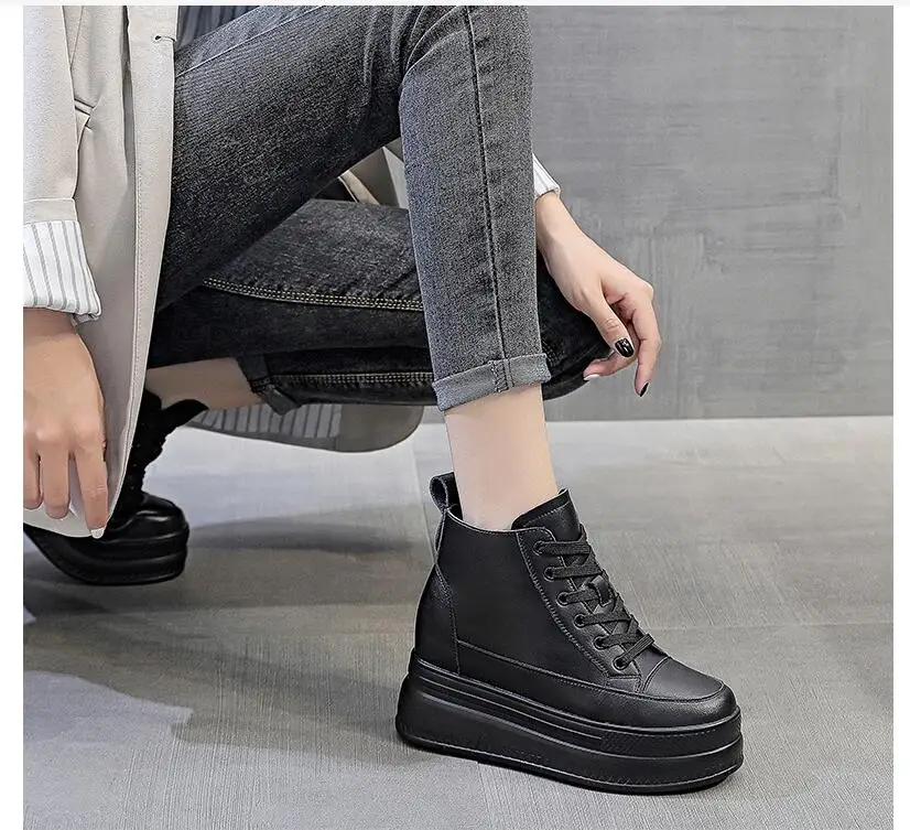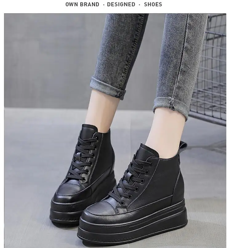Women High Top Sneakers Platform Breathable Genuine Leather Shoes Spring Lady Wedges Casual Shoes For Woman Sports Dad Shoes 9CM