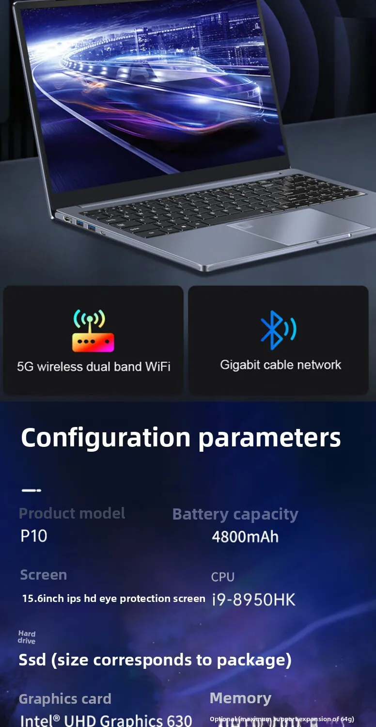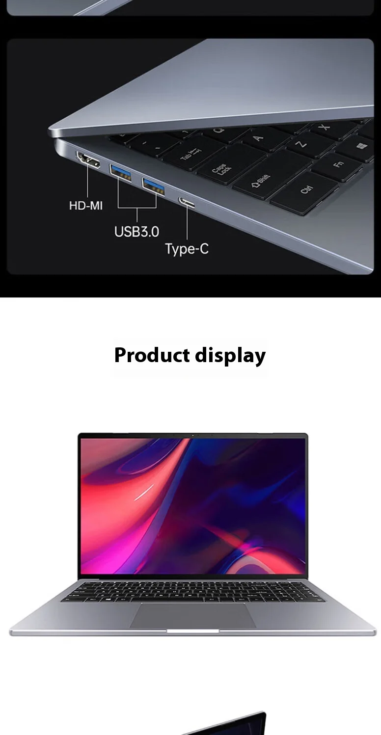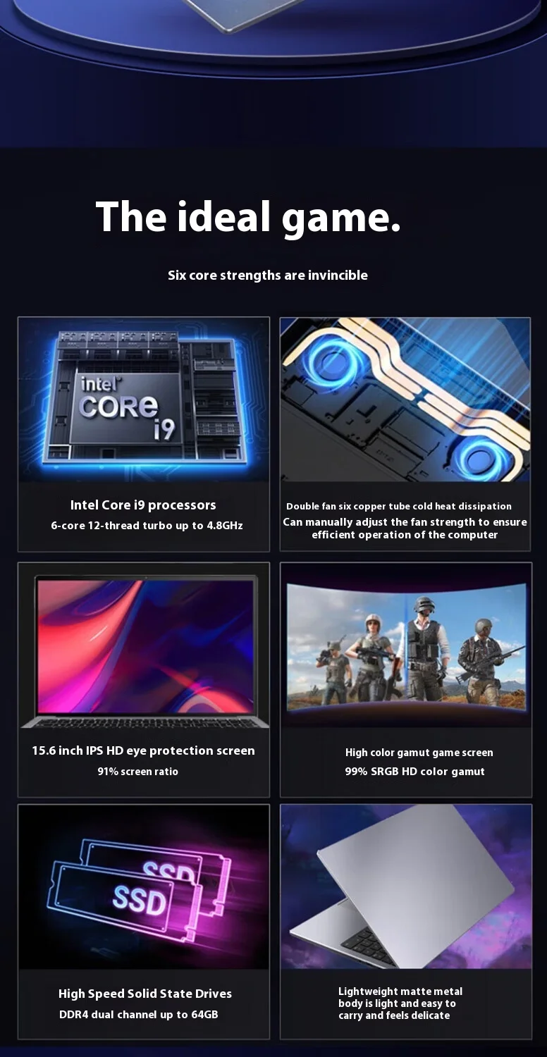 15.6inch Core I9 Portable Gaming Laptop Thin Light Business Office Design with Intel English