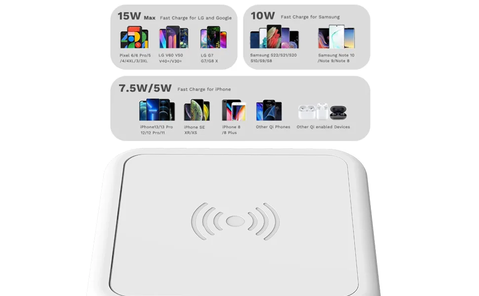 Suporta o protocolo Qi, permitindo que os telemóveis sejam carregados a qualquer momento, libertando cabos de dados, eficiente e conveniente!=