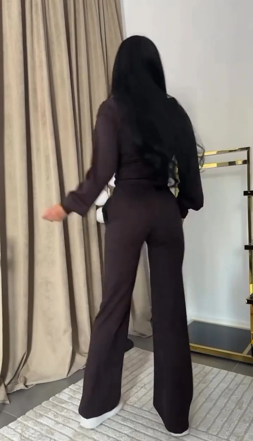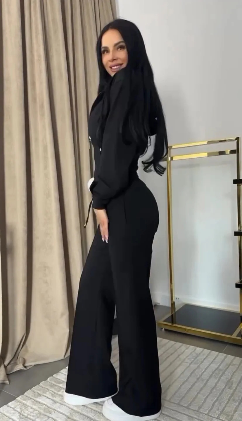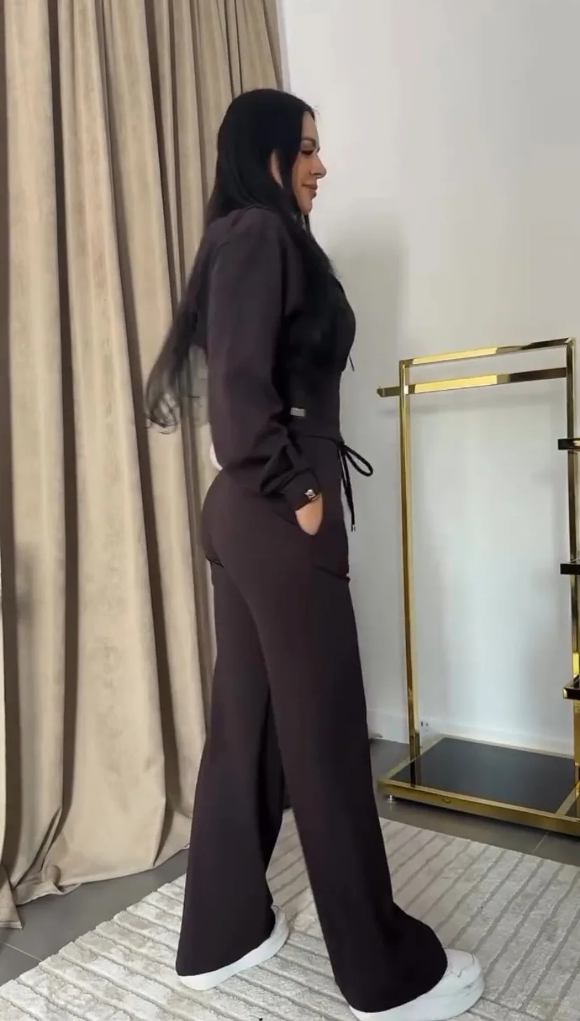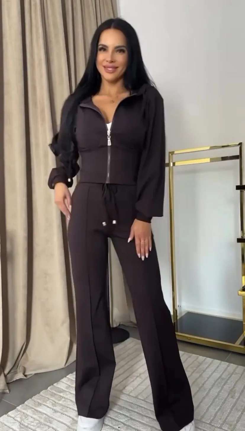 Conjunto de sweatshirt para mulher 2025, slim, cor sólida, fecho, manga comprida, calças largas, conjunto de 2 peças para mulher