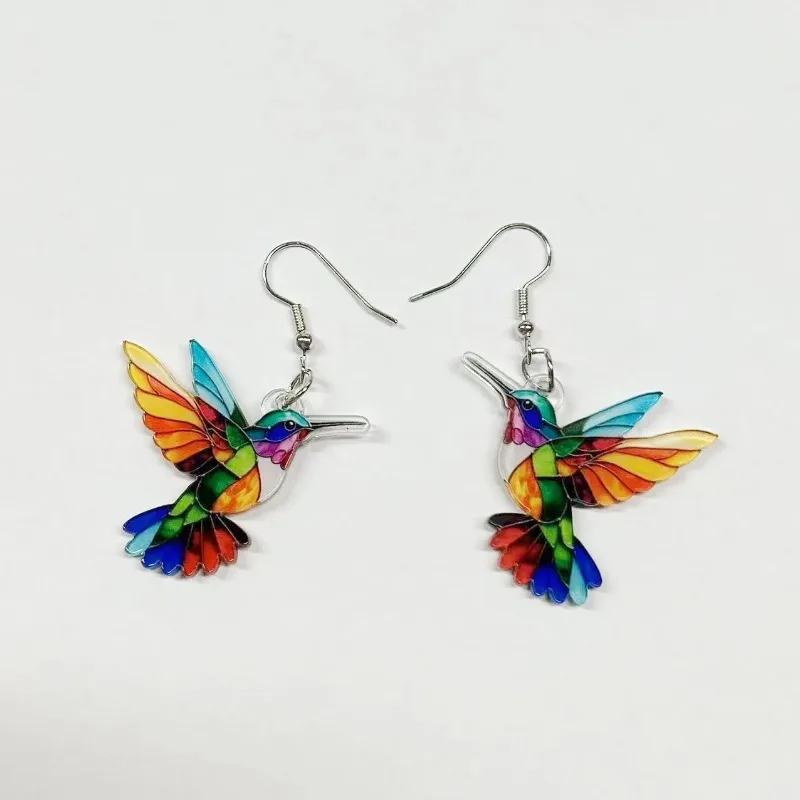 Brincos de acrílico com pássaros coloridos do Festival da Primavera Transfronteiriço da Europa e América, novos brincos retro da moda mais vendidos em 2025