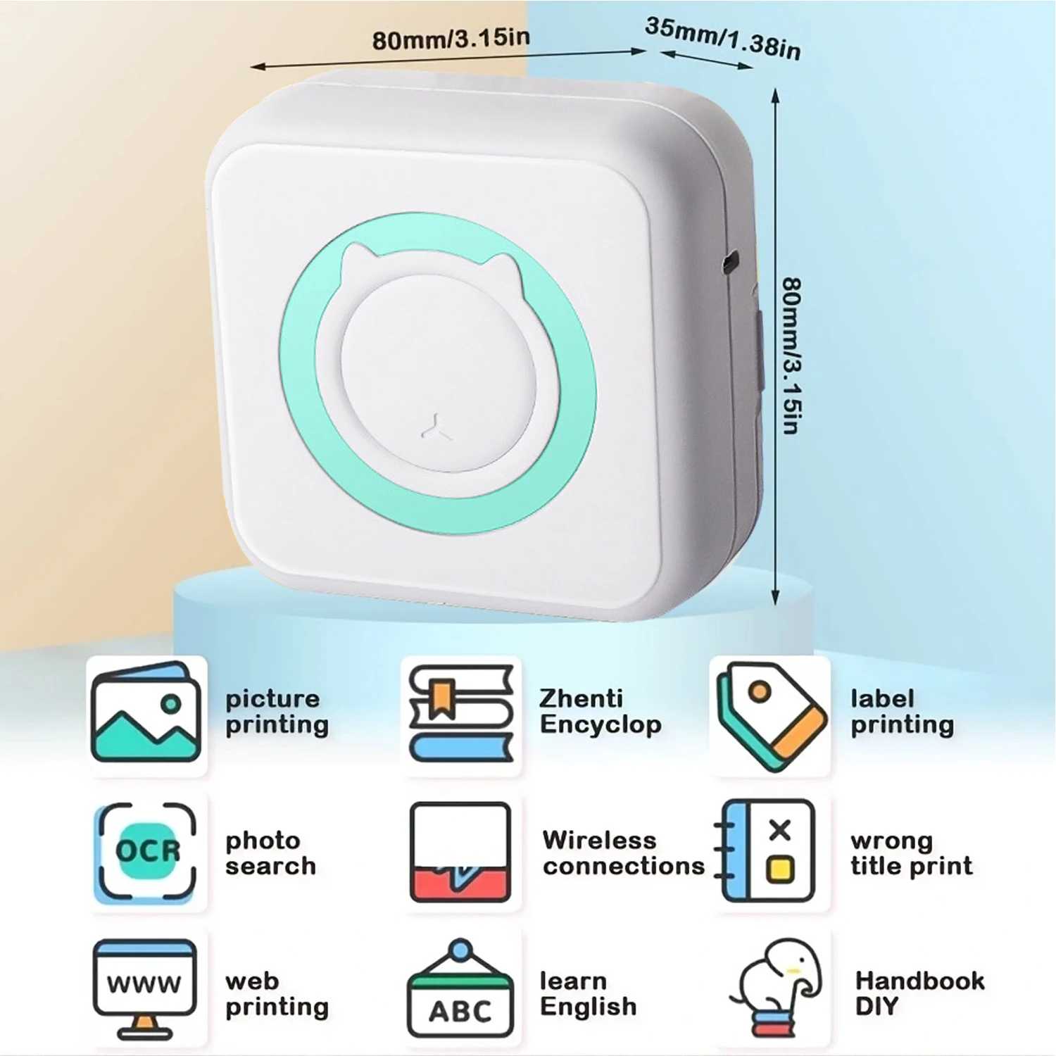 Mini Printer Thermal Adhesive Labels Printer Sticker Bluetooth Mini Pocket Label Notes Printer for Home and Office Android IOS