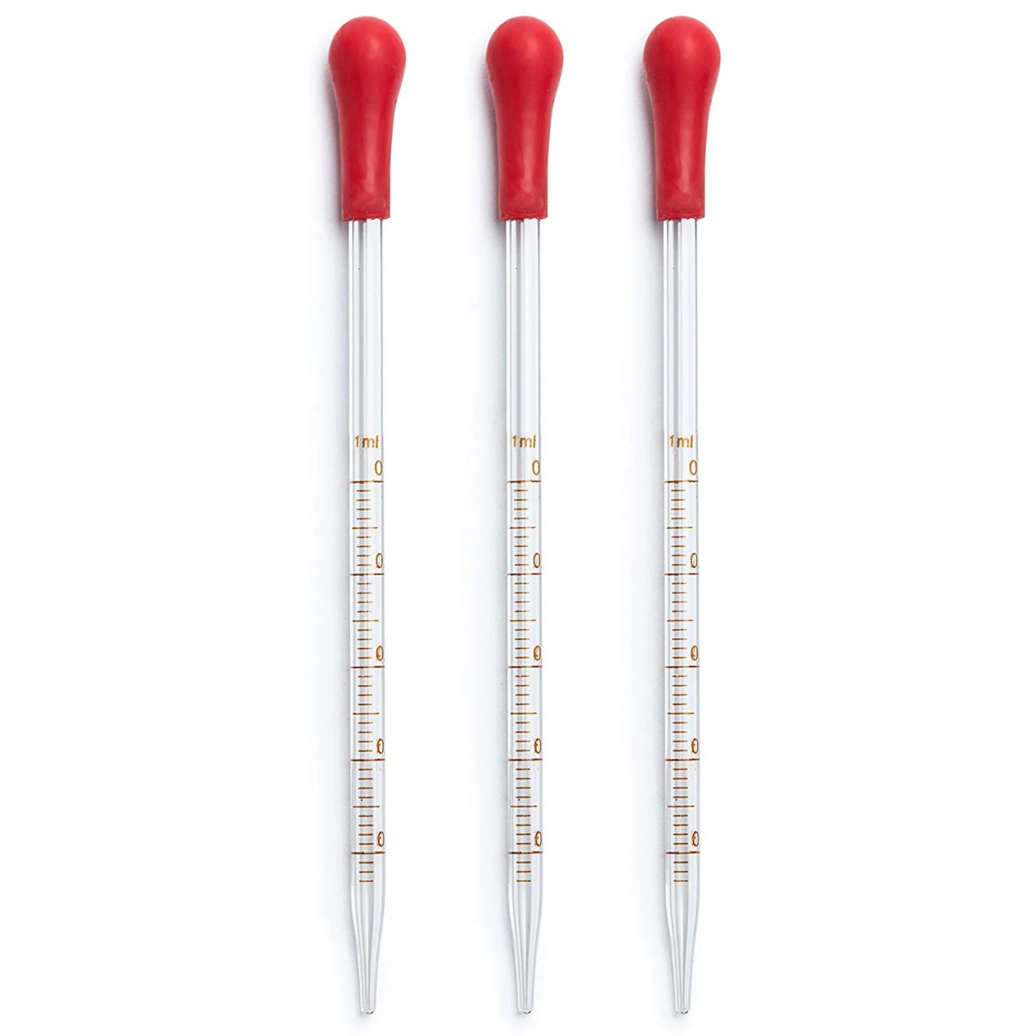 Incluye 4 cilindros de 5ml, 10ml, 50ml y 100ml, 2 cepillos de limpieza y 3 pipetas de vidrio de 1ml para transferir líquidos con precisión