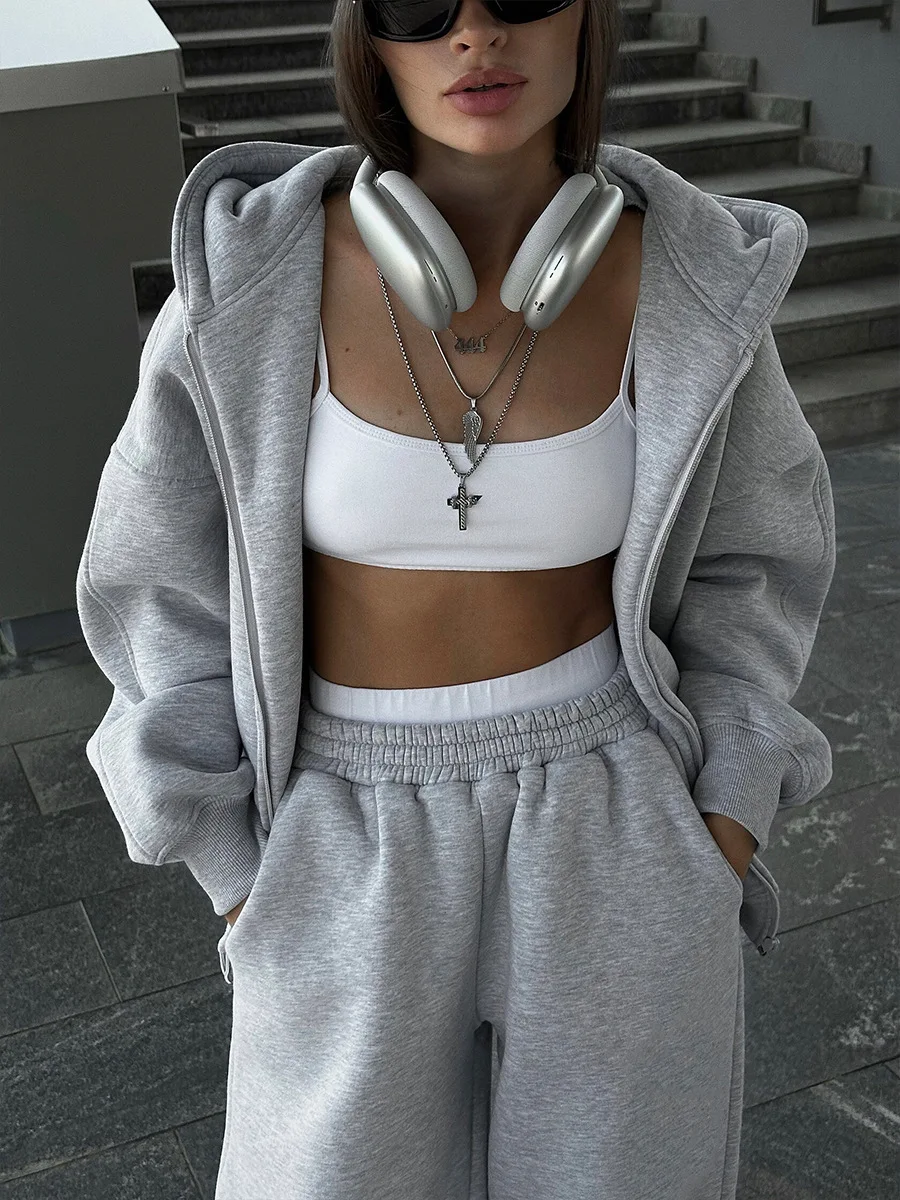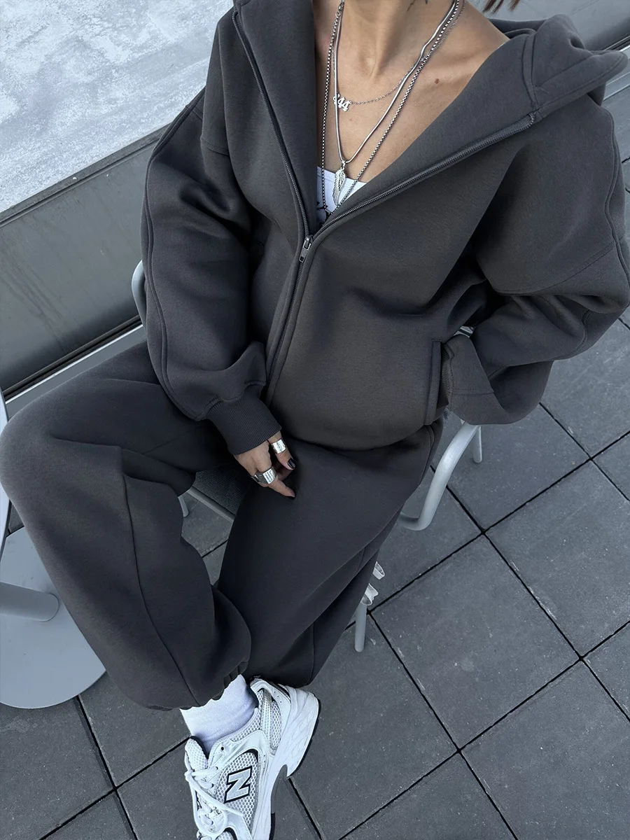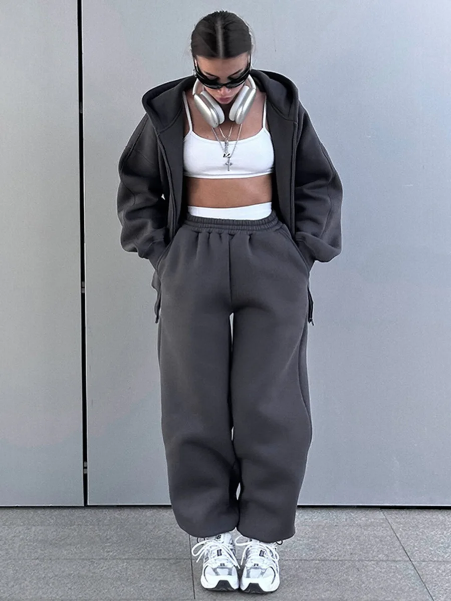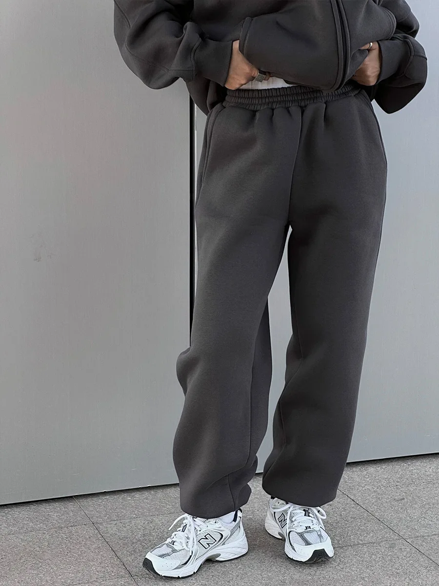 Conjunto de calças e fatos de treino para mulher, hoodies de manga comprida, calças lápis lisas, comprimento até ao tornozelo, bolsos, casual 2025 slim